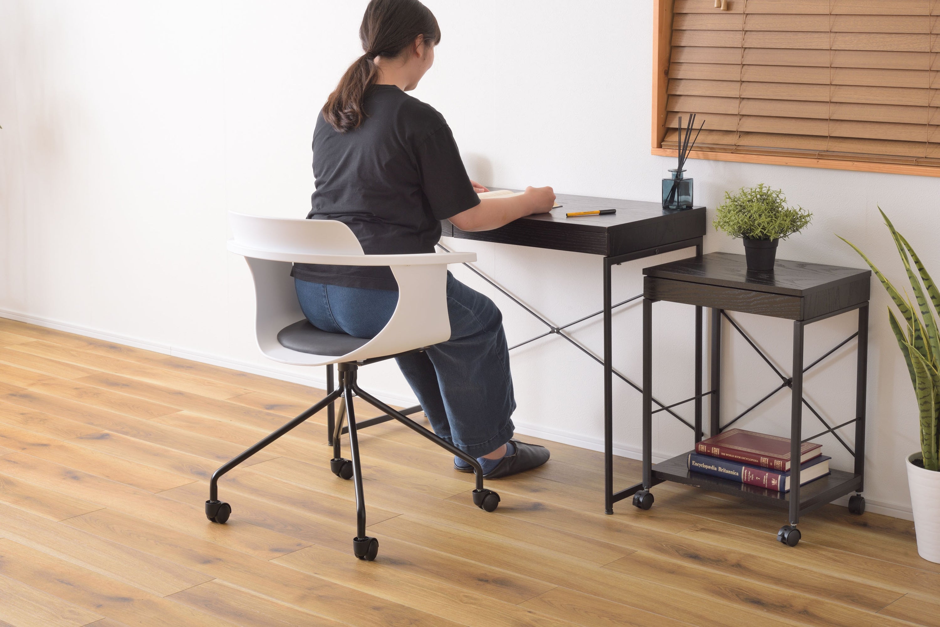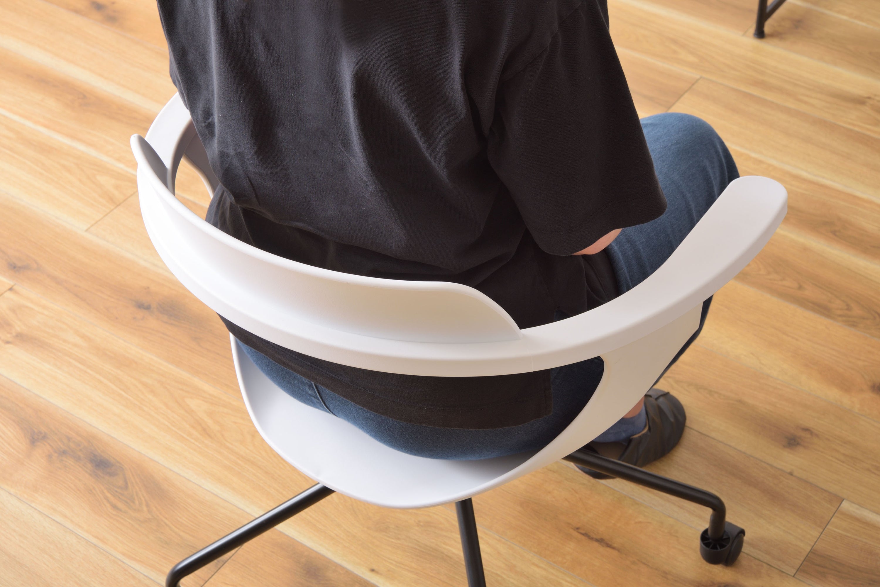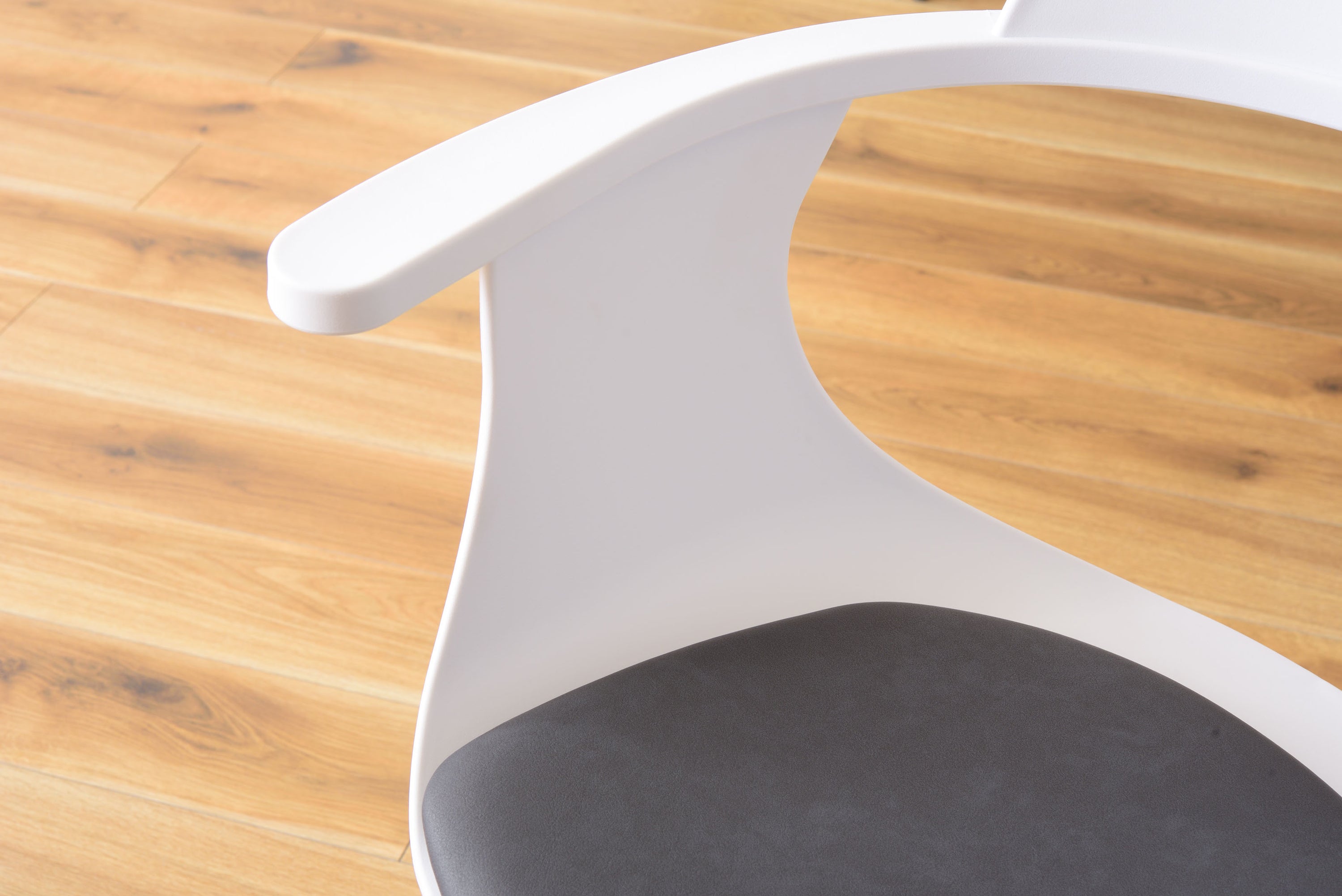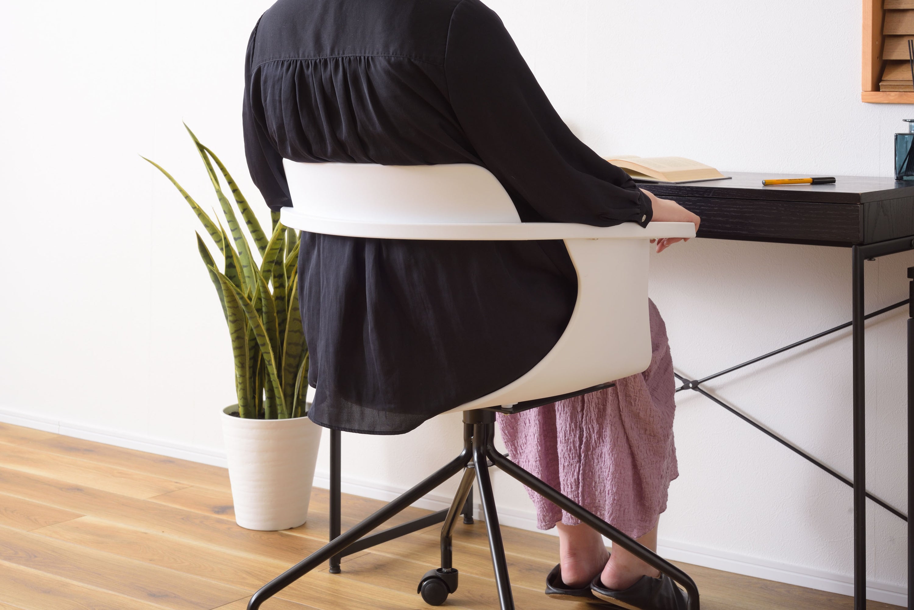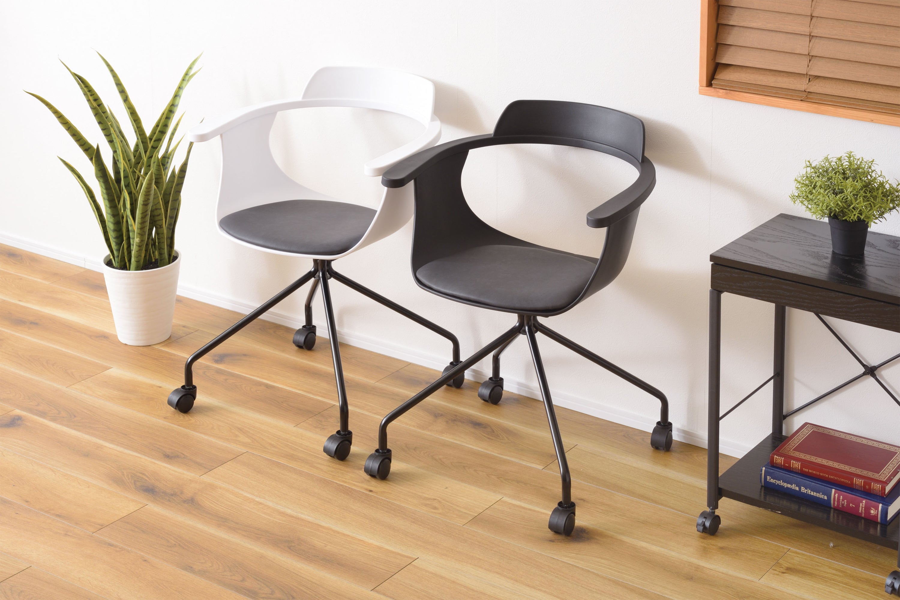 ROOMESSENCEのデスクチェアホワイトです。長時間でも快適な座り心地を備え、ダイニングやワークスペースに活躍します。ブランドの美意識を感じる佇まいで、日常づかいから来客時まで幅広く対応。品番:PC-986WH。暮らしに上質なアクセントを添える一品です。