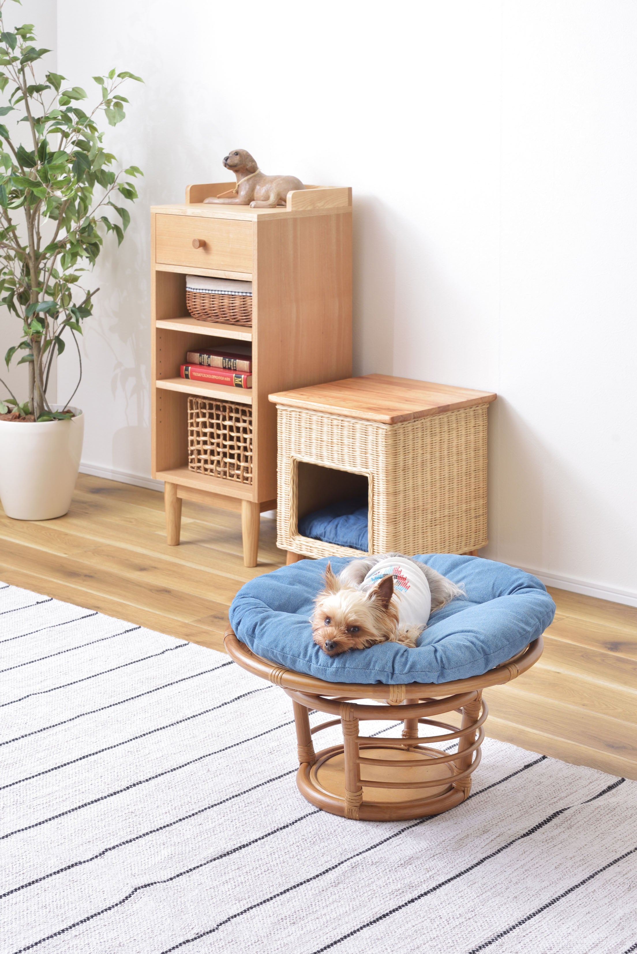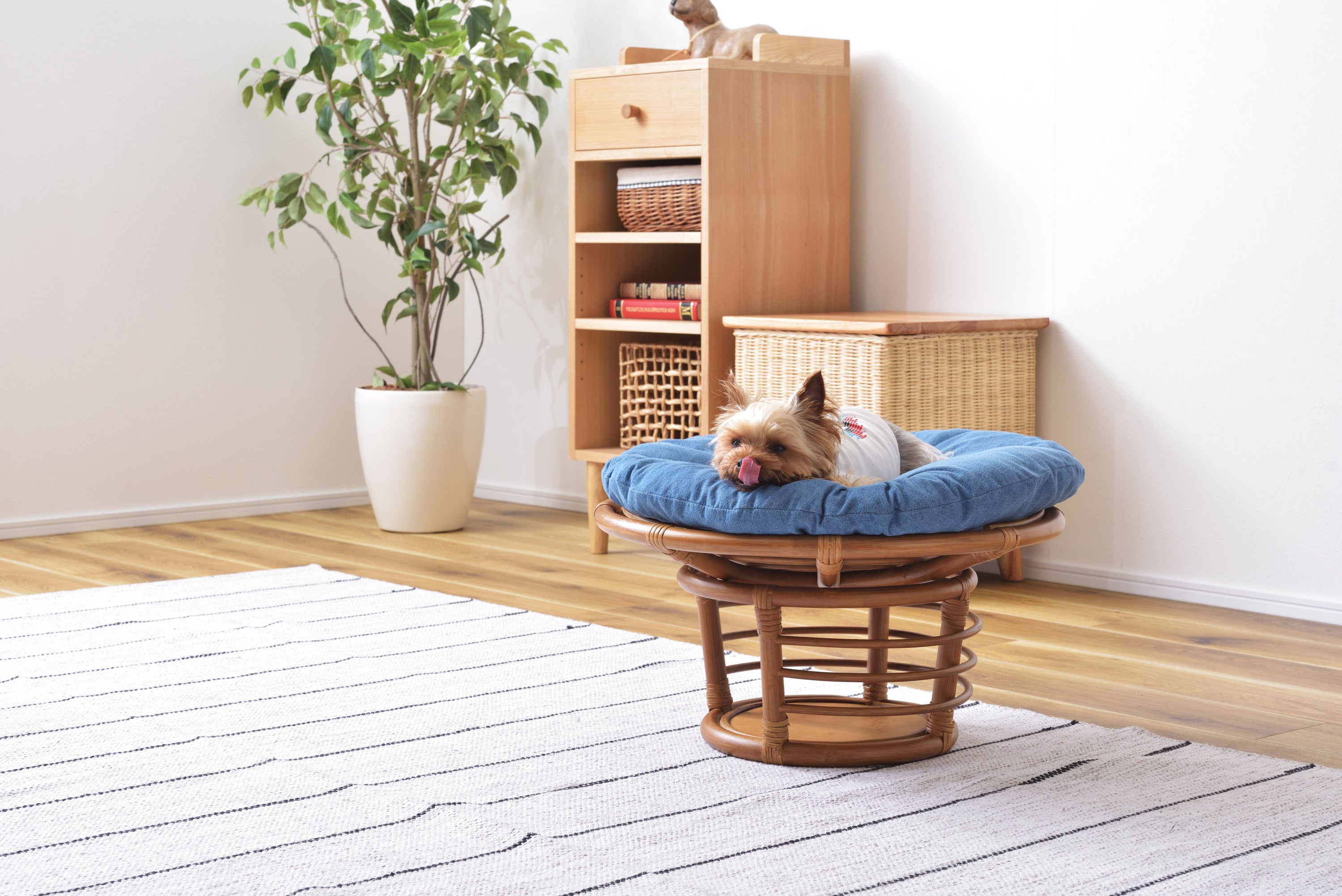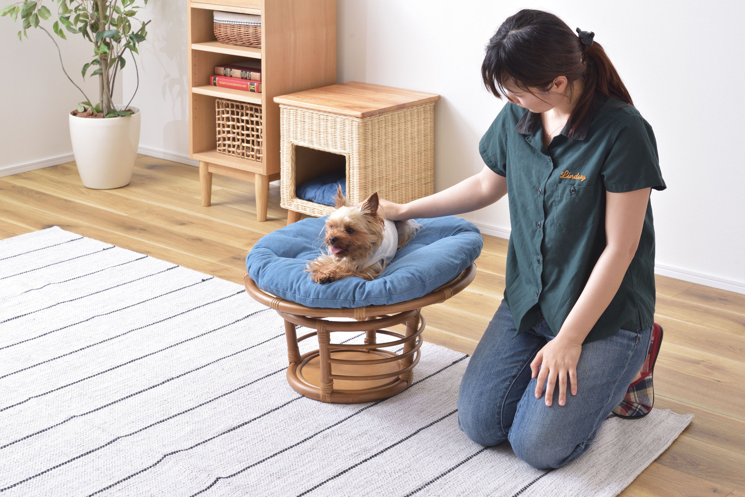 ペットはもちろん、人も座ることができるペットスツール。 取り外し可能なボリュームのあるクッション付きです。