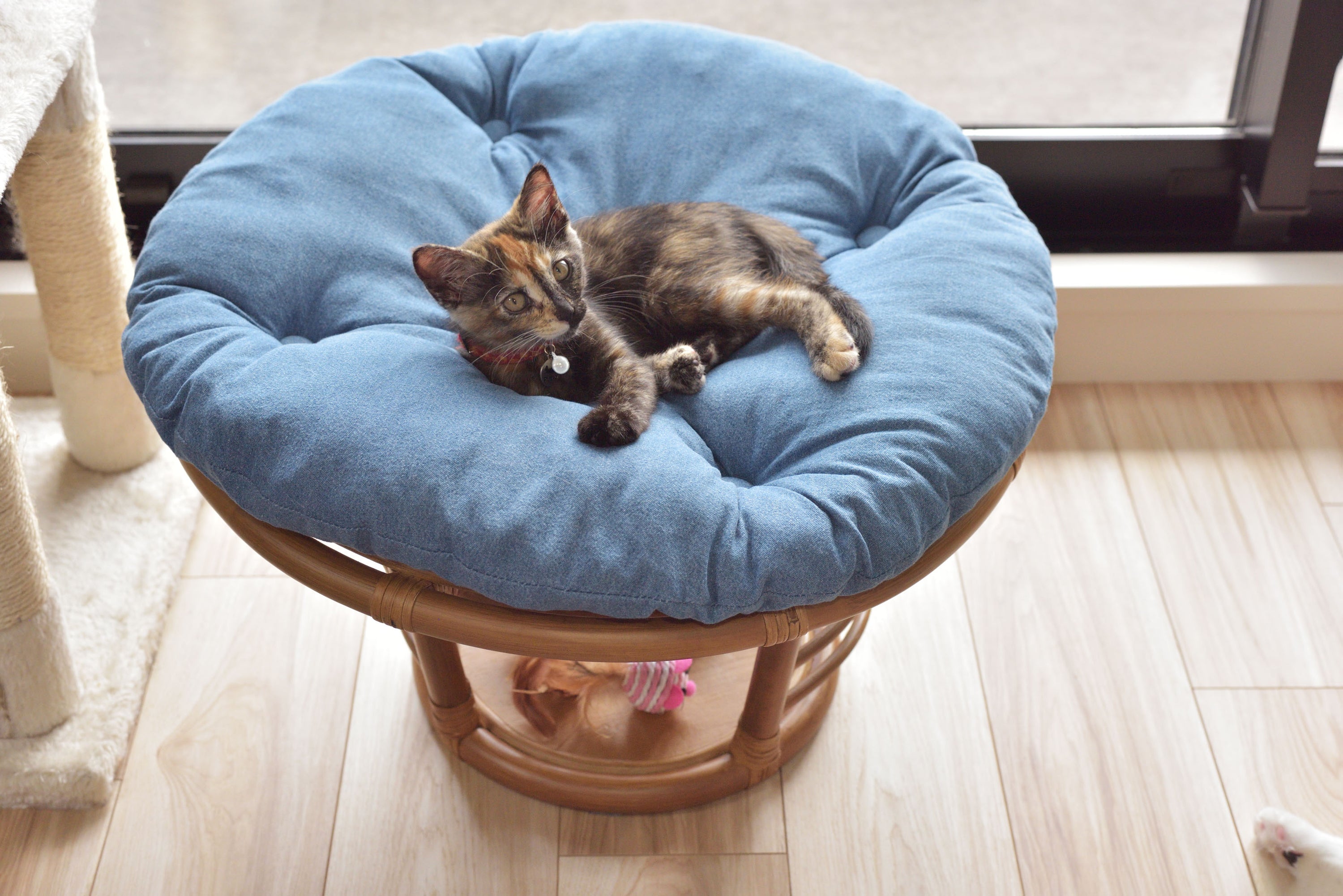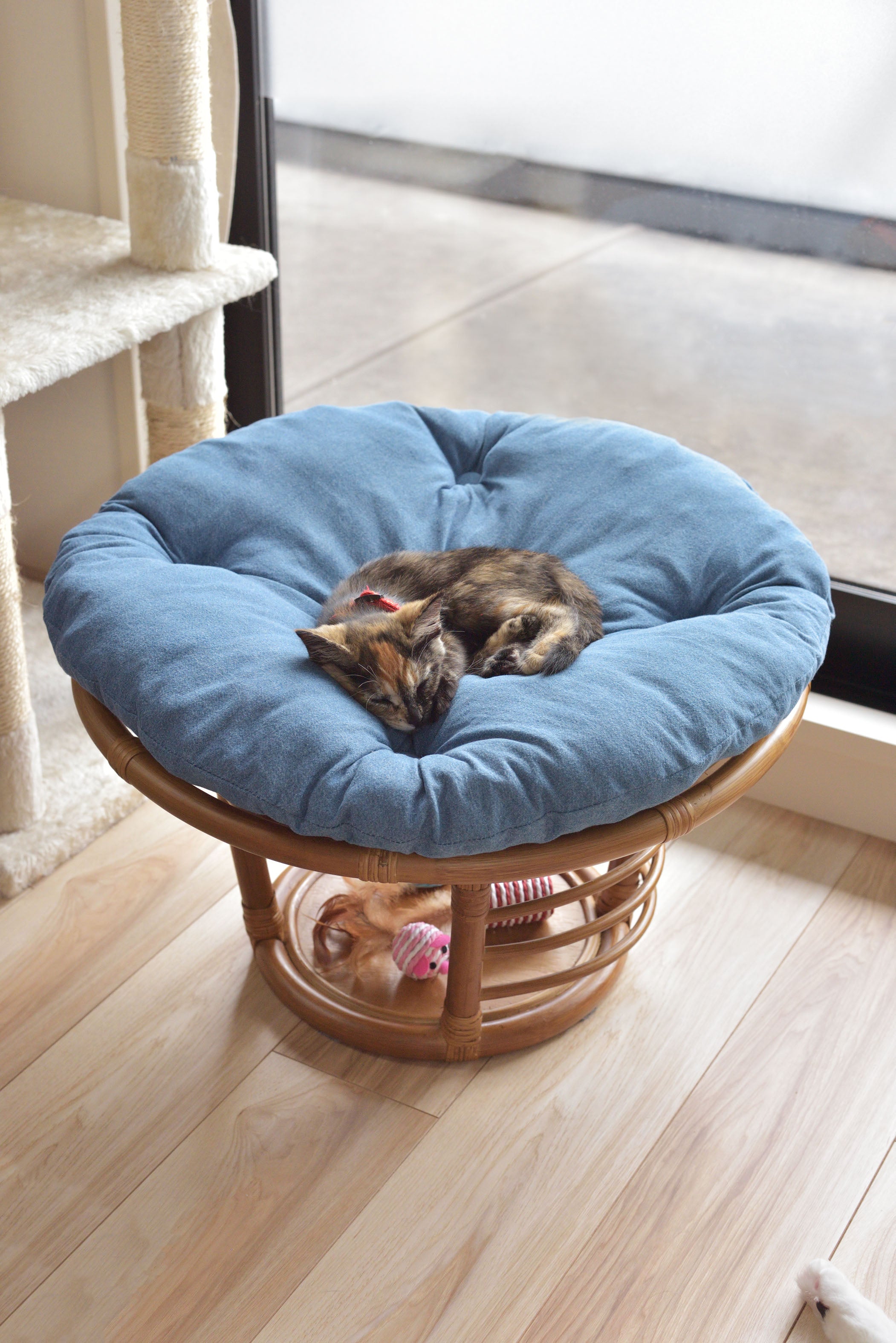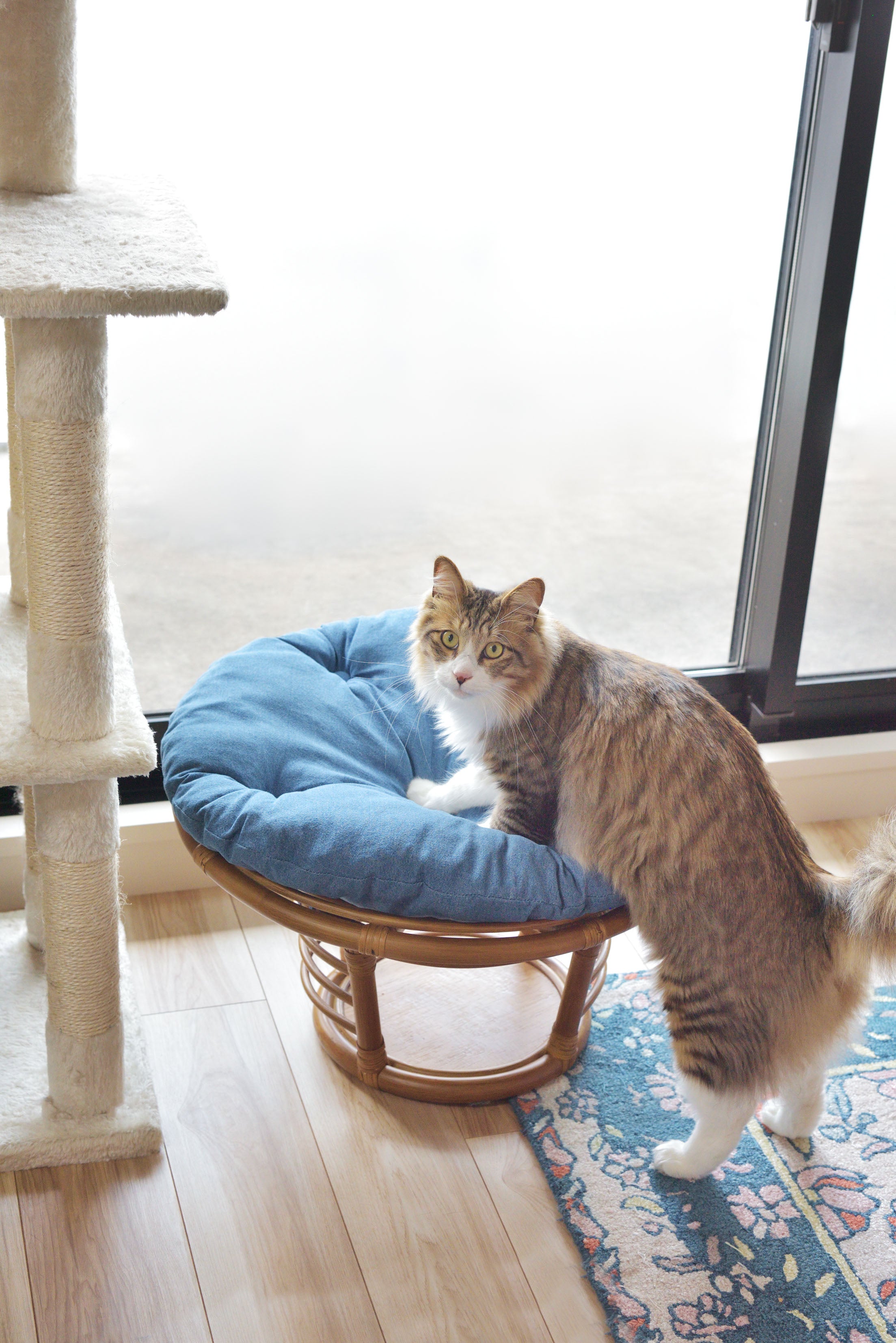 ペットはもちろん、人も座ることができるペットスツール。 取り外し可能なボリュームのあるクッション付きです。