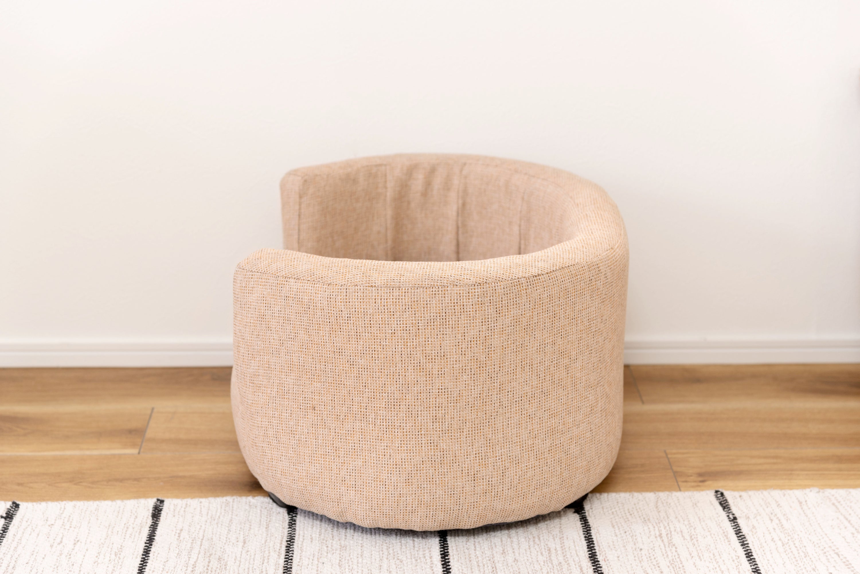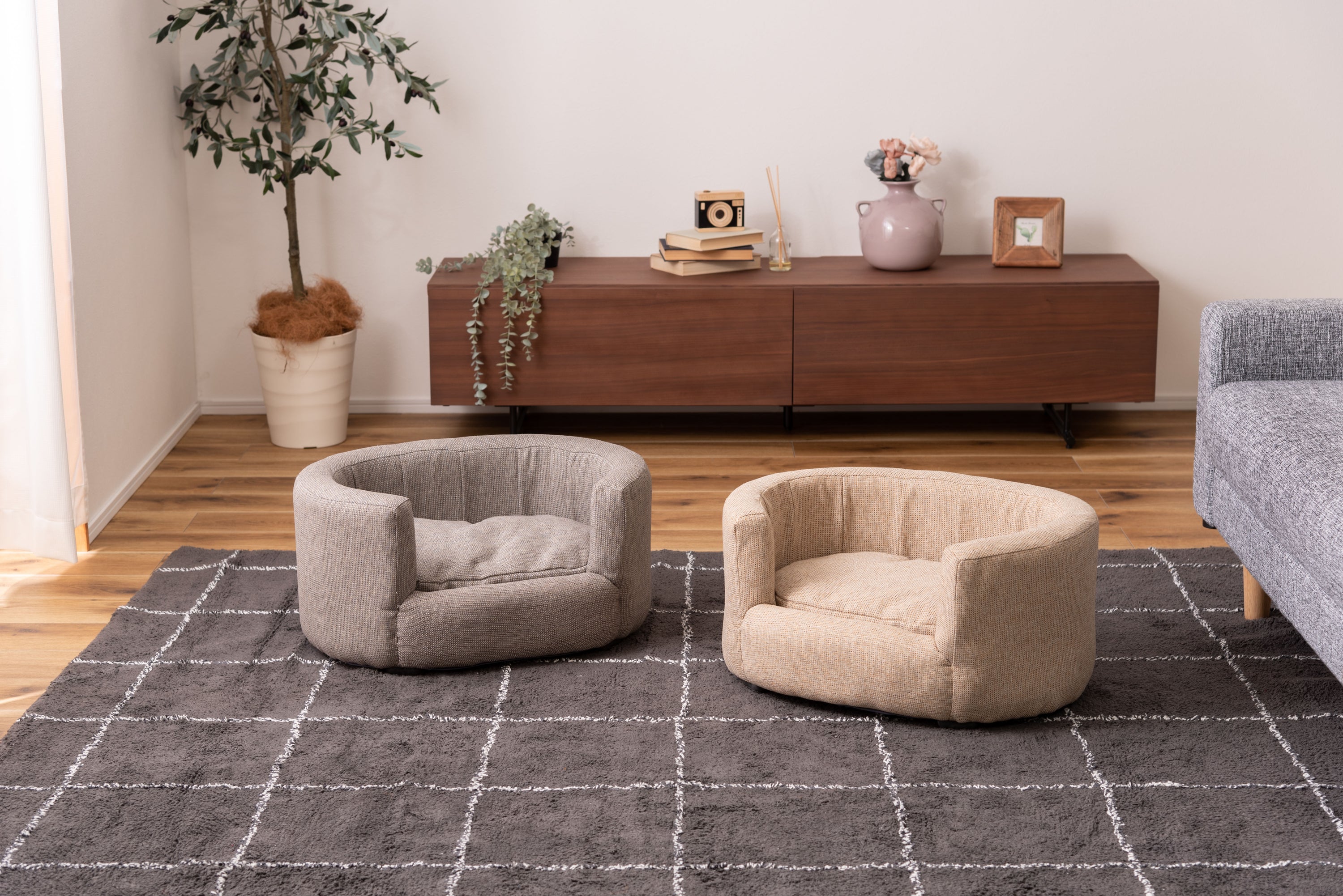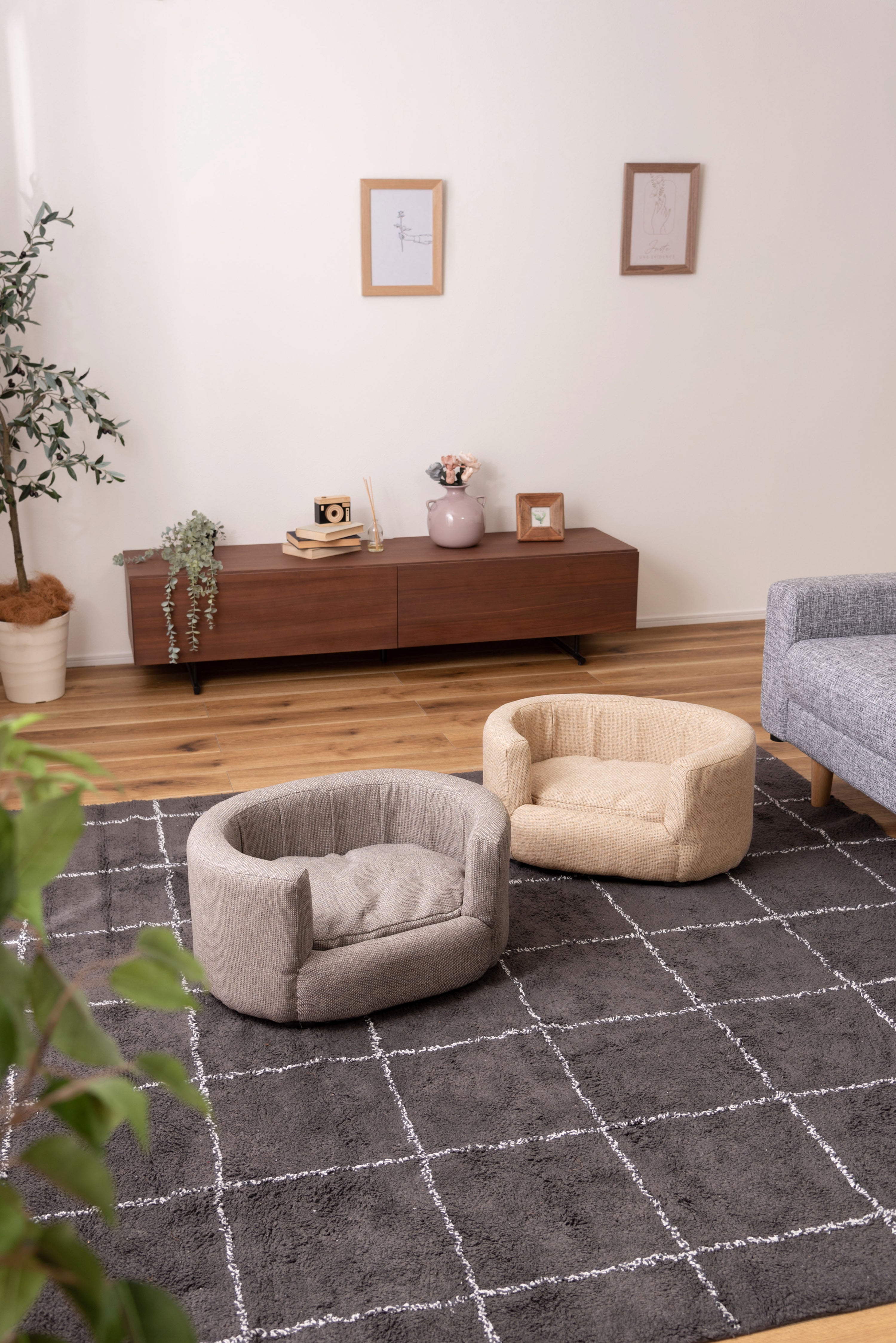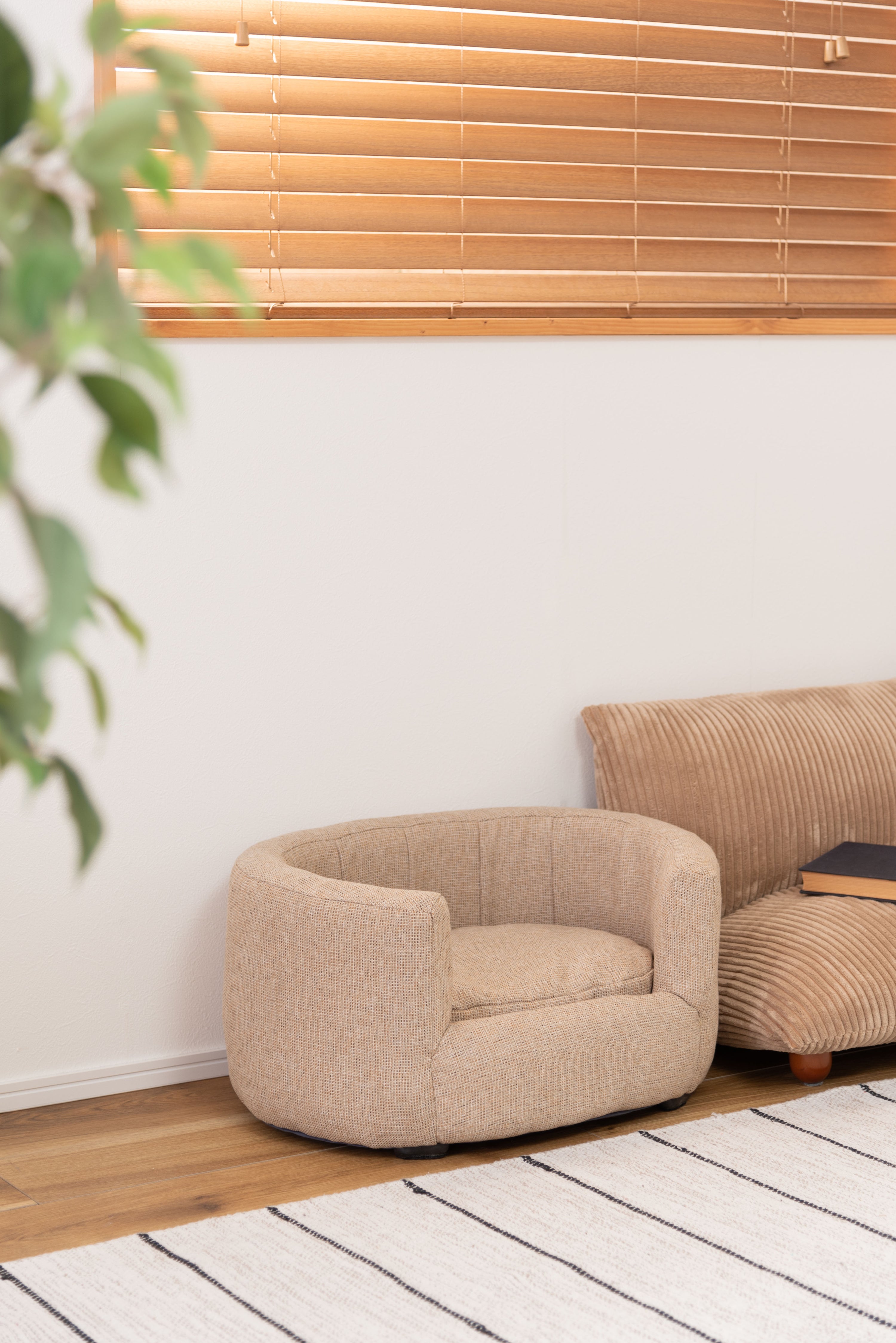 ペット用の小ぶりで包み込むような背もたれが特徴のソファ。特別なペットの居場所を作ります。落ち着いたシンプルなカラーリングとコロンと丸みを帯びた形状がお洒落。ペットとの生活がより充実したものになる可愛いソファ。優しいラインのオーバル型/包み込むようなオーバル型はインテリアとしても取り入れやすいデザイン。設置しやすいコンパクトサイズも魅力。ちょうどいい高さ/ペットとのふれあいにちょうどいい高さに設計されています。床に座っても、座椅子やソファに座ってもちょうどいい高さでペットと空間を共有できます。クッションは取り外し可能/カバーリング仕様でクッションからもカバーを取り外すことができます。細かなディティール/座面にもフレームにもクッション性を持たせています。細かなディティールまでこだわり、作り込まれています。