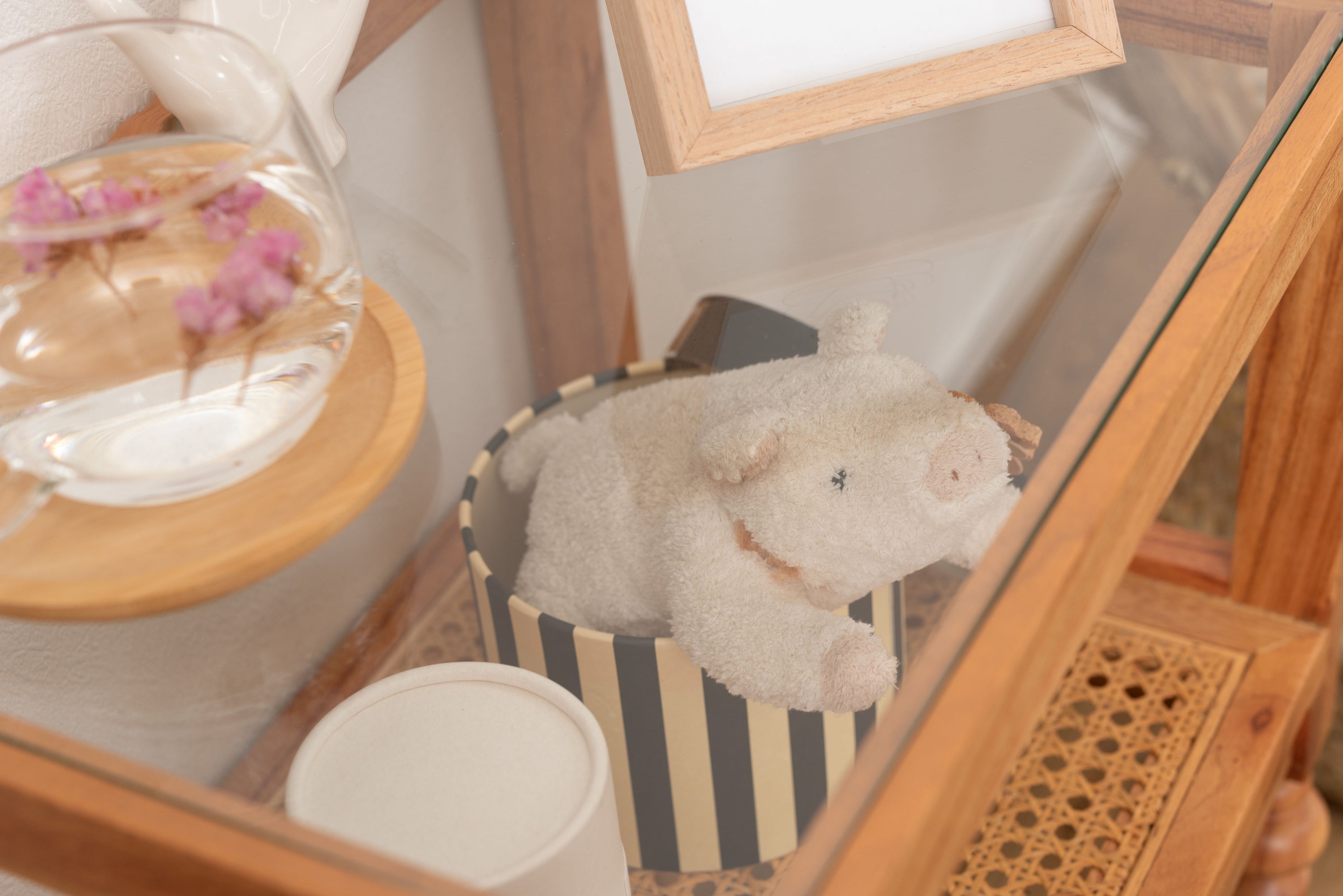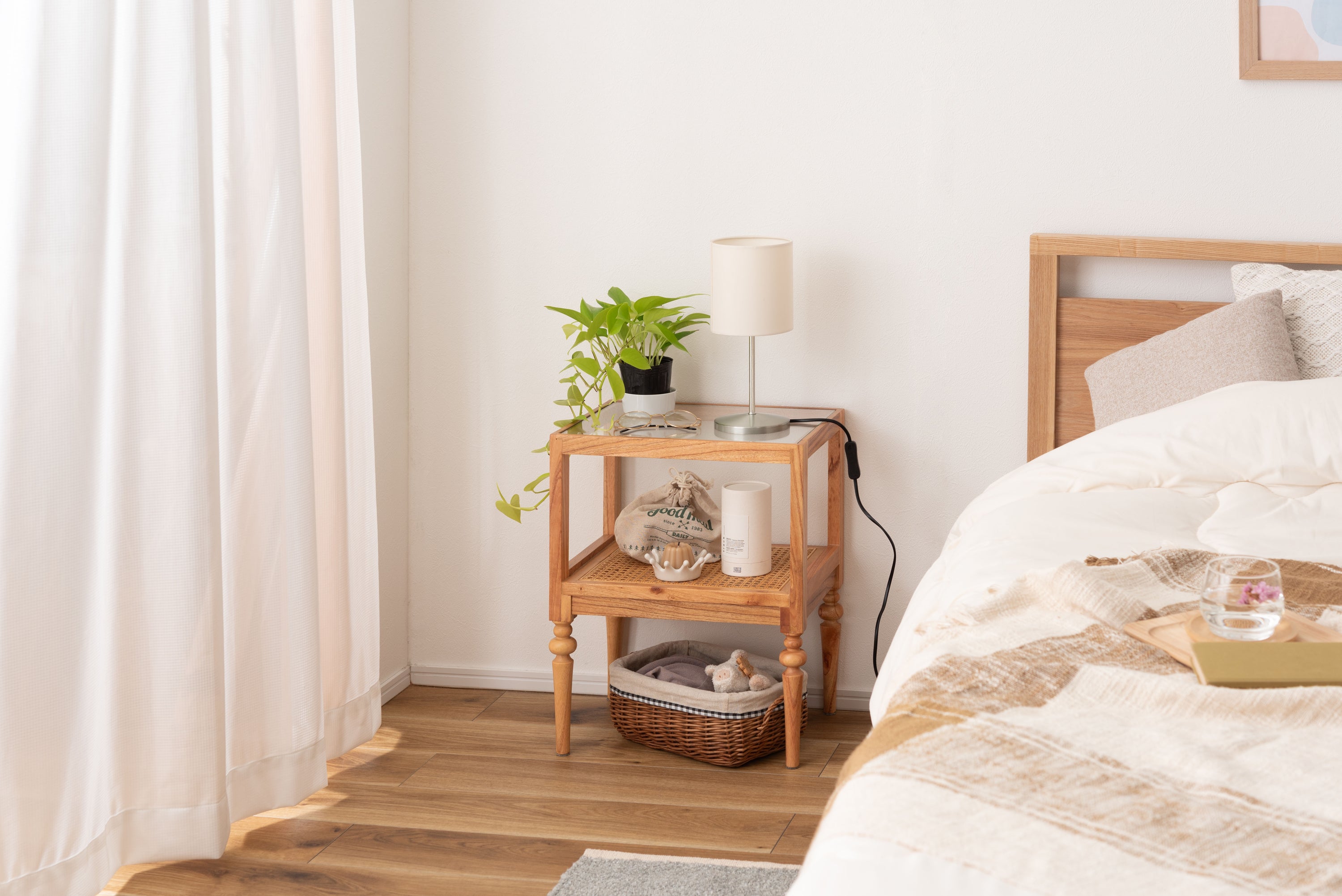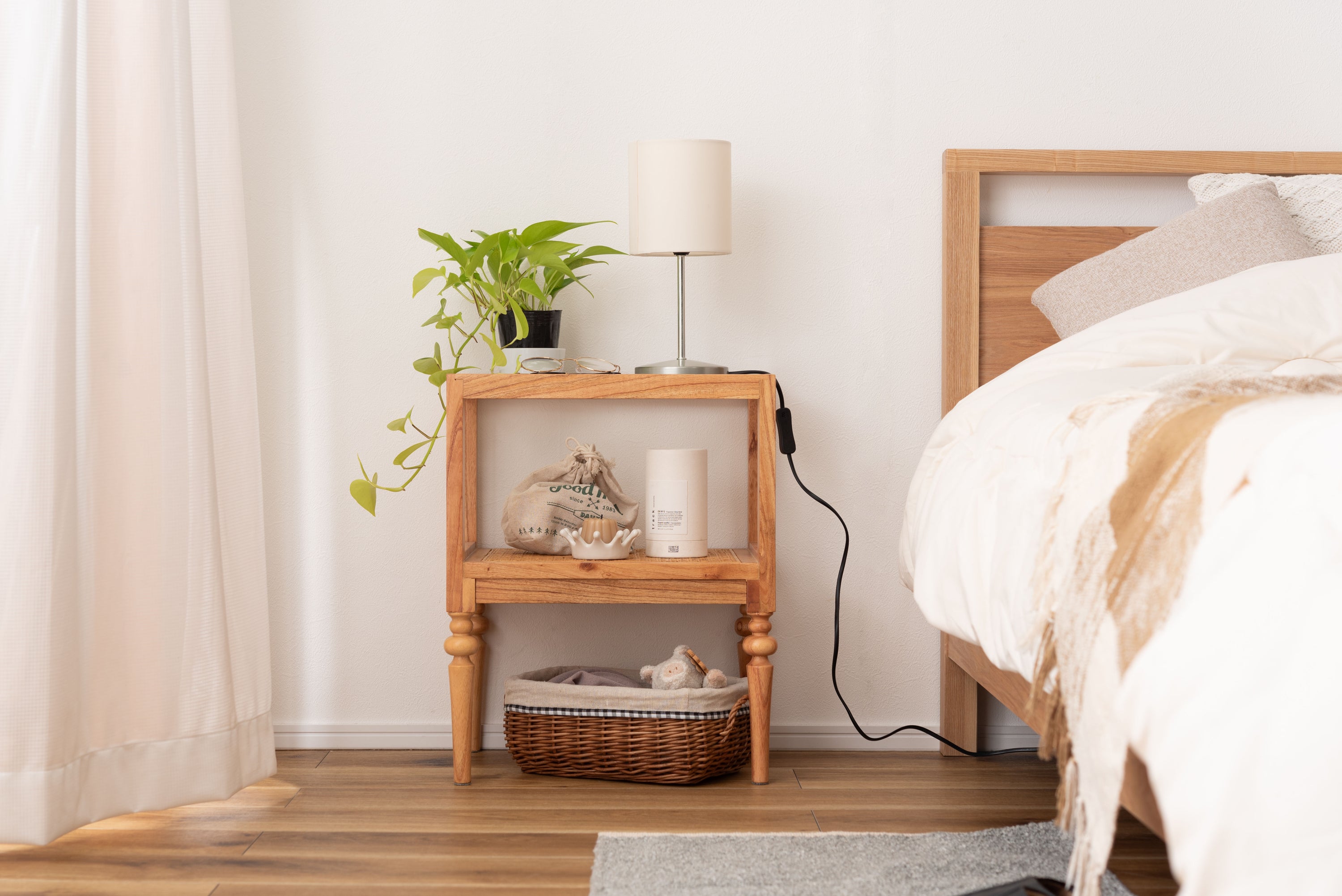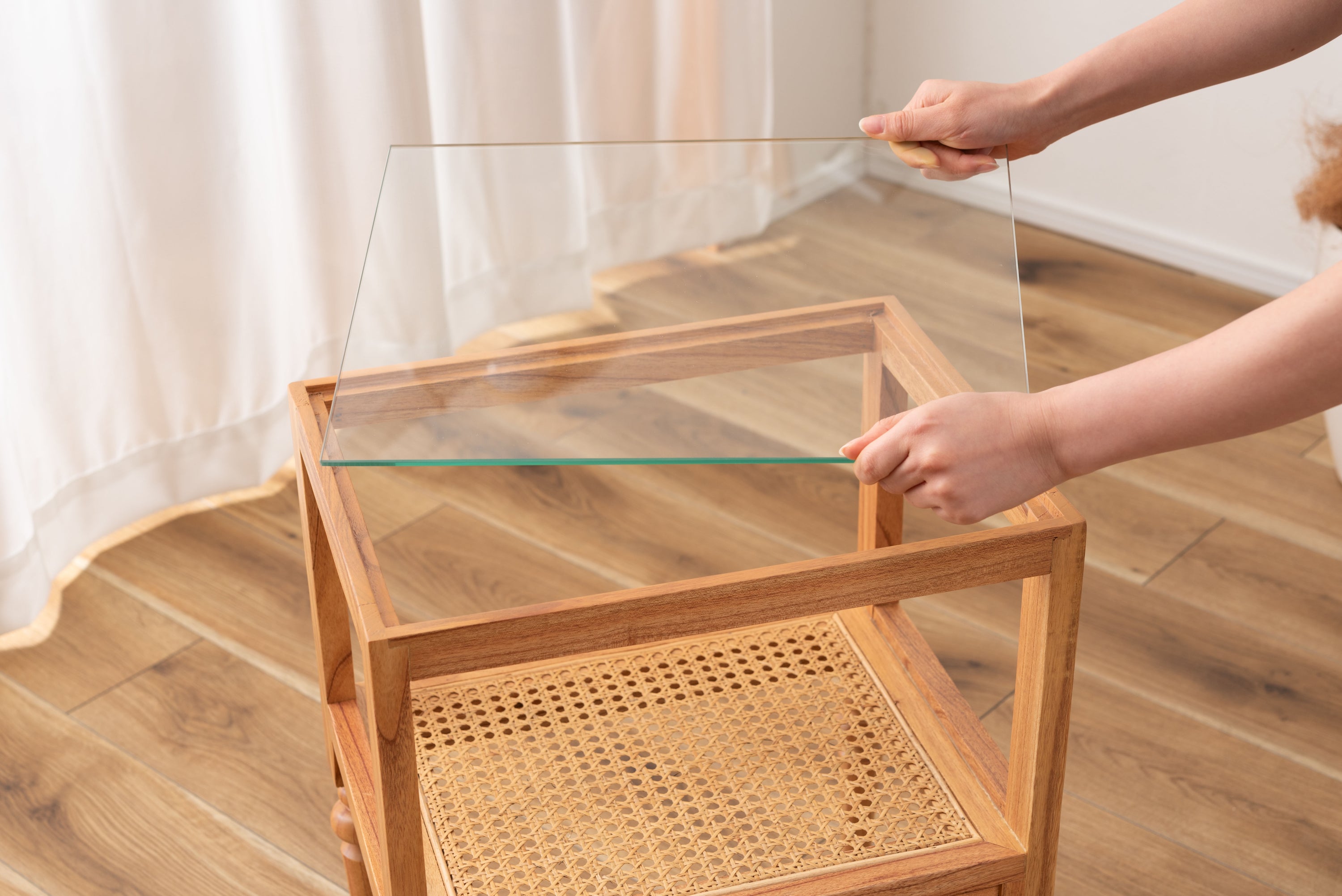 ナチュラル×クラシカルな雰囲気を演出 天然木とラタンを使用したナチュラルなイメージのデザインながら、ターンドレッグ(ろくろ脚)を採用することで、クラシカルな雰囲気も感じられるオープンシェルフ&サイドテーブル。ガラス天板で抜け感もあり、使いやすいサイズ感も魅力です。