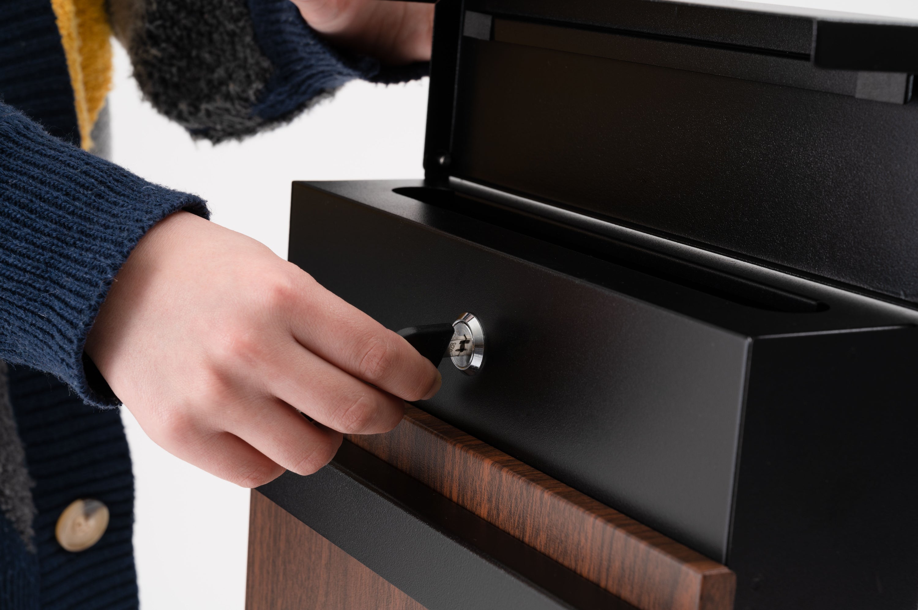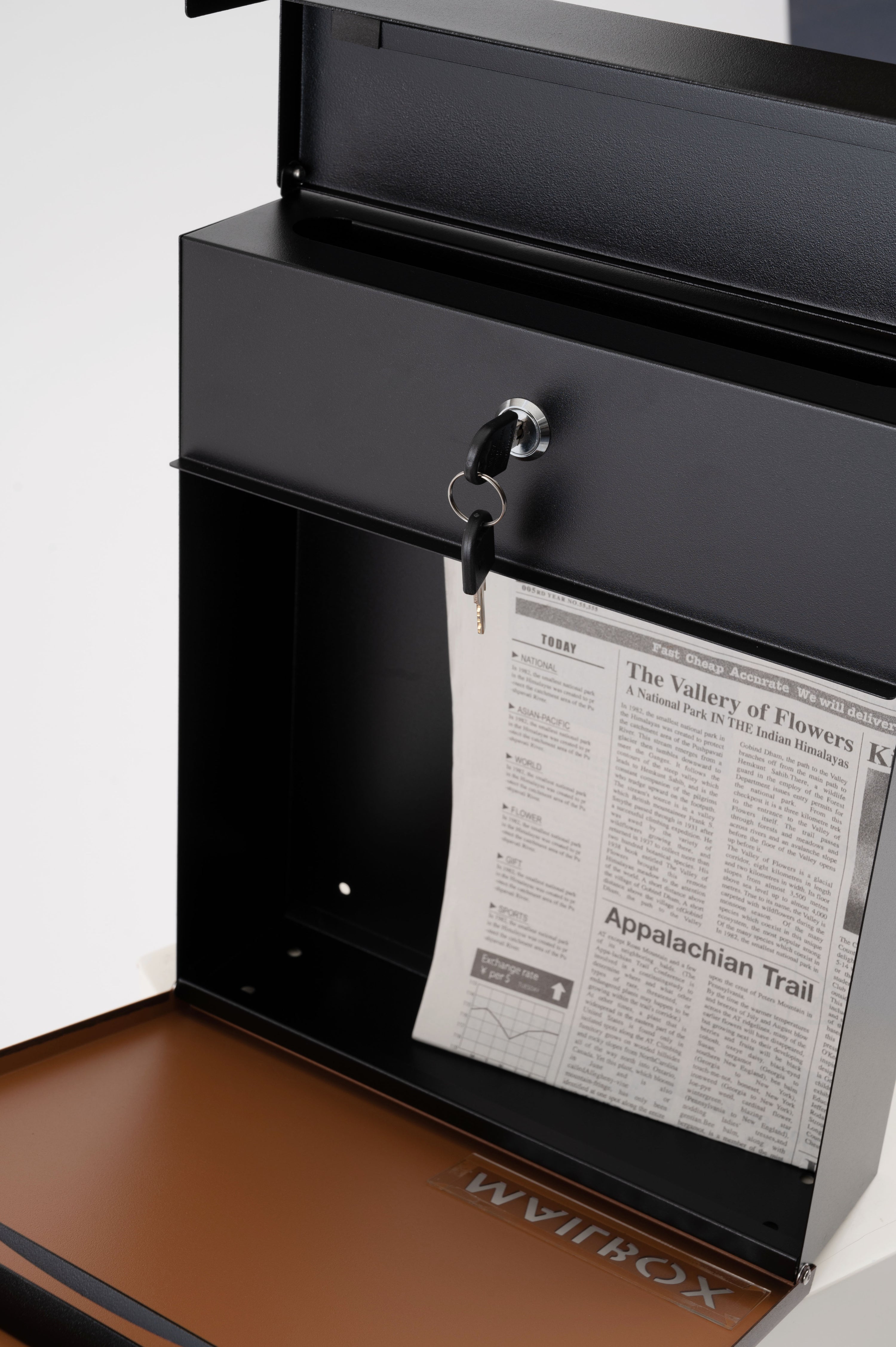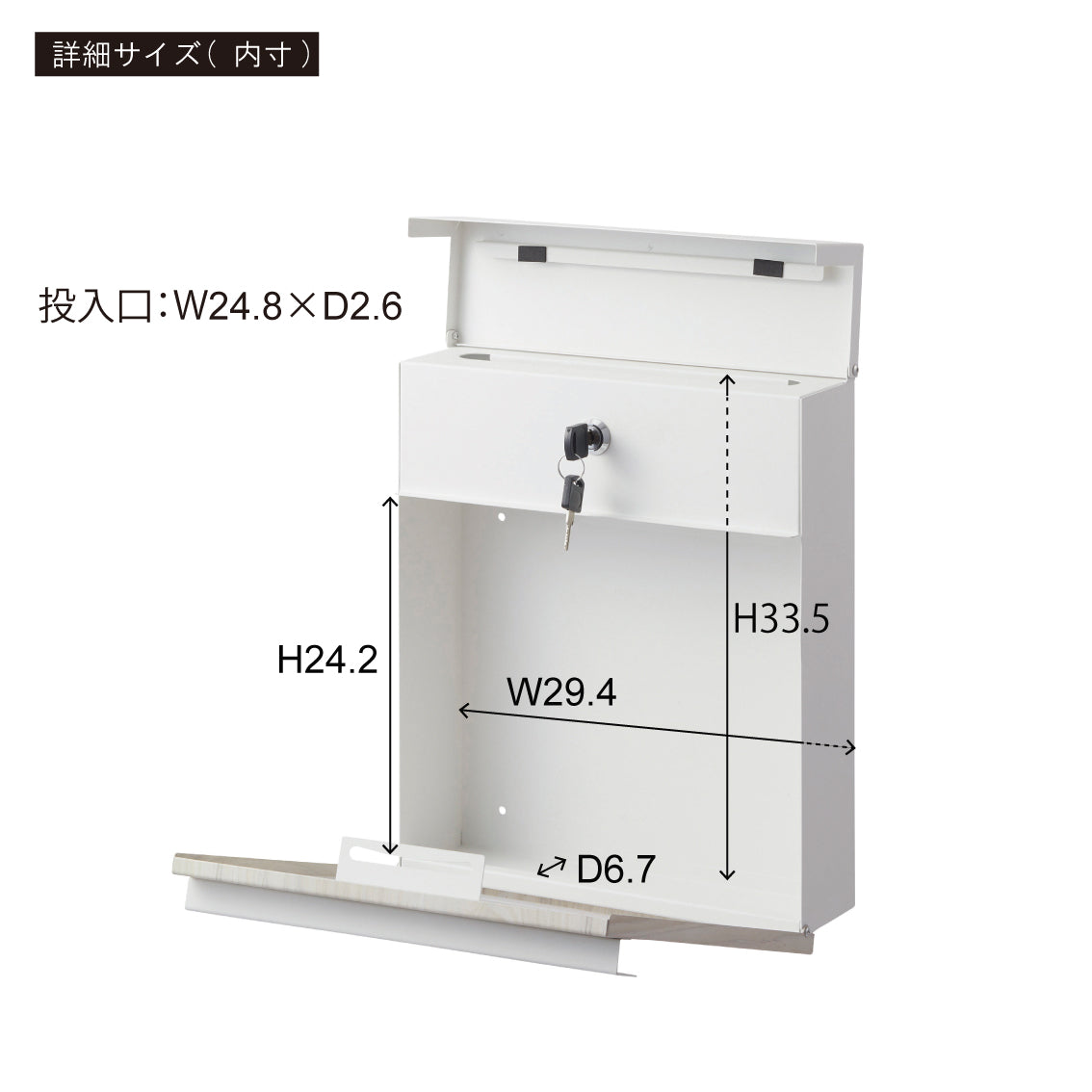 無駄をそぎ落としたシンプルデザインのメールボックス。鍵穴も目立たないようにした構造となっておりスタイリッシュに仕上がっております。本体のMAILBOXの文字は窓型(透かし)になっており、中の郵便物をわざわざ開けずに確認ができます。カギ付きなので防犯面も安心。