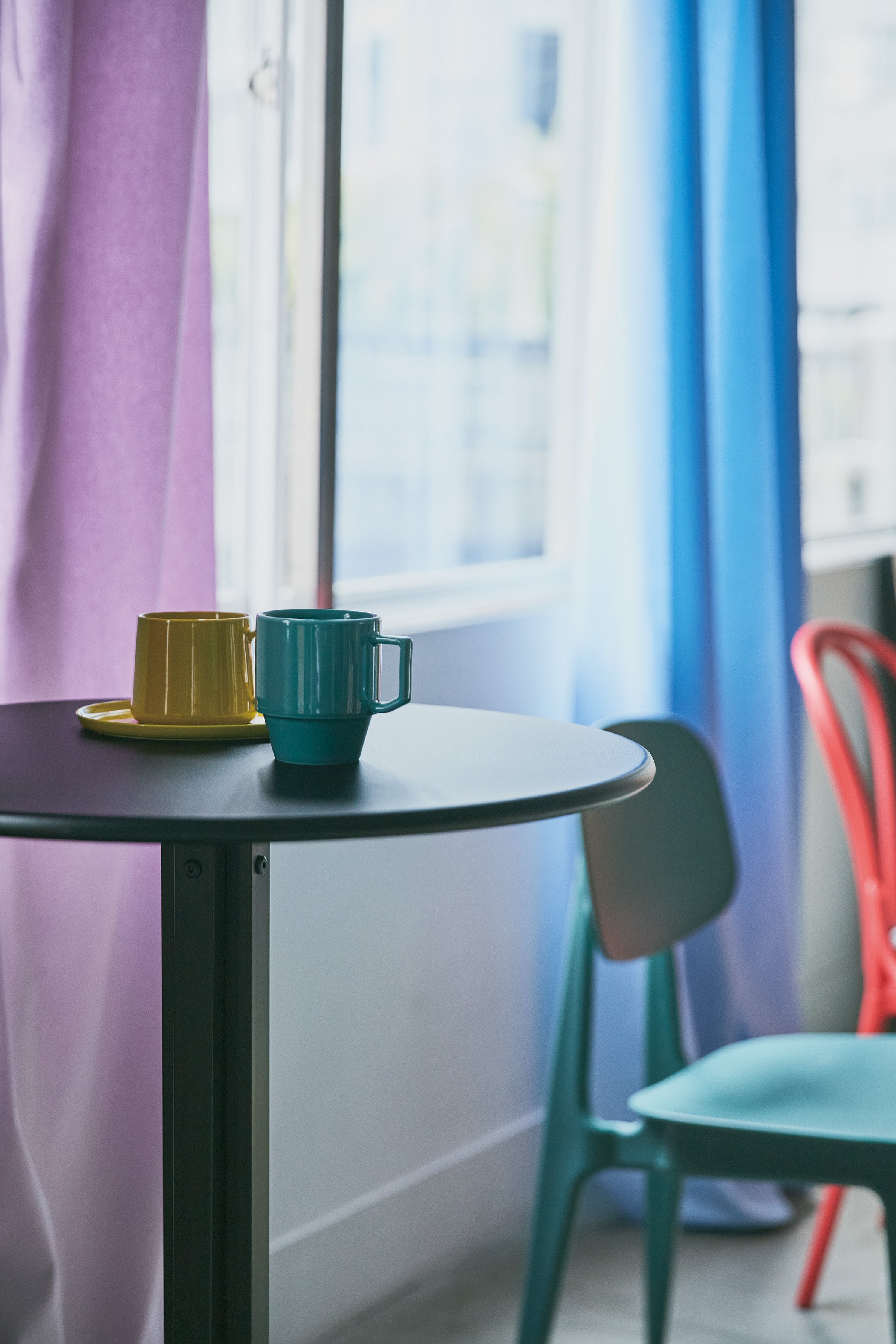 お手入れのしやすいスチールテーブル。 オフィスやカフェなど様々な空間に取り入れやすいシンプルなデザインです。