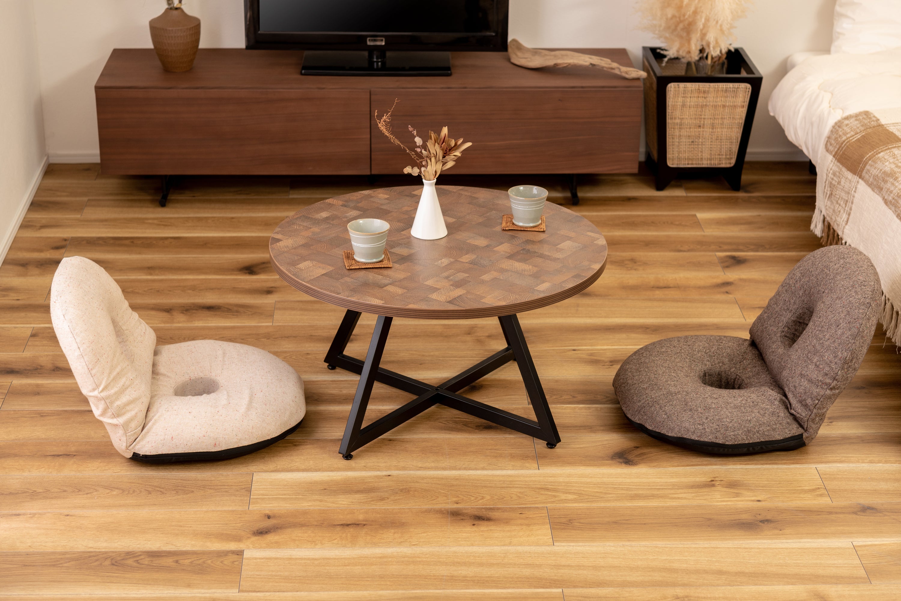 ROOMESSENCEのラウンドテーブルLミックスです。安定感のあるつくりを備え、ダイニングや作業台として活躍します。ブランドの美意識を感じる佇まいで、日常づかいから来客時まで幅広く対応。品番:PT-336MIX。暮らしに上質なアクセントを添える一品です。