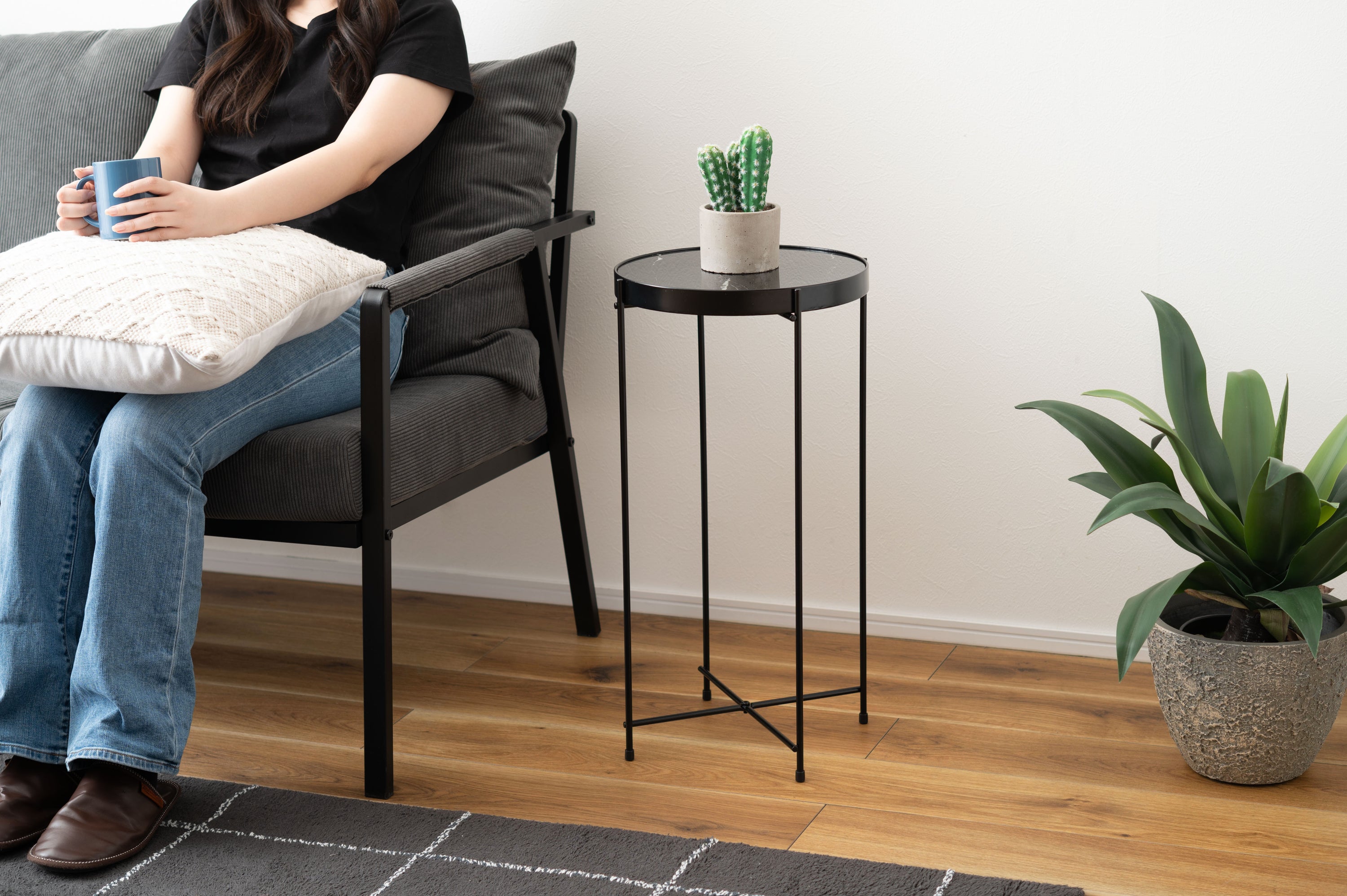 シックな雰囲気を漂わせるシンプルでスタイリッシュなデザインが魅力的なサイドテーブルです。2サイズ展開なので組み合わせて使用することができます。脚部のシャープさが空間の邪魔をせず、シックでモダンな空間を演出します。