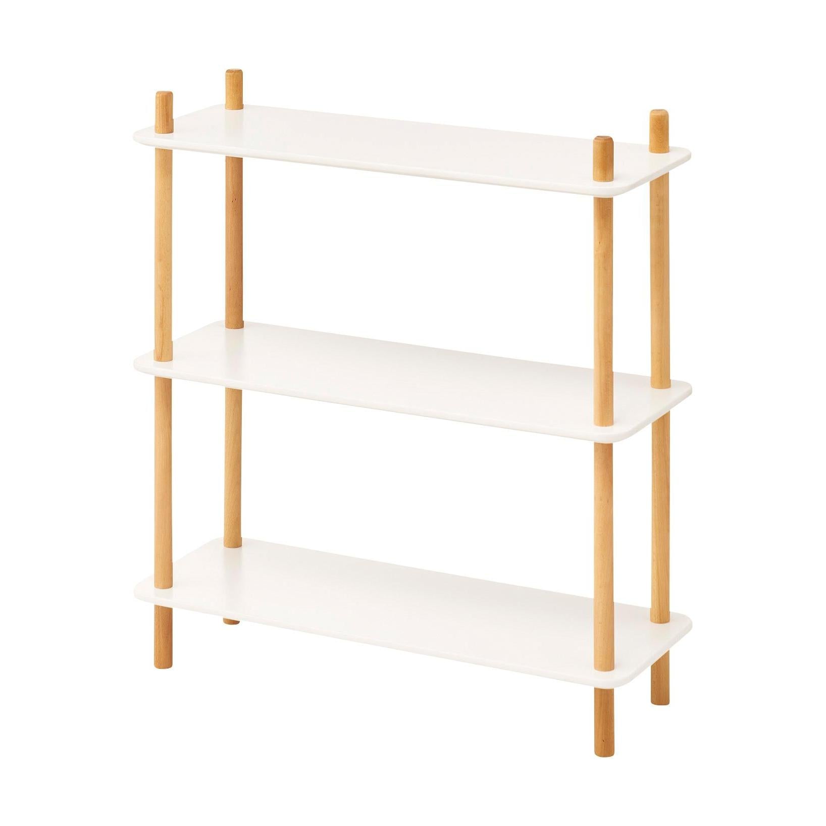 ホワイトの棚と天然木のナチュラルカラーな支柱が優しい印象を与えてくれる、3サイズのラックです。使う場所を選ばず様々な場所で活躍してくれるラックは、オープンタイプなので、壁面に設置するだけでなく空間の間仕切りとしても、抜け感を与えながら圧迫感無く使用する事が出来ます。ねじ込み式で組立も簡単。お好みで高さを変えて使用する事も可能です。