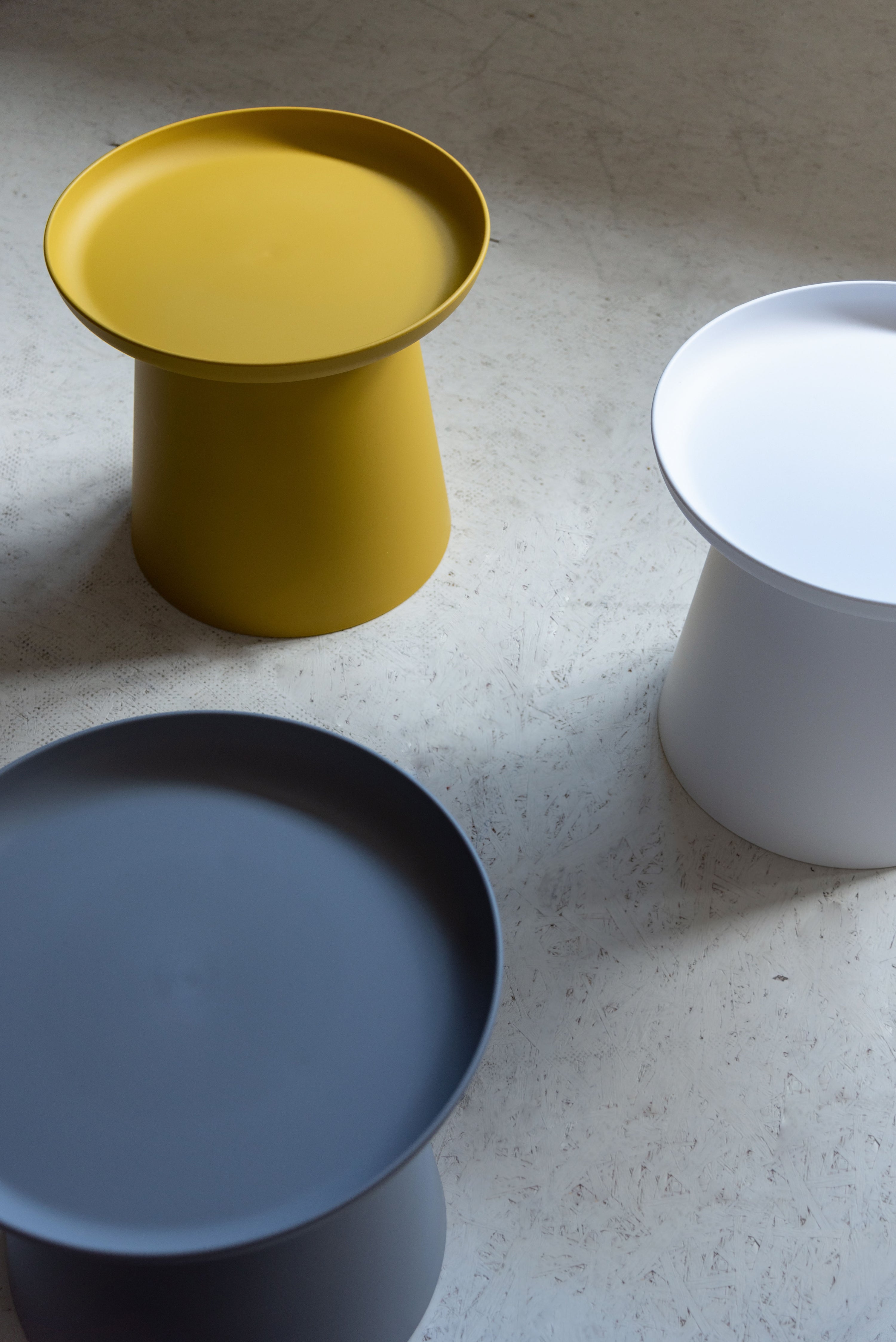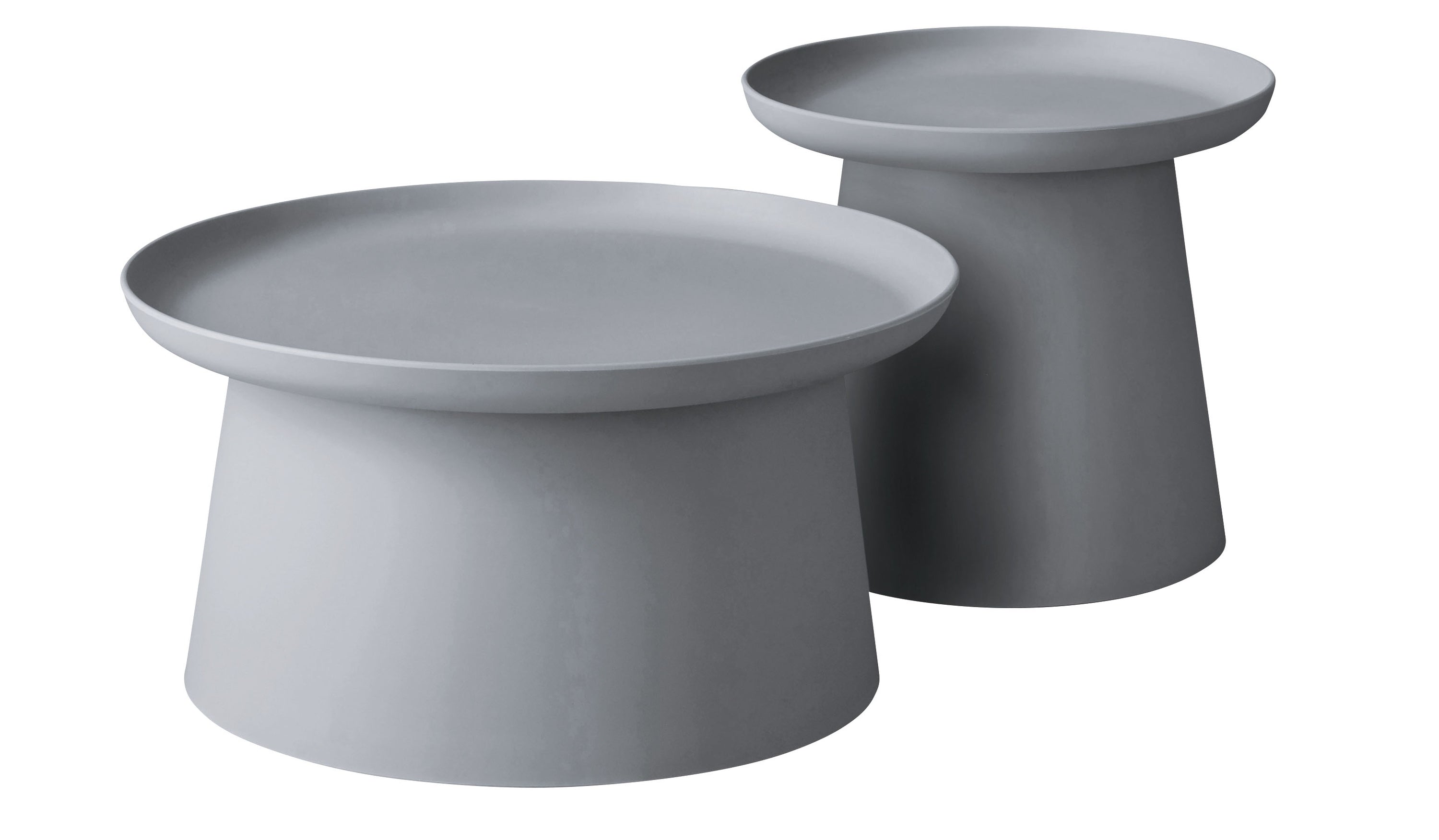 印象的なシルエットのラウンド型テーブル。 耐久性にすぐれ、ホームユースに限らずパブリックスペースでのご使用にも適しています。