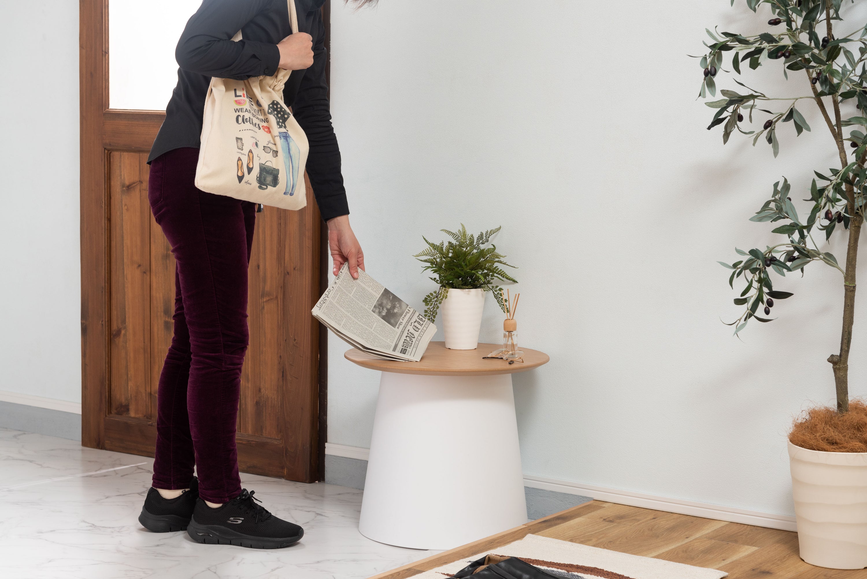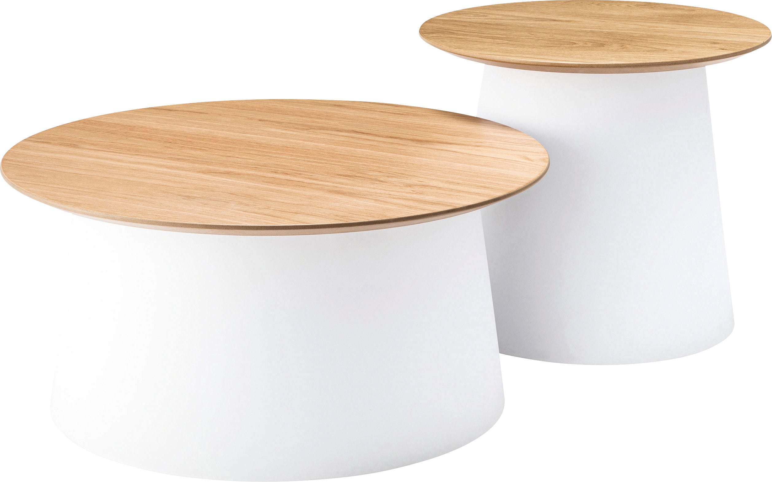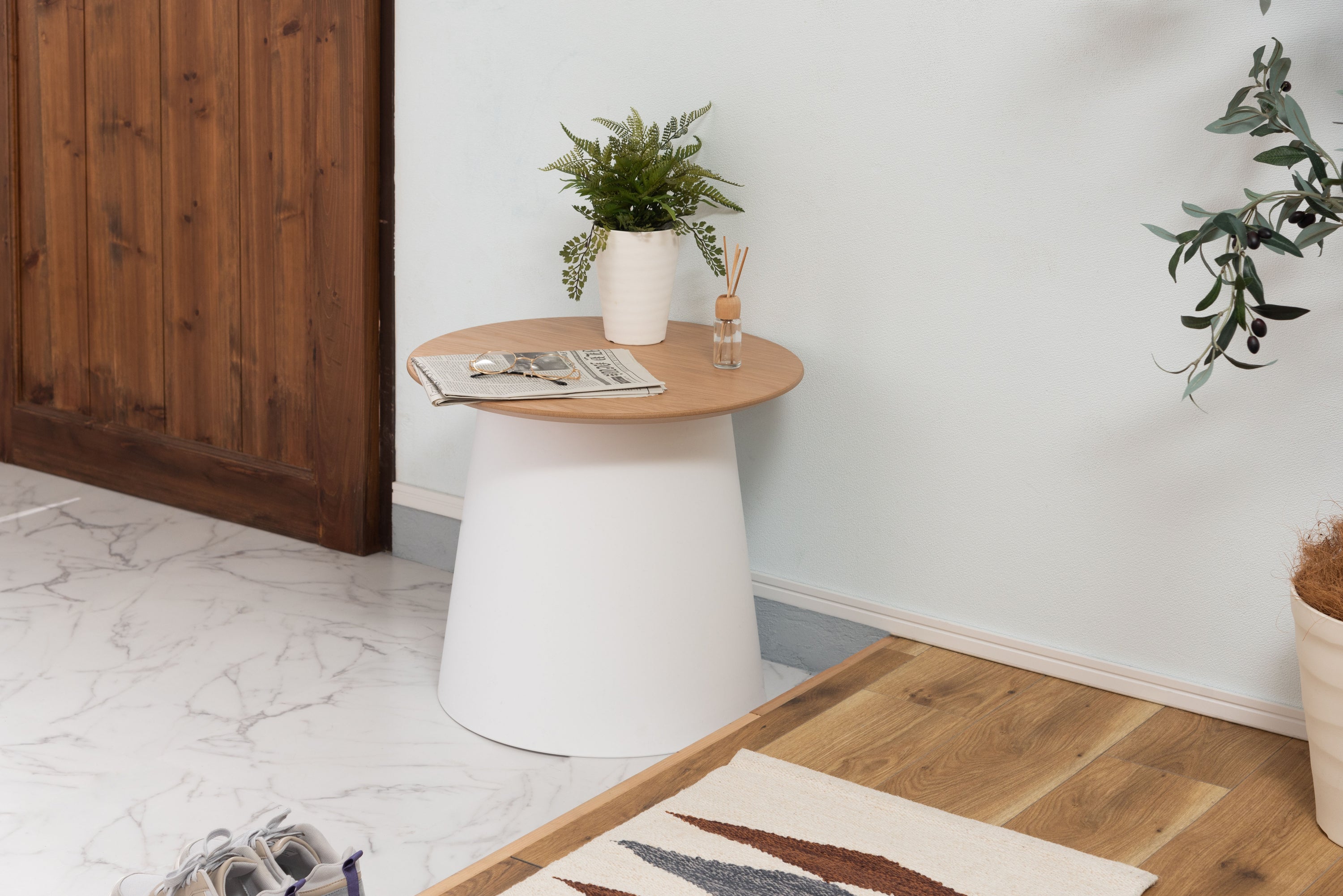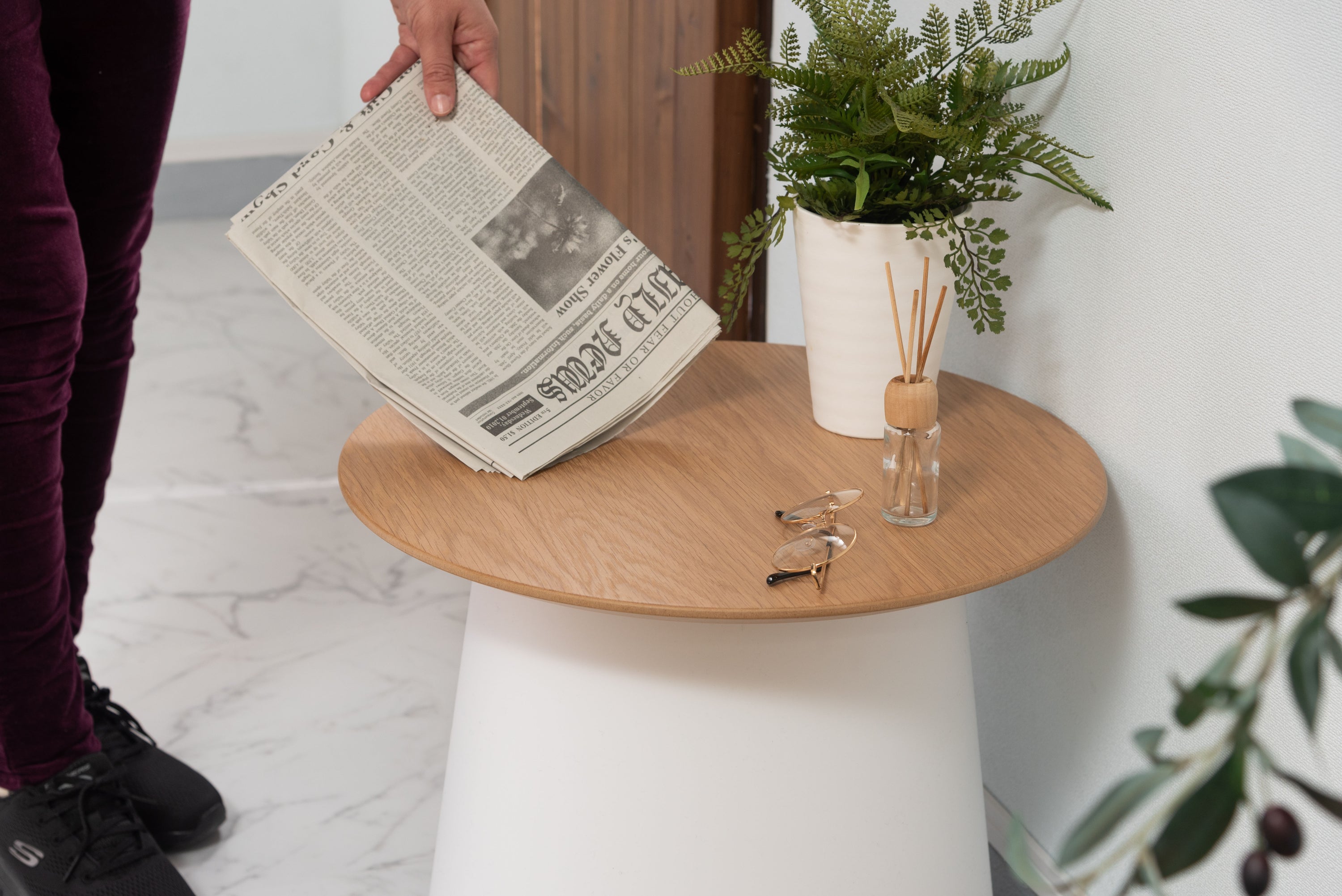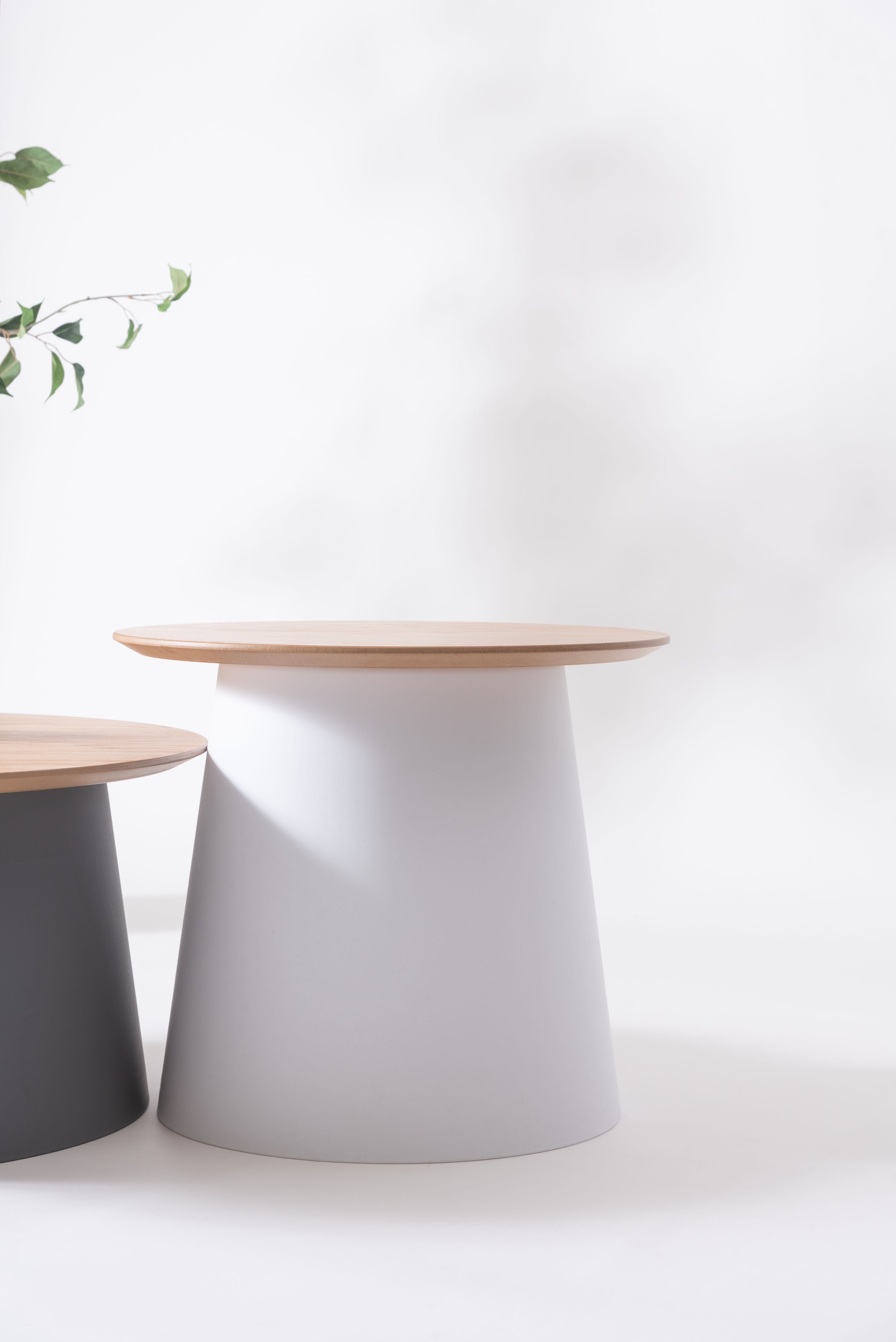 天板と脚部の異素材の組み合わせが特徴的なラウンドテーブル。 センターテーブルやサイドテーブルとしての用途だけでなく、 サイズ違いで組みあわせることで使い方の幅が広がります。