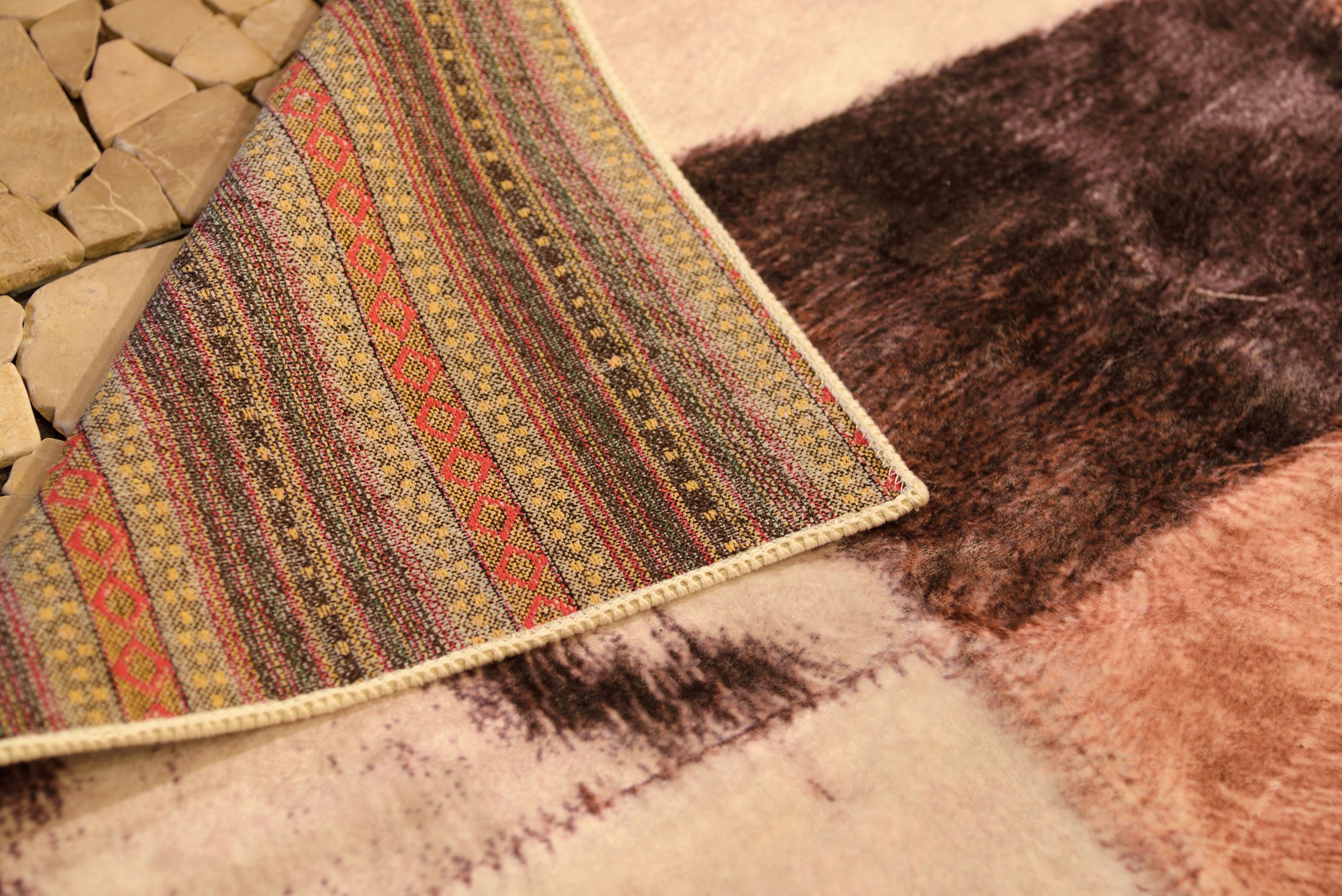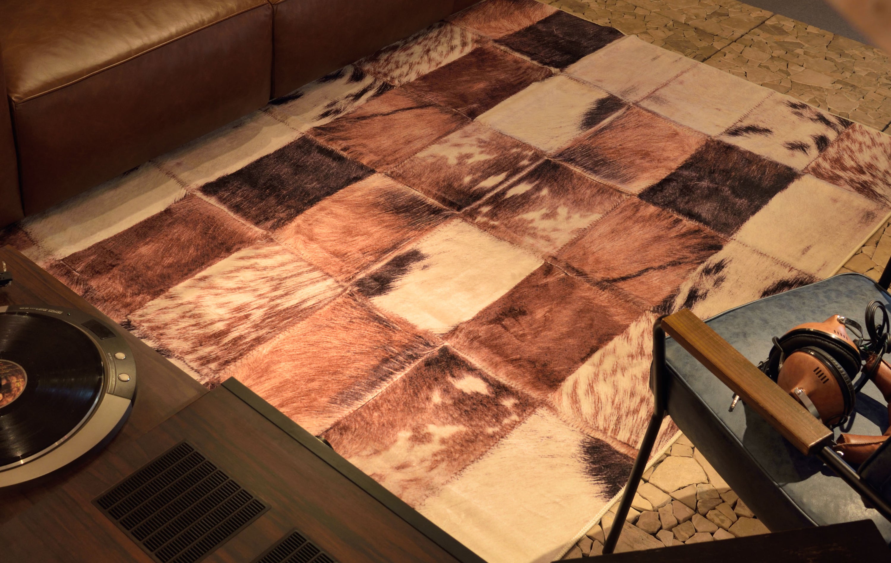ラグジュアリーなハラコパッチワークを表現まるで本物のように見えるプリントとさわり心地を表現したデザインラグです。4サイズの展開をしておりますのでいろいろなシーンに合わせてお選び下さい。