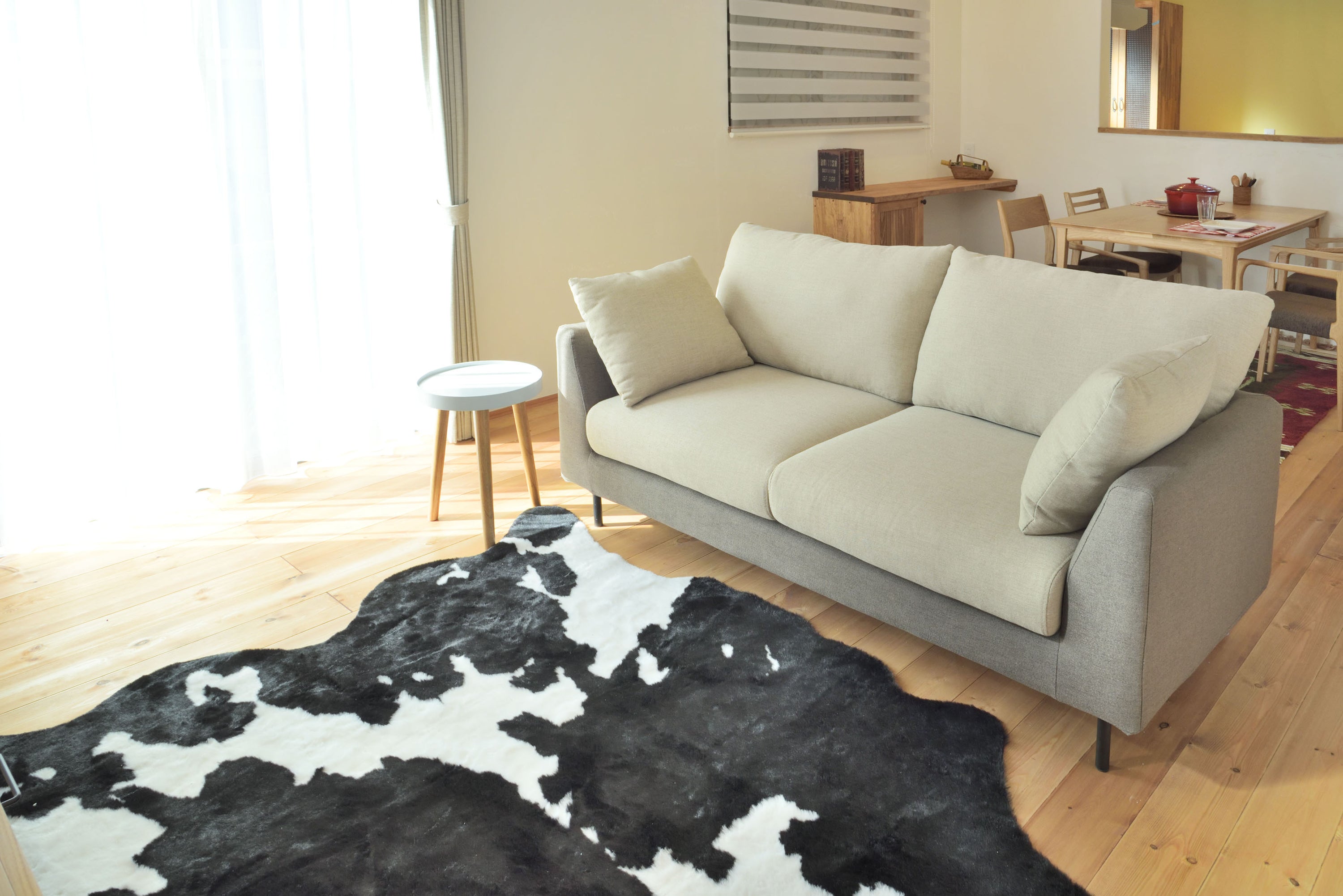 フェイクファーを使用した、カウ柄のラグマット ワンランク上のお部屋を演出する、存在感抜群のアイテムです。
