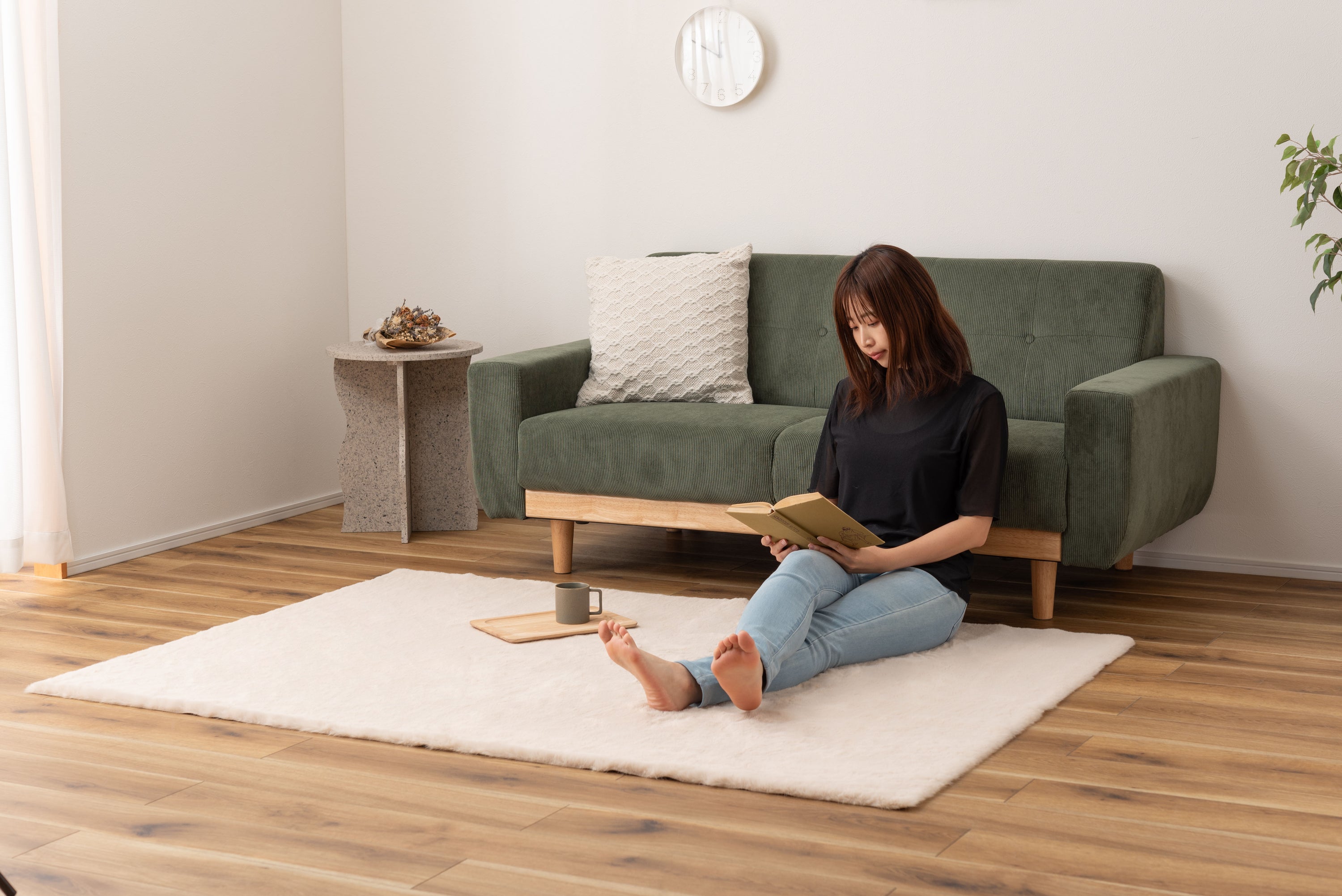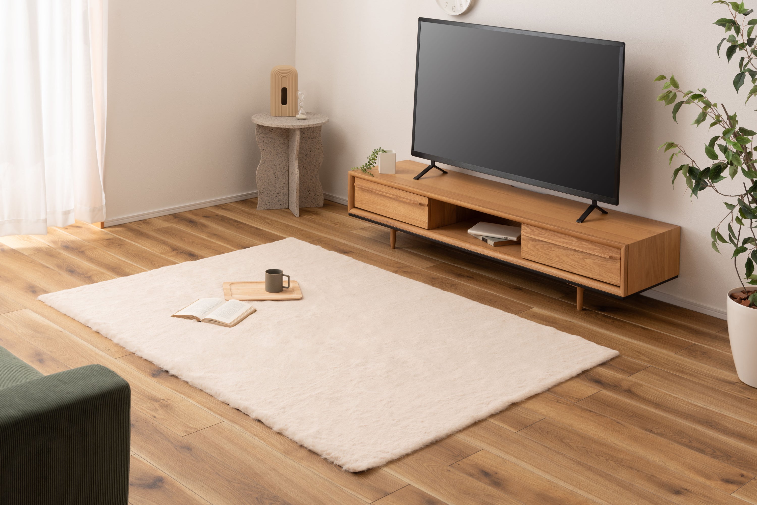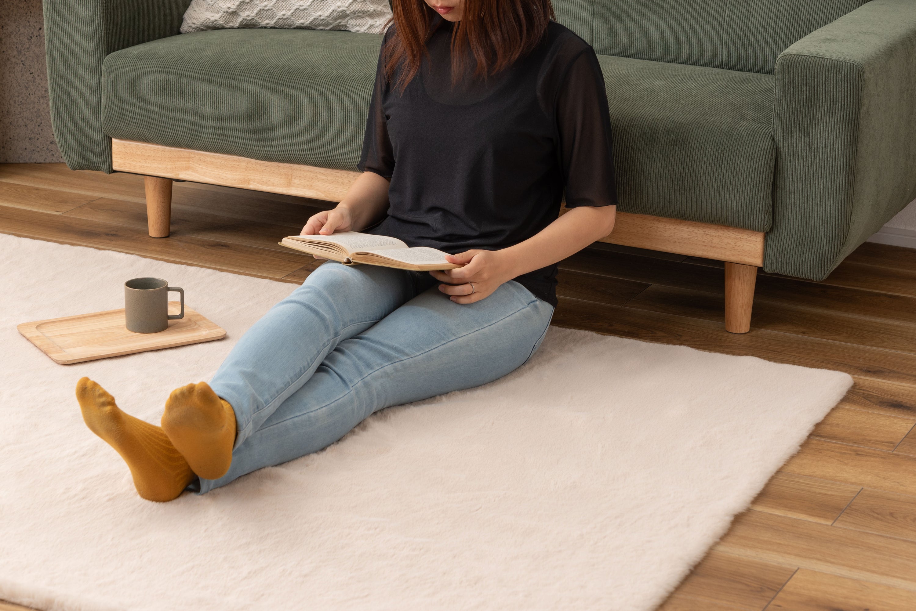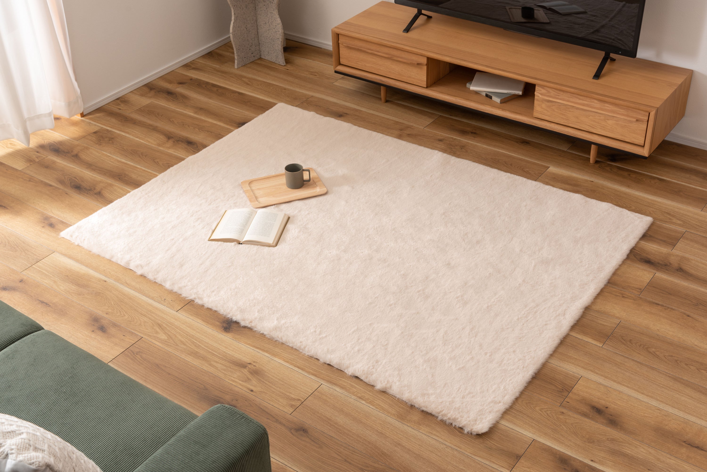 しっとりふわふわな手触りがくせになる、やわらか触感のラグマット。一度触ったらその気持ちよさの虜になること間違いなしな、とにかくふわふわ柔らかいソフトシャギーなラグ。ほっと一息つきたい時、そんなくつろぎタイムに寄り添ってくれるような質感です。裏面は、床に吸着するタイプの滑り止めが施されており、ズレにくくなっているので、小さなお子様がいるご家庭でも安心してお使いいただけます。ふわふわの手触りで気持ちよく快適に過ごせます吸着タイプの滑り止め加工が施されています