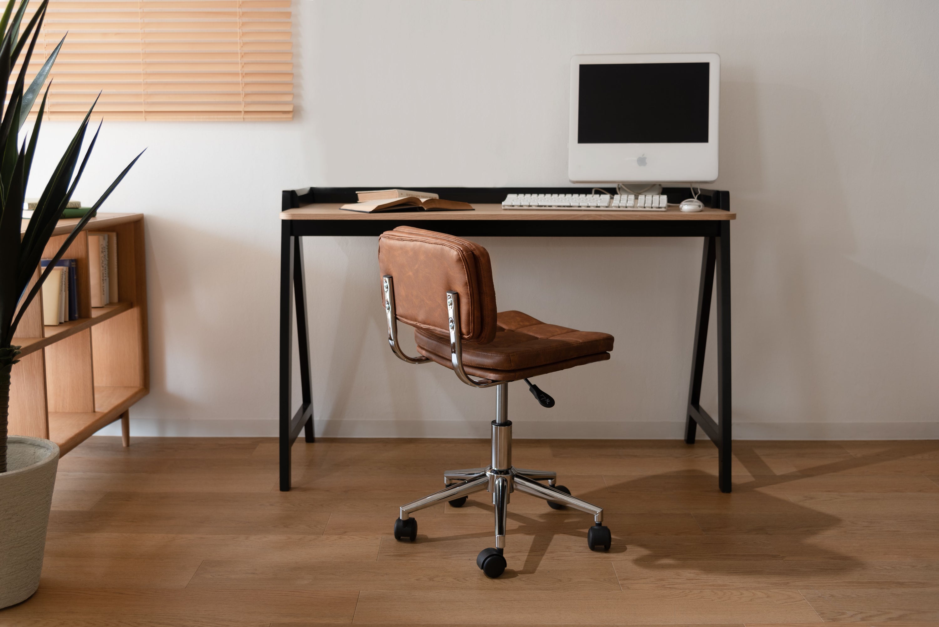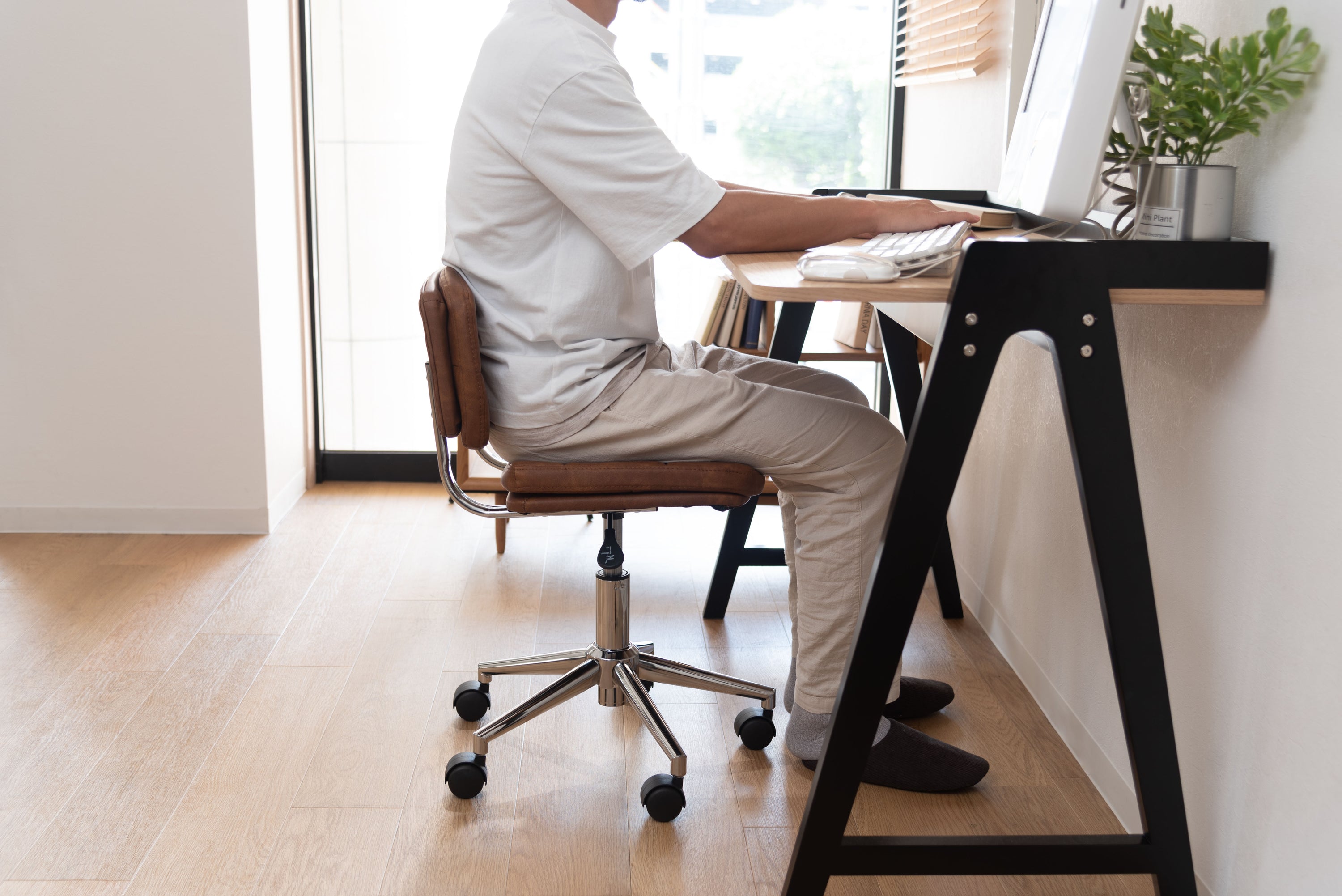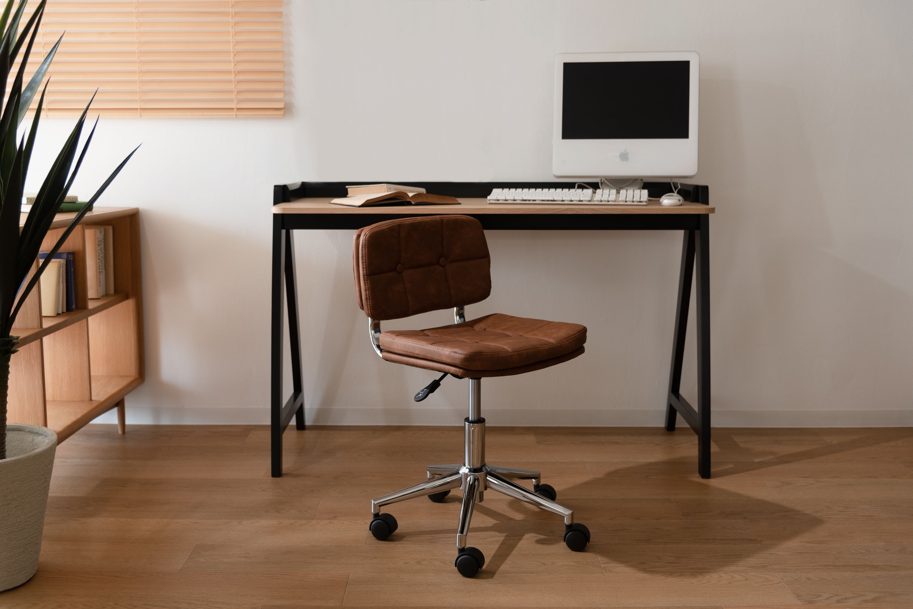 ROOMESSENCEのデスクチェアブラウンです。長時間でも快適な座り心地を備え、ダイニングやワークスペースに活躍します。ブランドの美意識を感じる佇まいで、日常づかいから来客時まで幅広く対応。品番:RKC-301BR。暮らしに上質なアクセントを添える一品です。