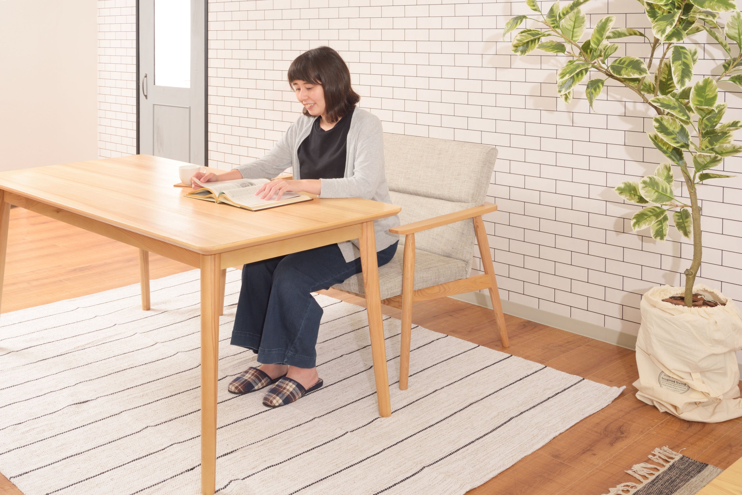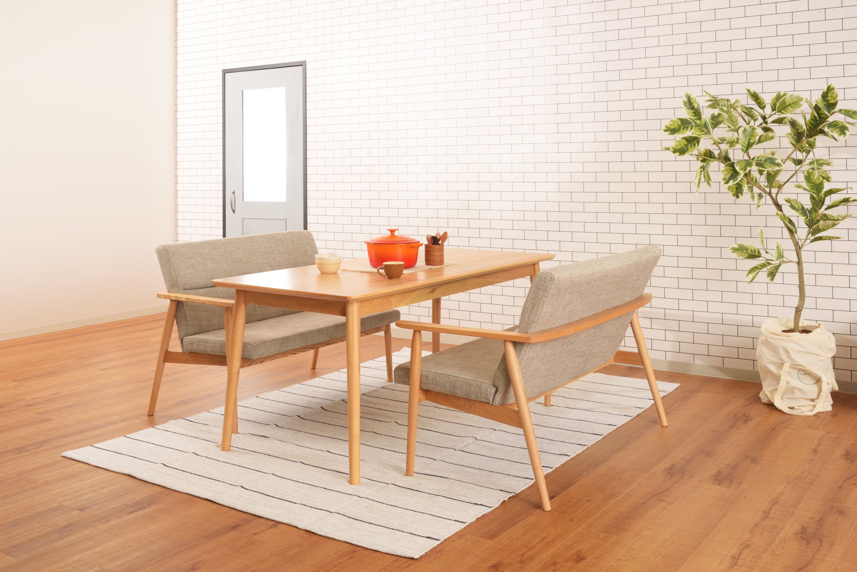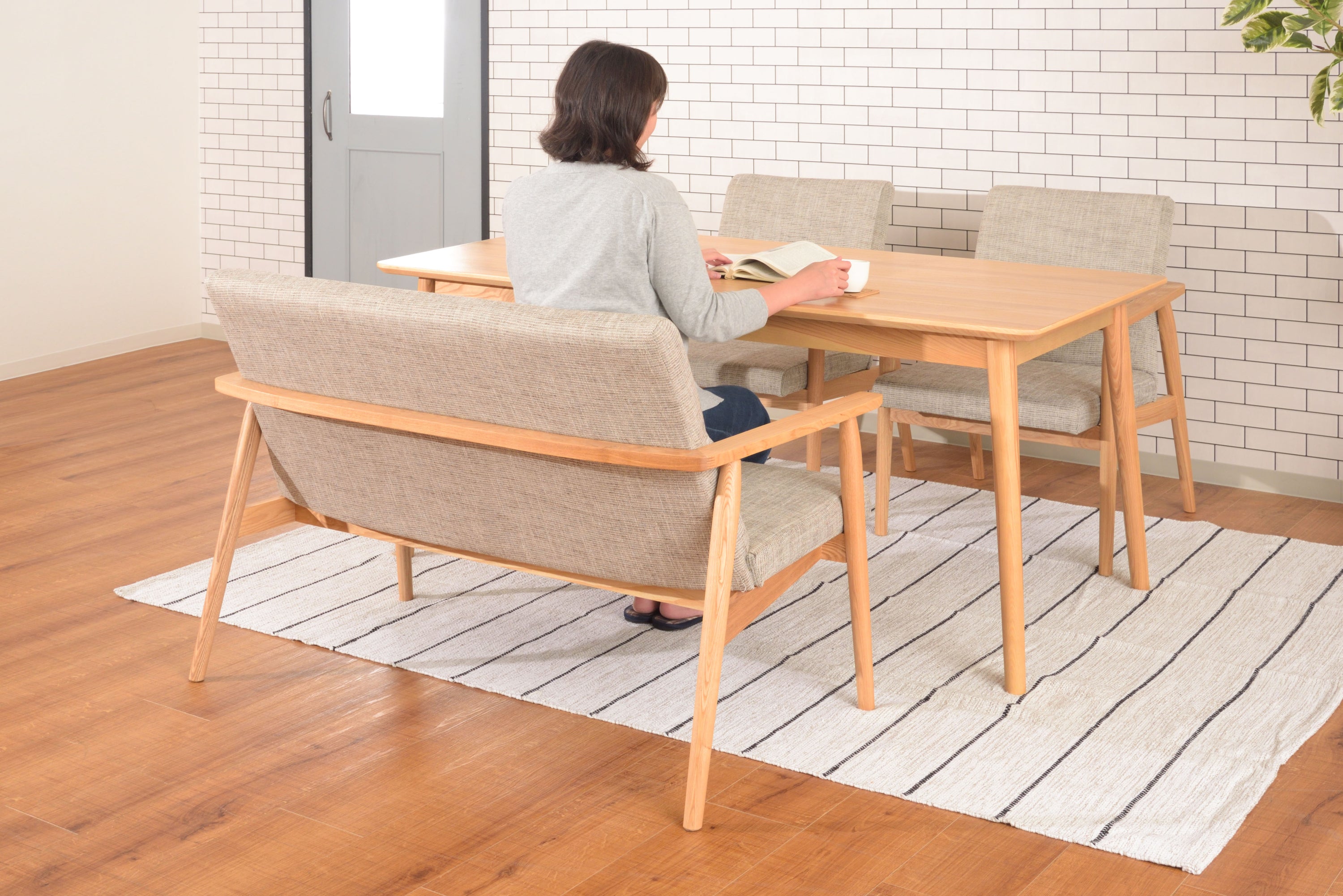 木目の美しいアッシュ無垢材を使用した、ナチュラルテイストのダイニングチェア&ソファ。全体的に細くすっきりとしたデザインで、新色のチャコールグレーと定番のベージュカラーの2色を展開。アーム付きのダイニングは、食事時もゆったりとした時間を過ごせる空間に仕上がります。