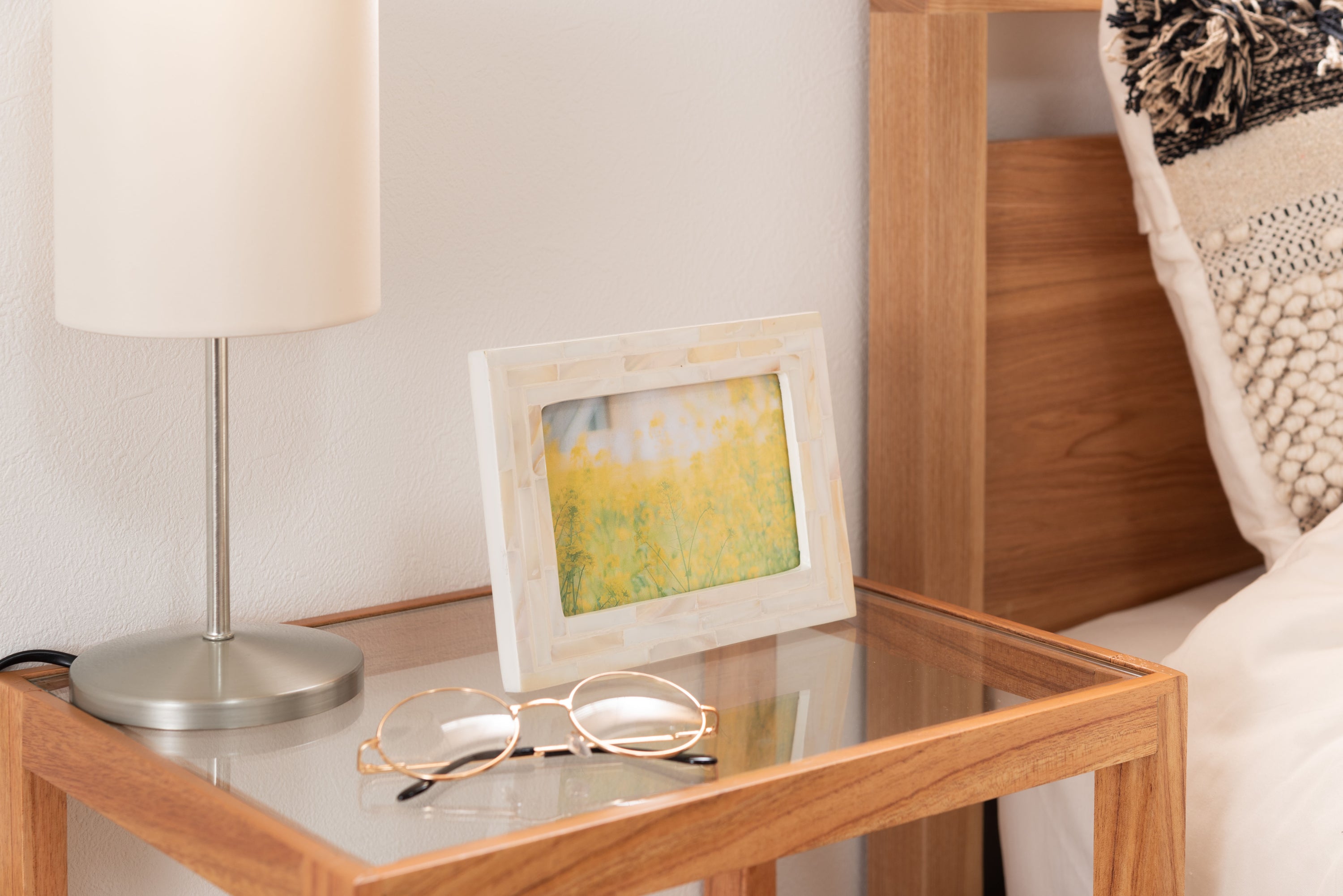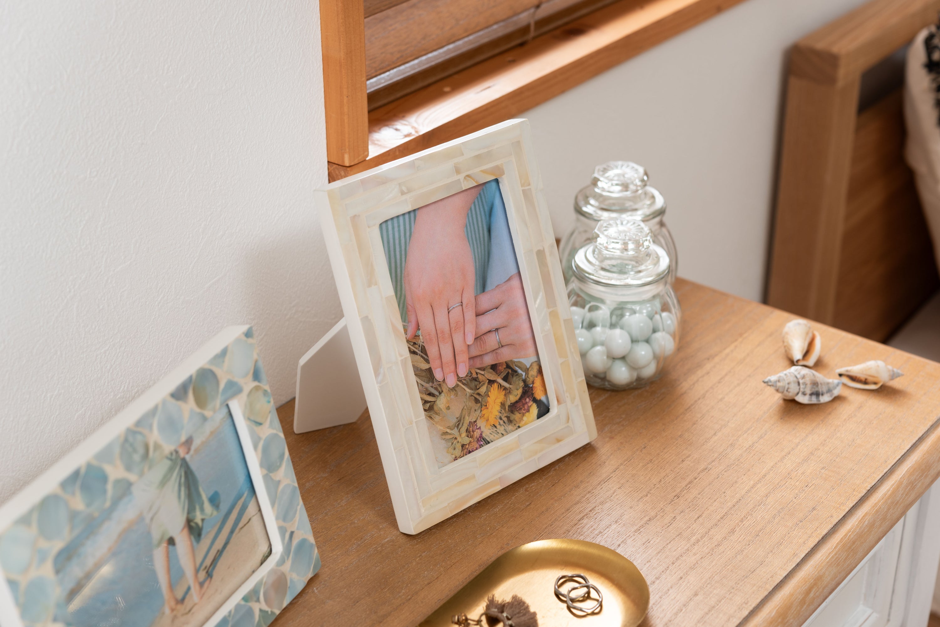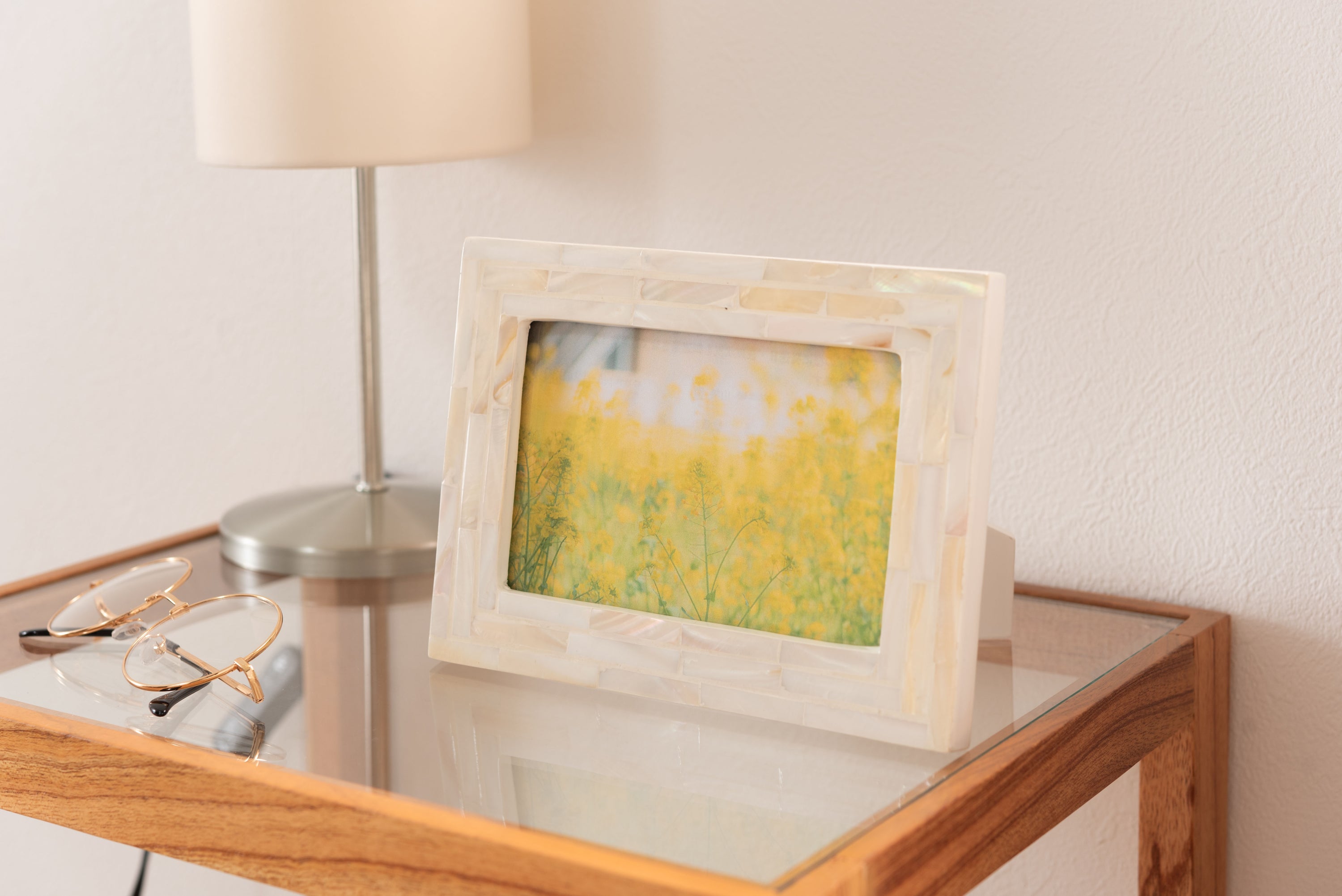 透明感と独特な光沢が演出する,マザーオブパールシェルインテリアシリーズ。マザーオブパールはその名の通り真珠を育む貝で真珠のような虹色に輝く光沢が特徴です。古くから時計の文字盤や楽器、雑貨の装飾に使われてきました。一点一点丁寧に手貼りされ、シンプルで上品な印象に仕上げることで現代のインテリアにマッチするようデザインしました。