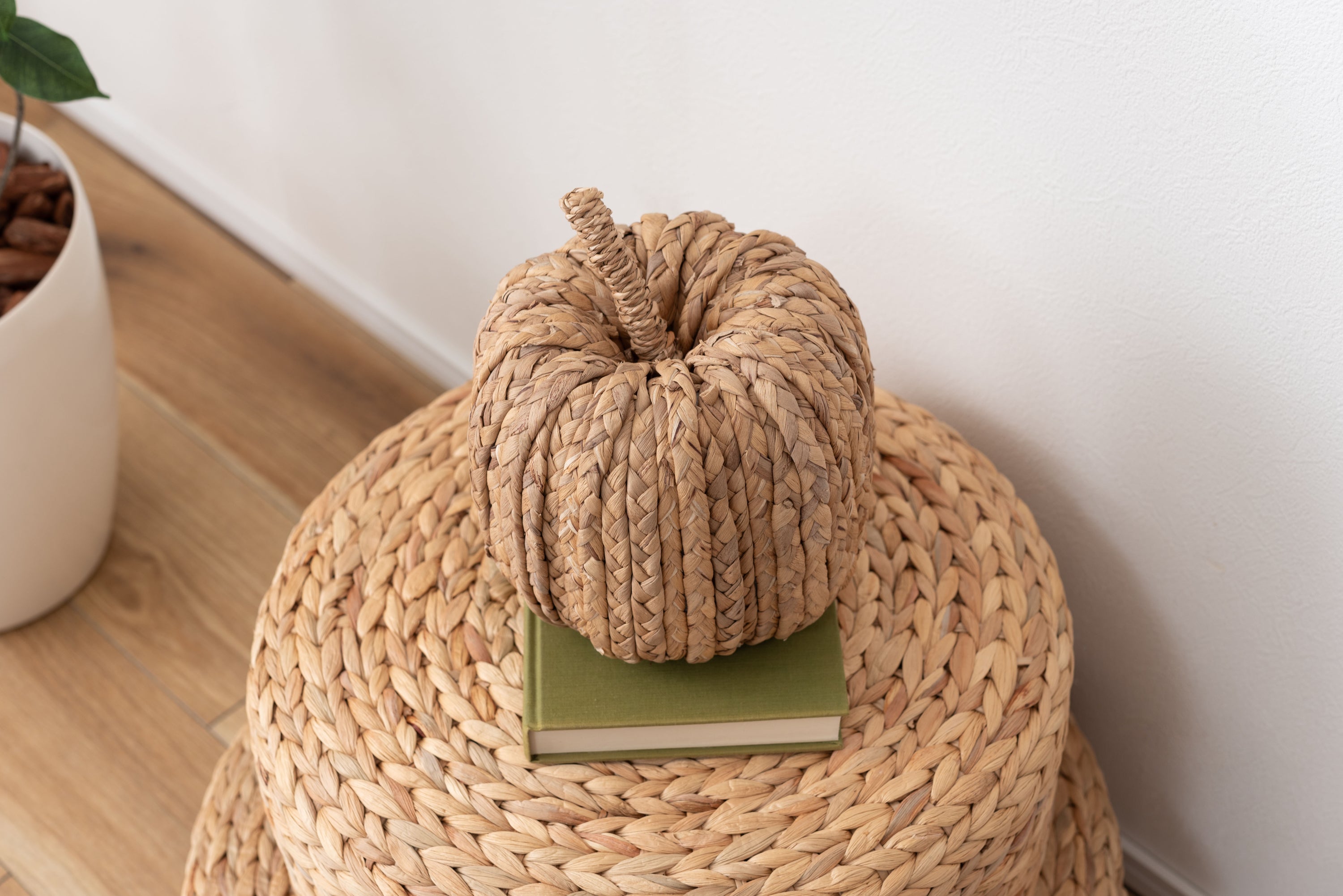 天然素材を活かした、ぬくもりのあるオブジェ。丁寧に編み込まれており、一つ一つ表情が異なるところが魅力的です。カジュアル過ぎない、優しい雰囲気がお部屋に温かみを与えてくれます。