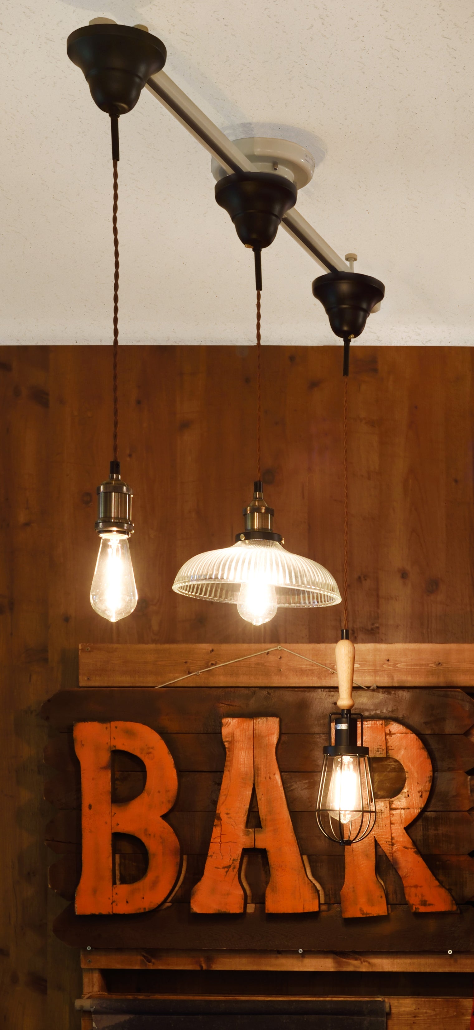 シーリングに取り付けるだけで簡単に設置できるダクトレール。 同じ照明をいくつか並べればカフェのような照明スタイルが演出できます。