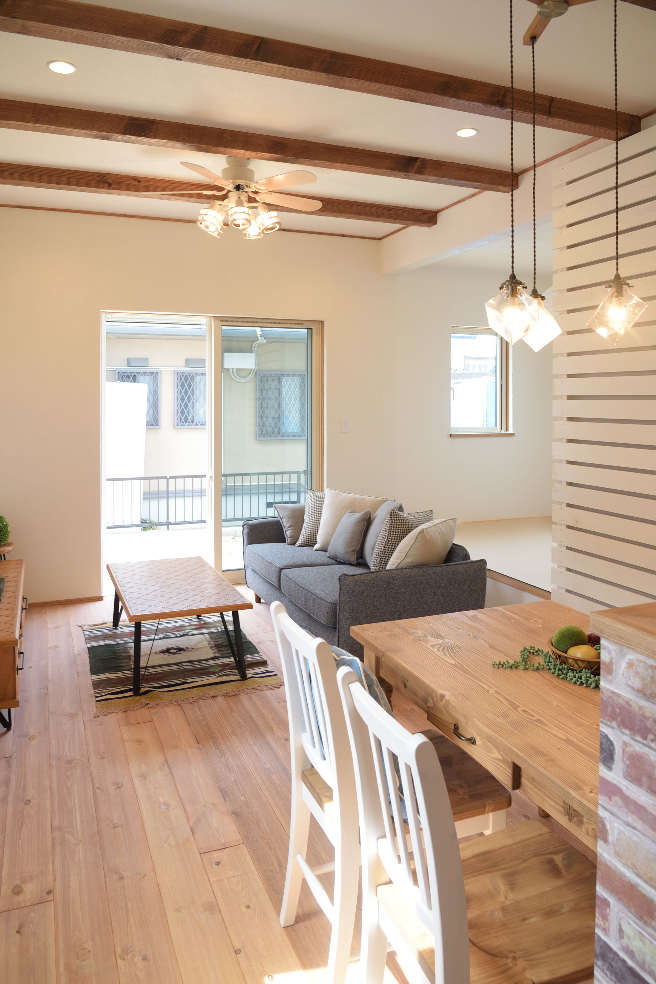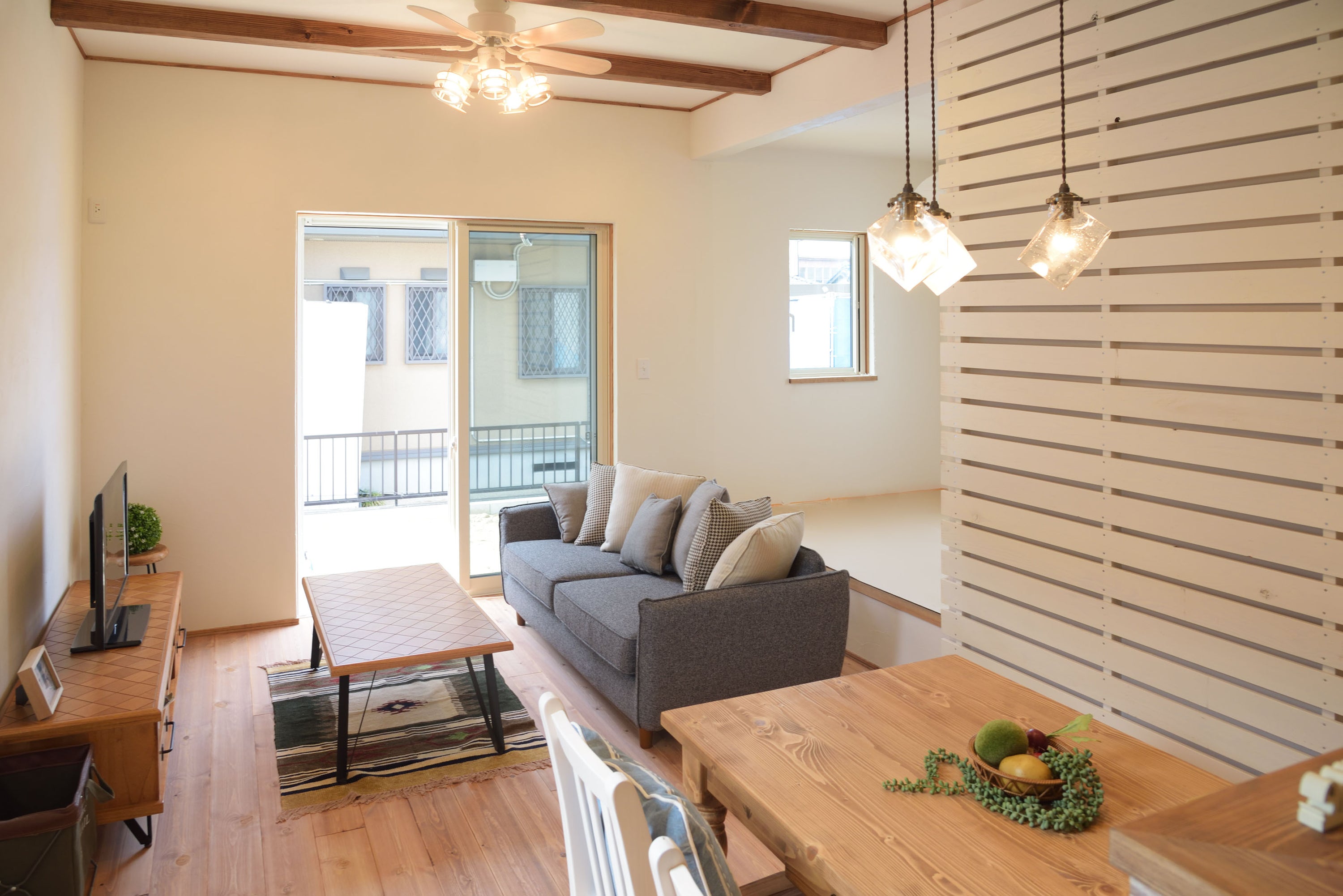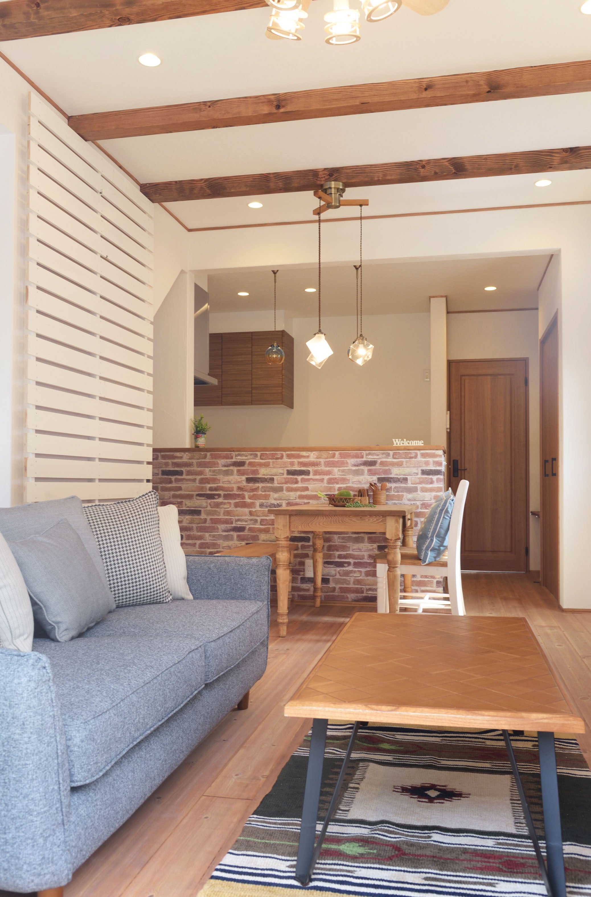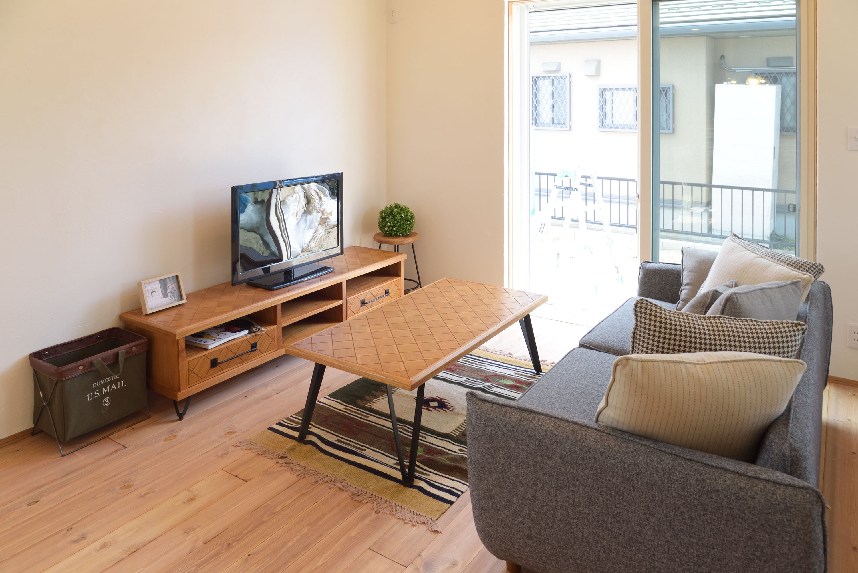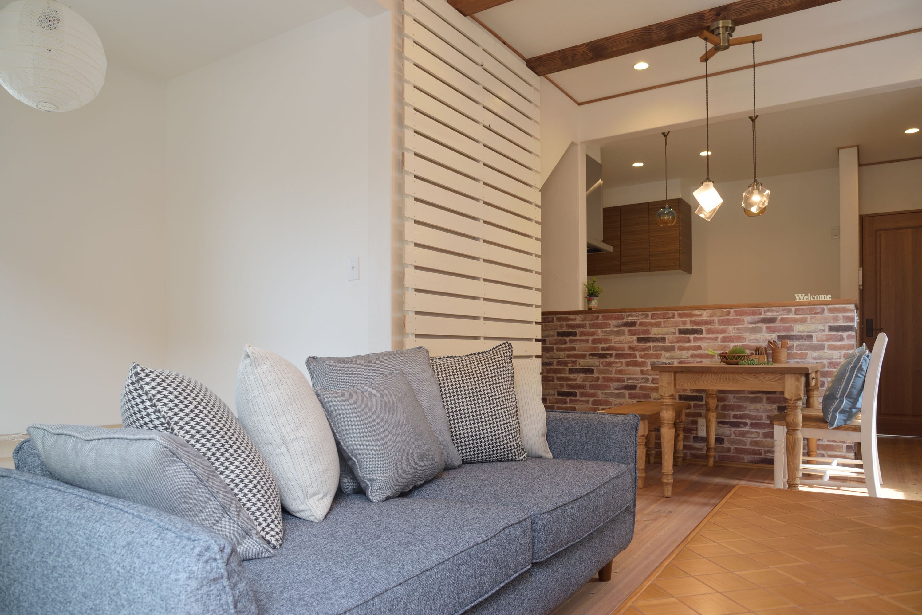 クッションがたくさんセットになったカバーリングソファ、シアター 広い座面でゆったり過すことができます