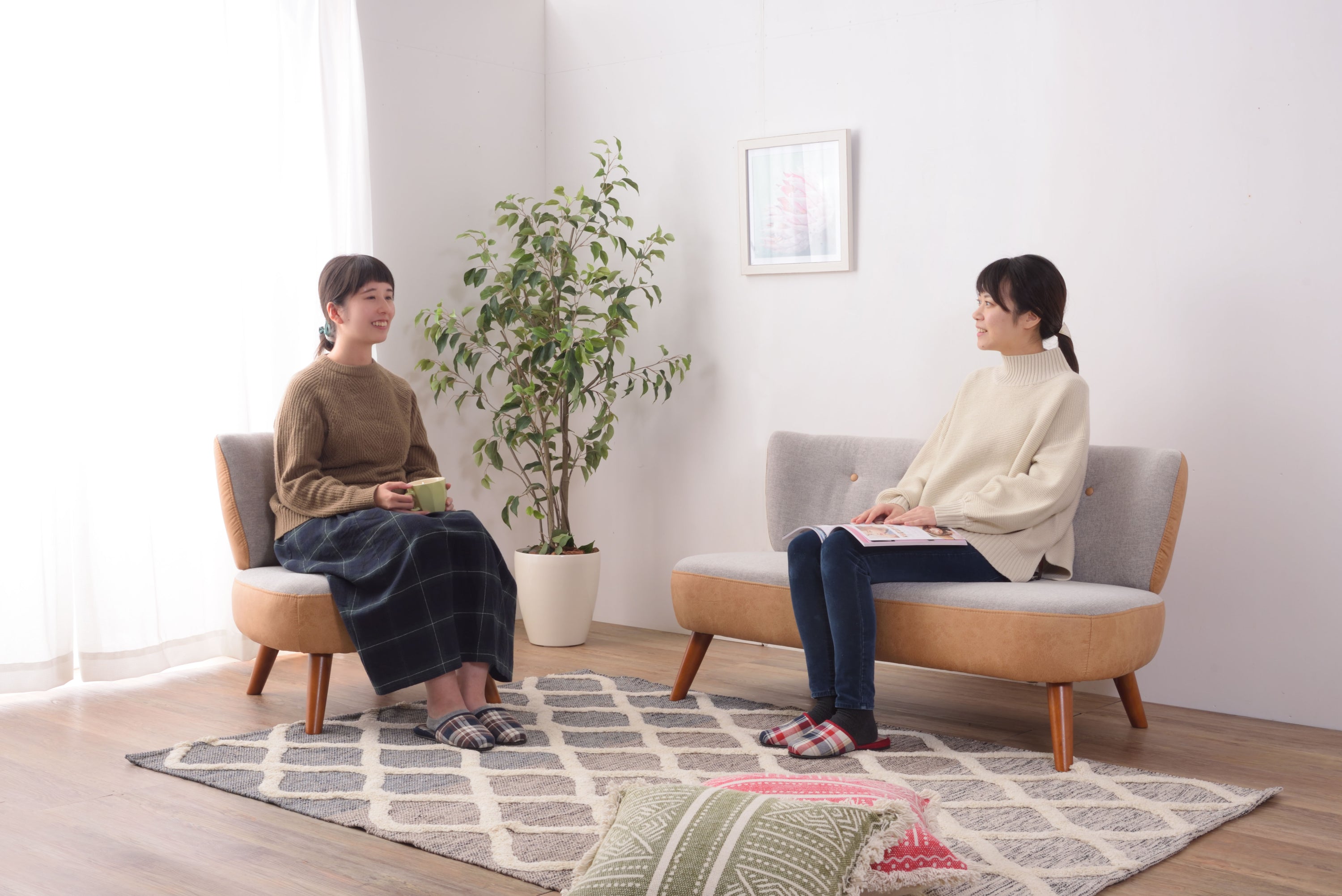 丸みを帯びたフォルムがかわいらしい、ソファ「ピティ」 やさしい色合いはお部屋に馴染みやすく、柔らかな印象を与えます。 小ぶりなサイズ感で、子供部屋・一人暮らしのお部屋にオススメです。