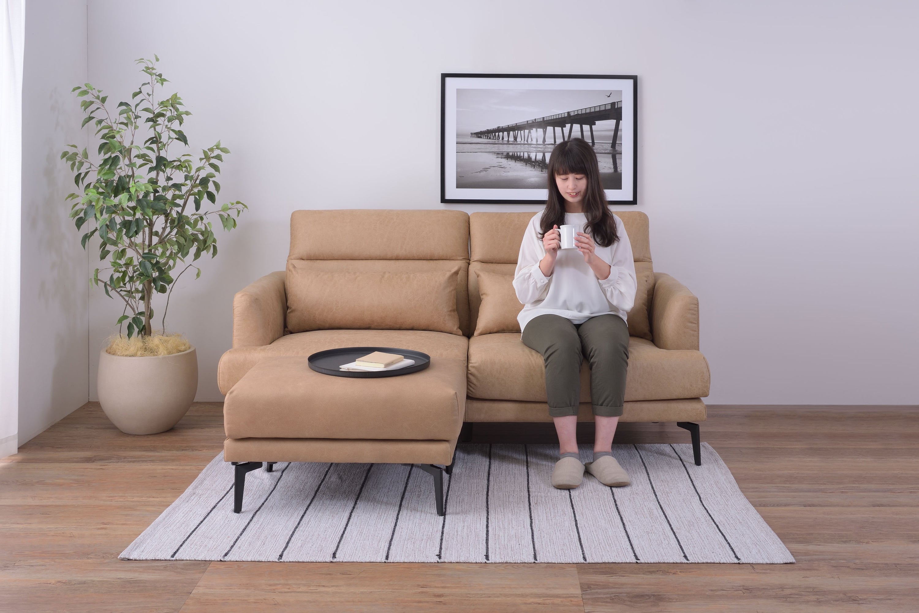 頭部のリクライニング機能で快適にくつろげるソファ「スレンド」 お部屋の中央に間切りとして置かれることが多いソファ。 スレンドは使用しないときに頭部を倒し、お部屋の圧迫感を軽減することができます。 ボリュームのあるソファを支えるのはスタイリッシュなスチール脚。 強度を保ちつつ、シャープな印象を与えます。 オットマンを合わせてコーディネートすれば、くつろぎの幅が広がります。