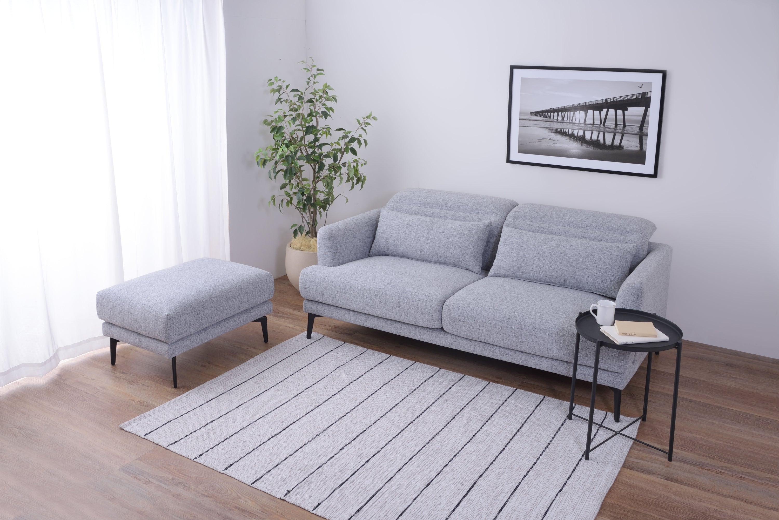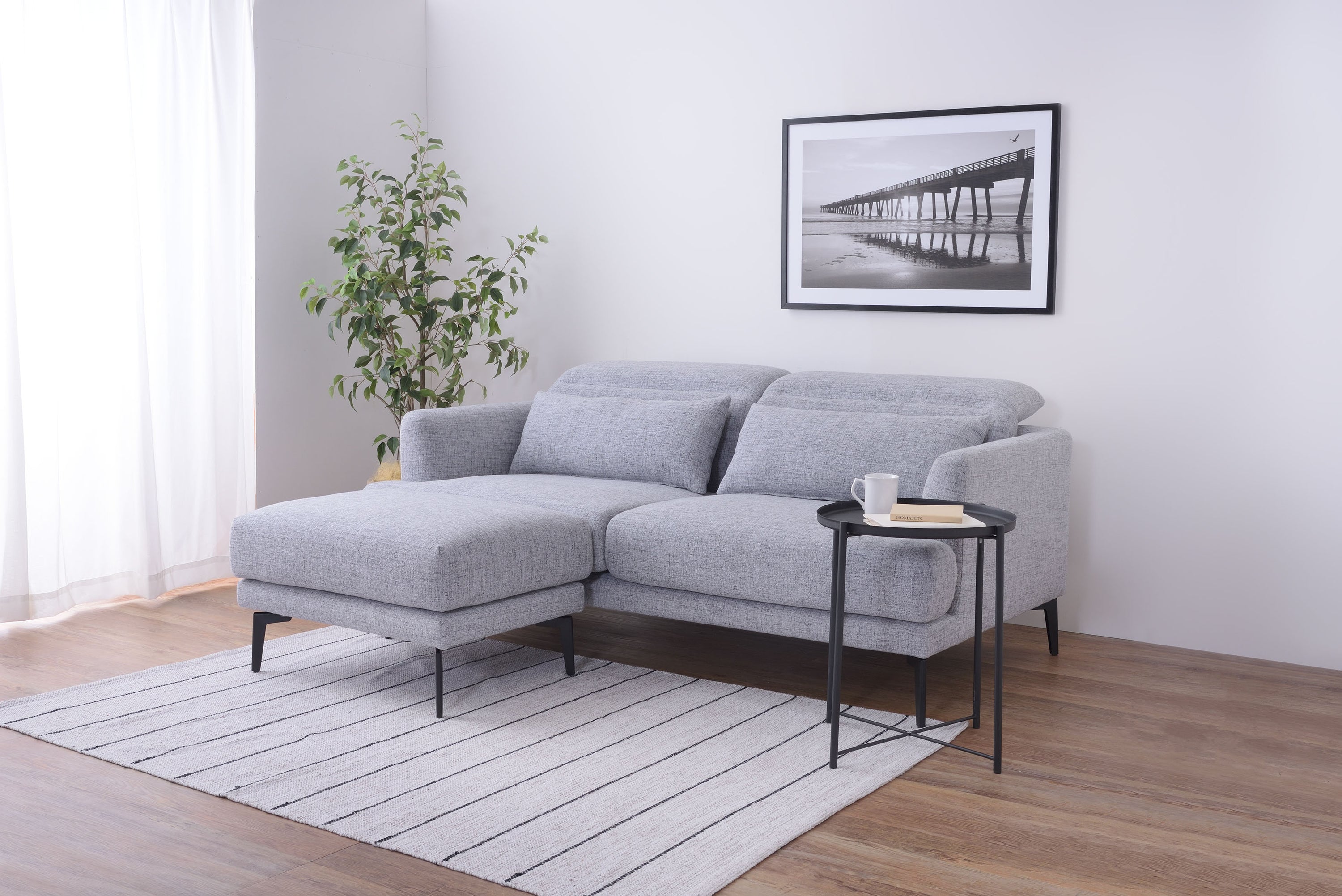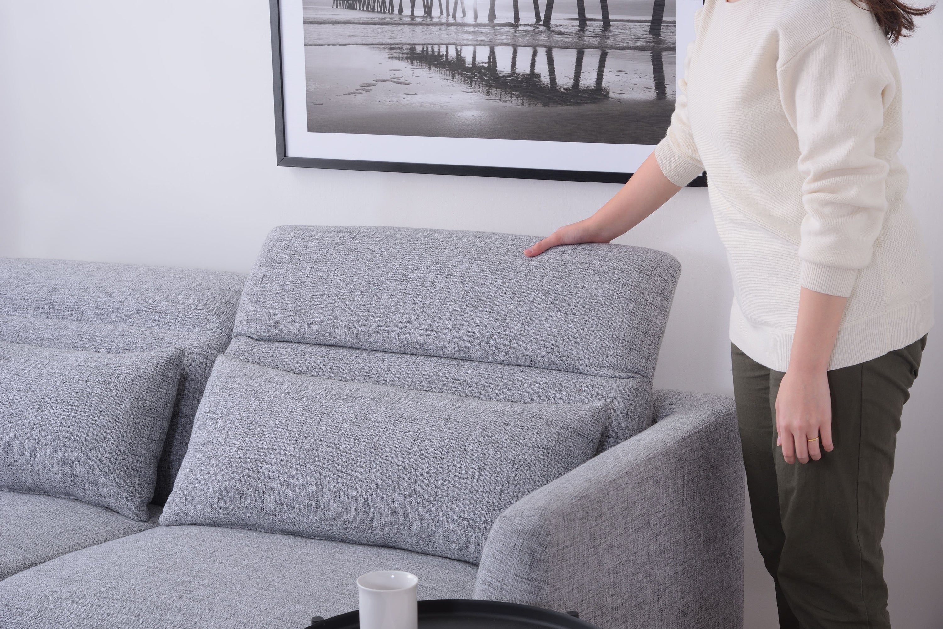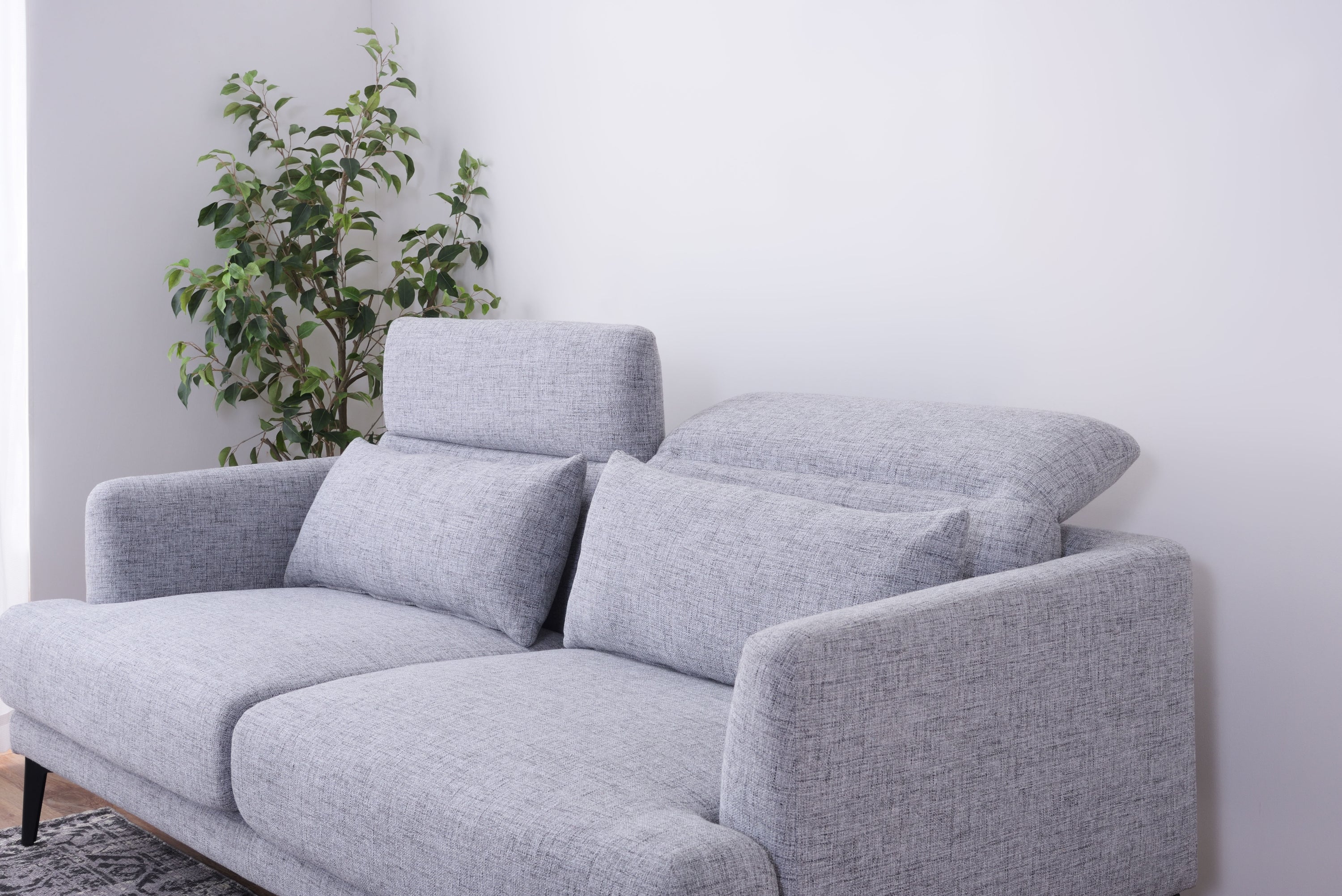 頭部のリクライニング機能で快適にくつろげるソファ「スレンド」 お部屋の中央に間切りとして置かれることが多いソファ。 スレンドは使用しないときに頭部を倒し、お部屋の圧迫感を軽減することができます。 ボリュームのあるソファを支えるのはスタイリッシュなスチール脚。 強度を保ちつつ、シャープな印象を与えます。 オットマンを合わせてコーディネートすれば、くつろぎの幅が広がります。