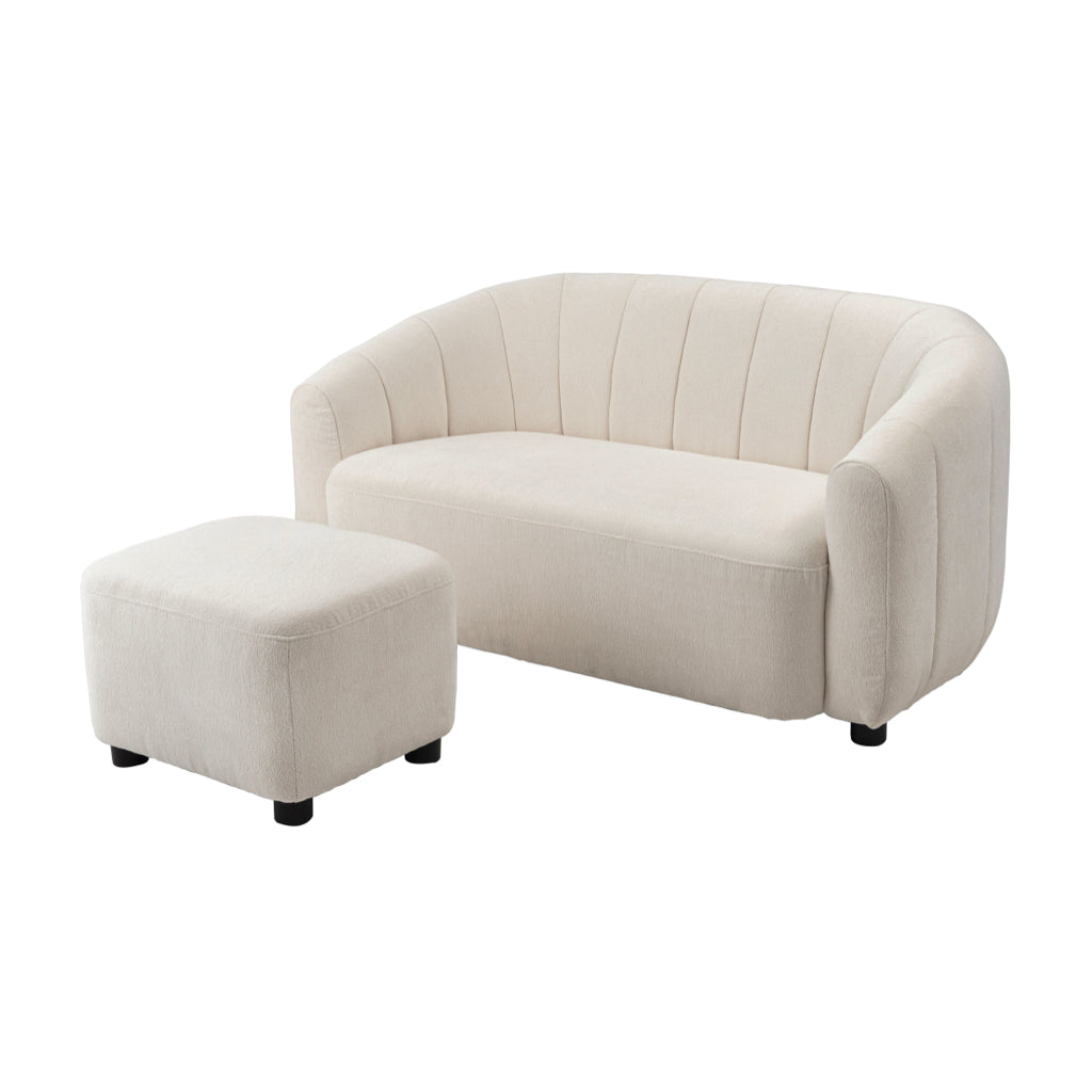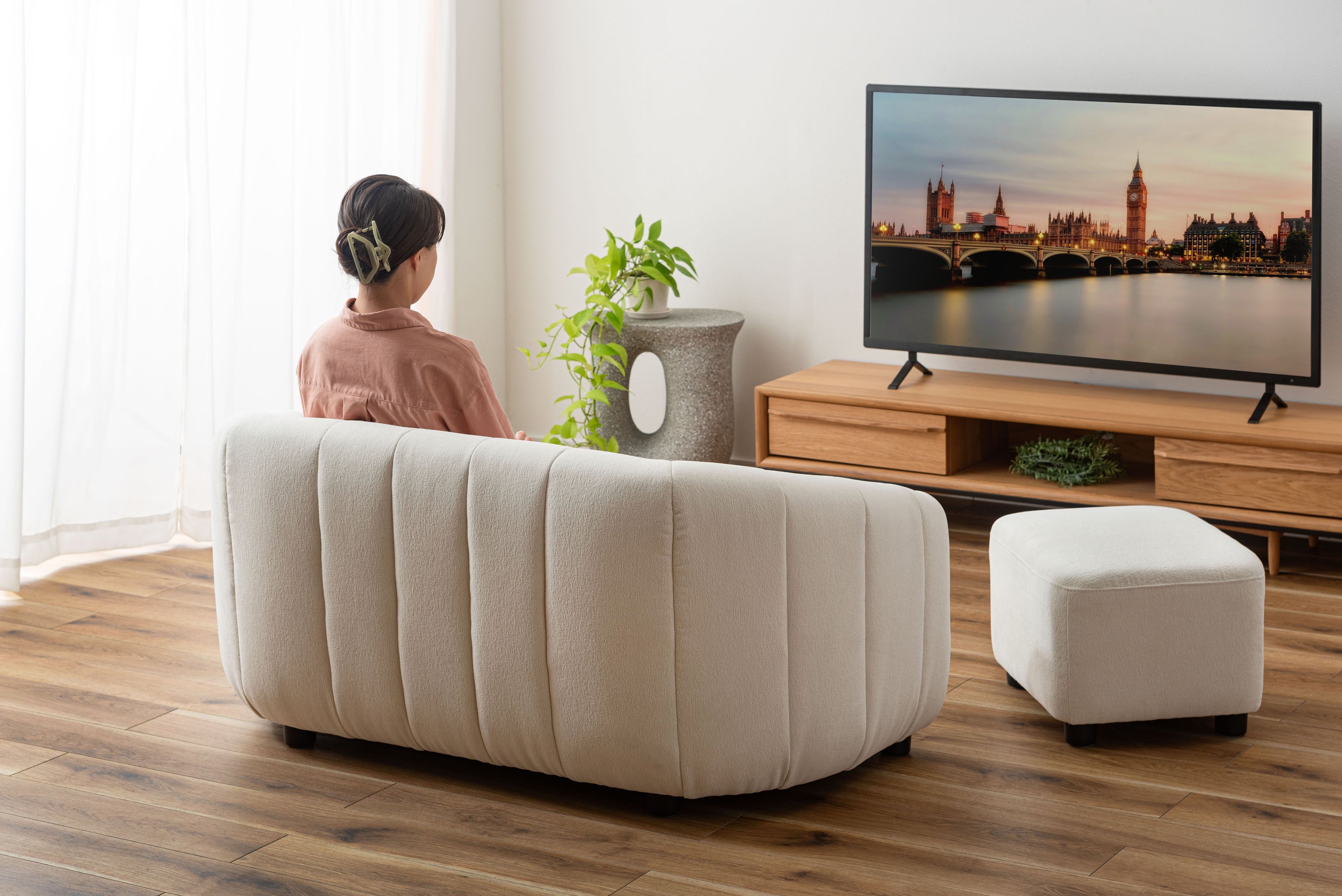 くつろぎ感を兼ね備えたコンパクトサイズ。丸みを帯びたフォルムが上品なソファ&オットマン。コンパクトなサイズで圧迫感を抑え、空間をすっきりと広く見せてくれます。ソファと同じ素材のオットマンは、スツールとしても活用でき、シーンに応じて使い分けができます。背もたれに施された縦ラインのステッチが、視線を引きつけるアクセントとなり、インテリアの主役として存在感を放ちます。