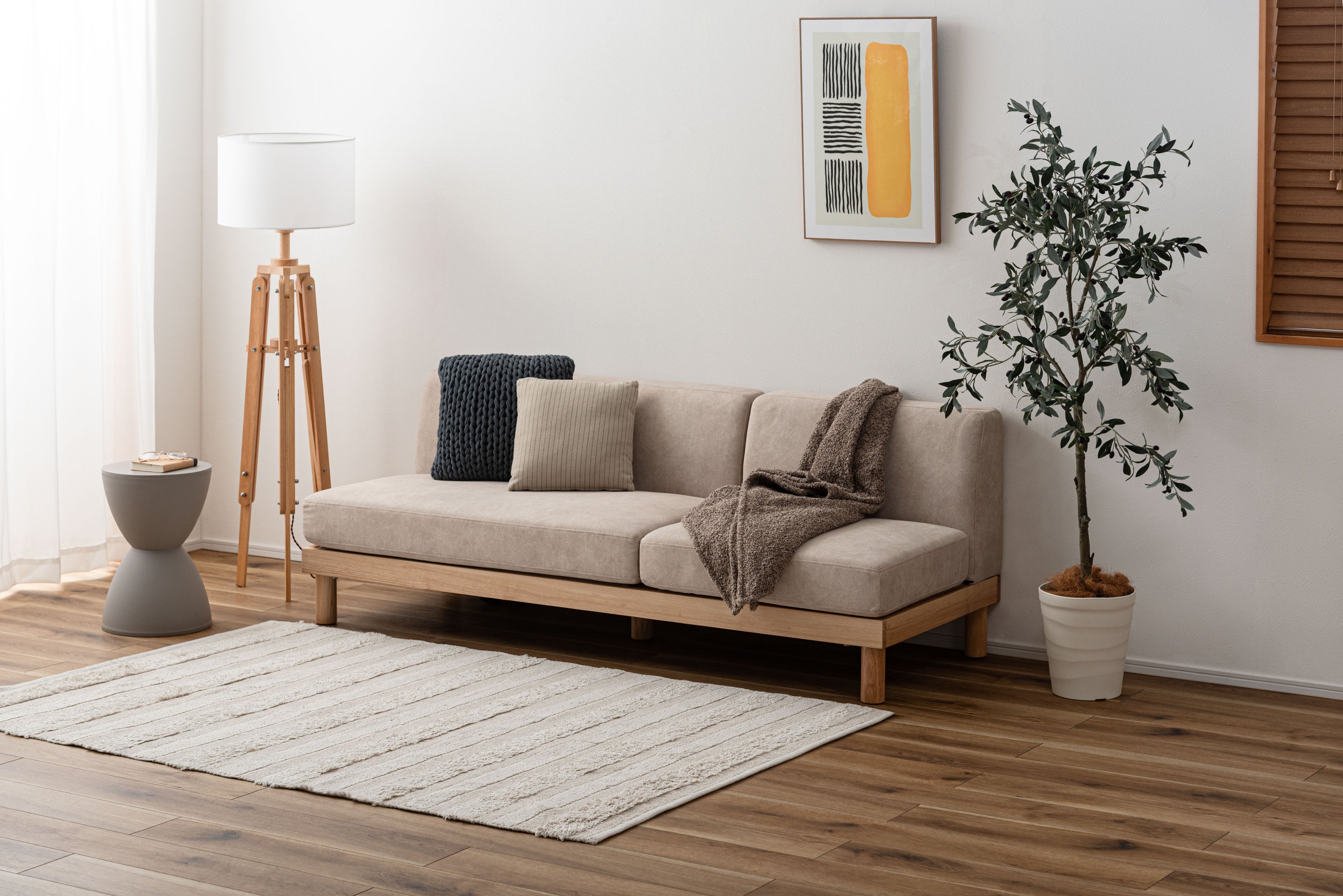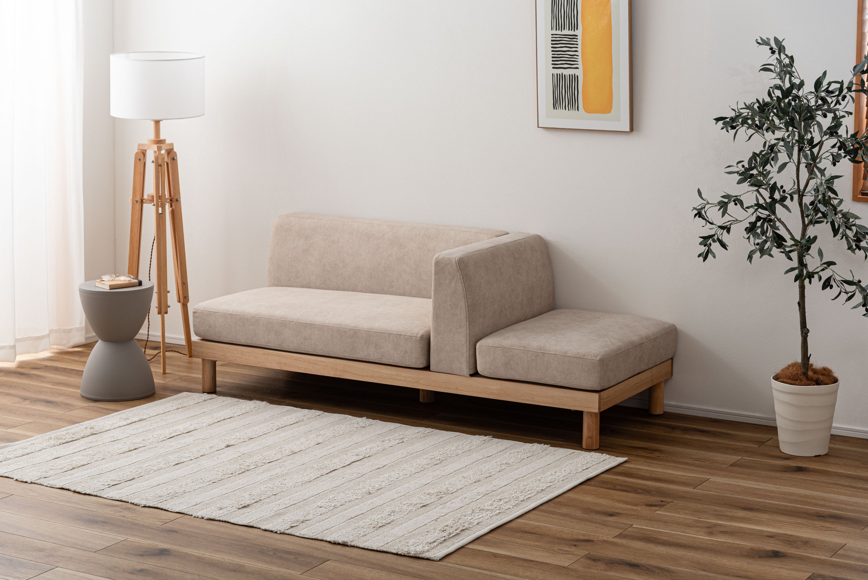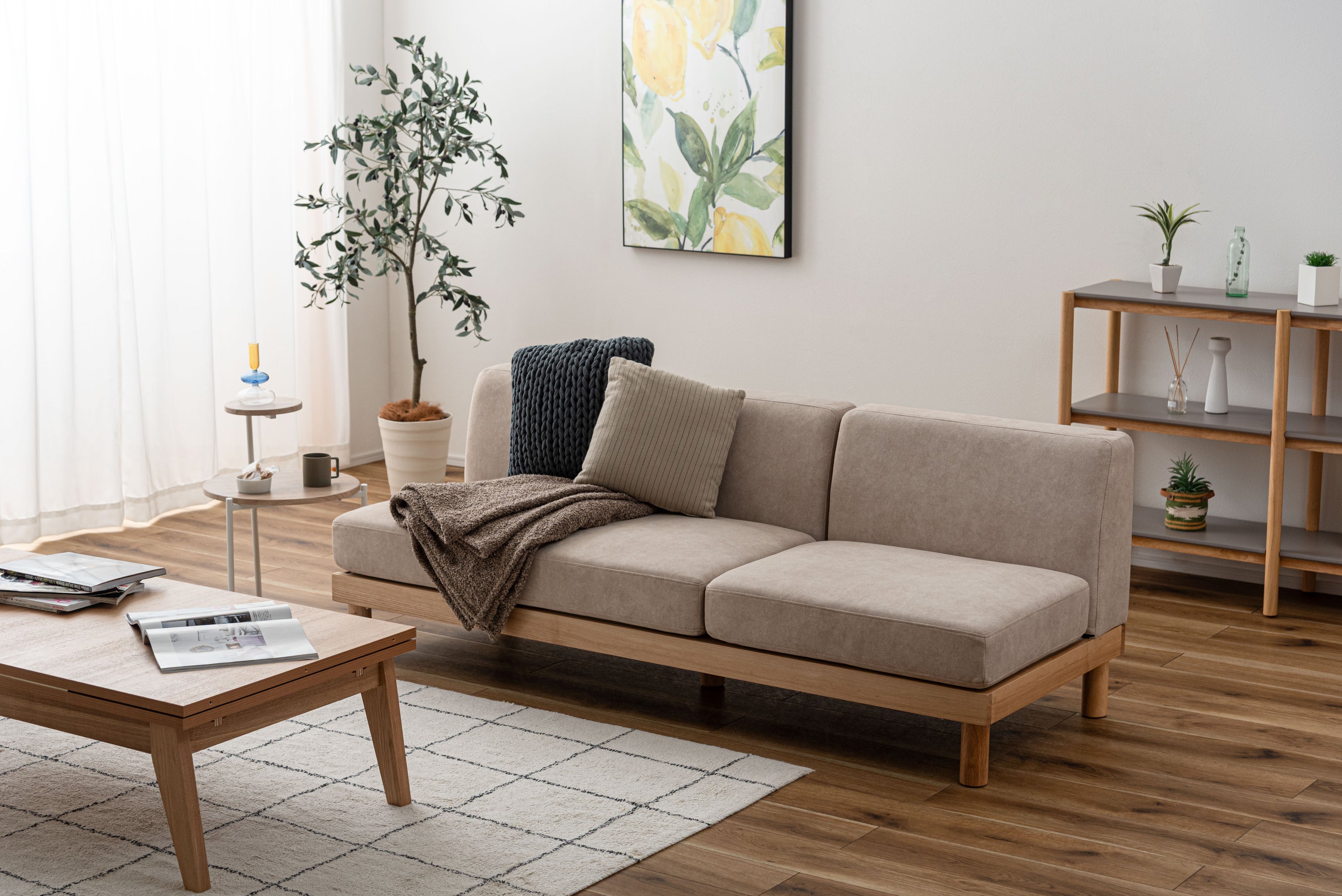 生活スタイルに合わせて変幻自在のモジュールソファ。暖かみのある天然木を使用した、ナチュラルで優しい風合いのソファ。本体を外し置き換えることが可能で様々なライフスタイルに合わせることができます。落ち着いた色味で肌ざわりの良い生地と天然木の組み合わせは、空間に優雅な印象を与えます。