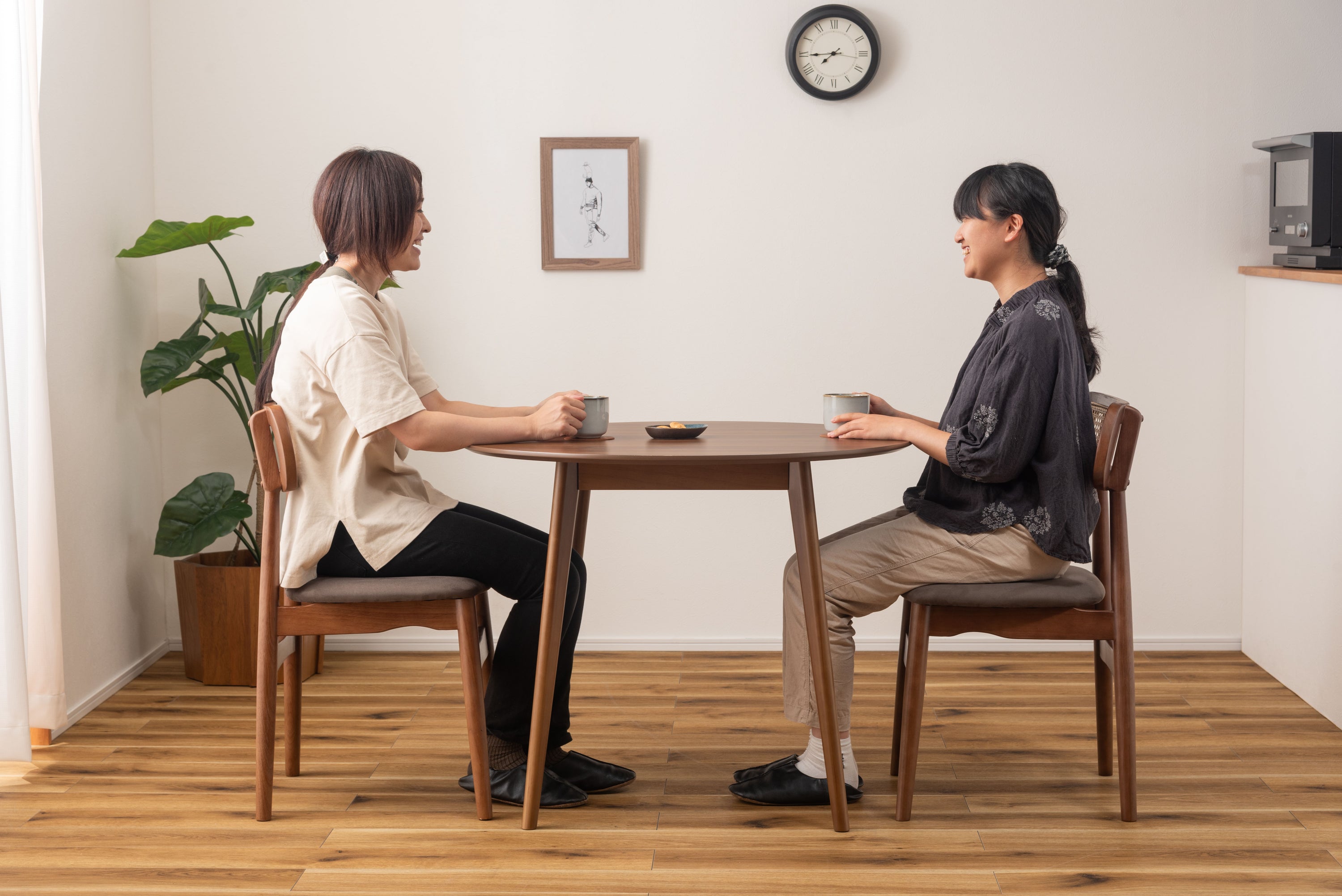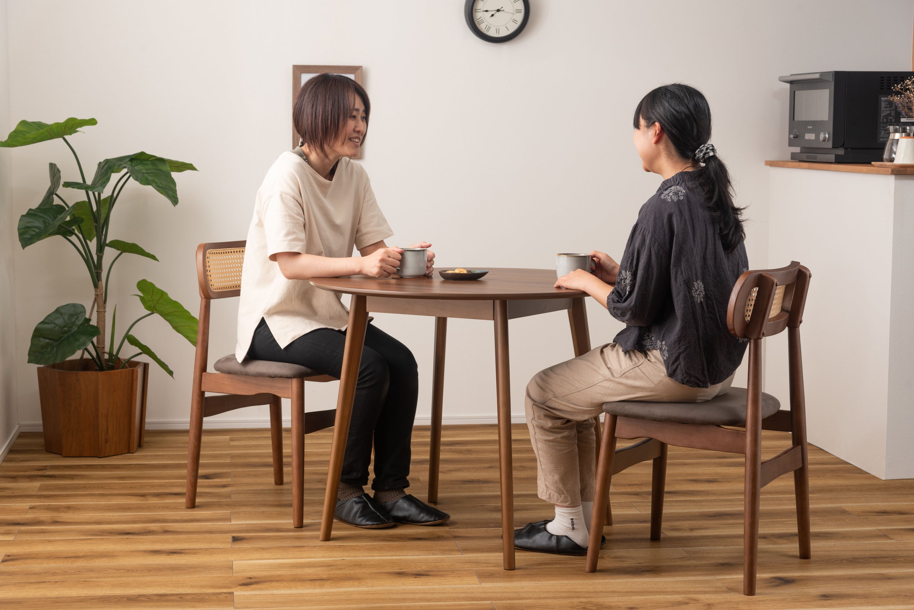 人気のコンパクトタイプのテーブルに新色が登場。 落ち着いたブラウンの色味はどんなチェアとも相性がよく、優しい木目がインテリアになじみやすくておすすめです。