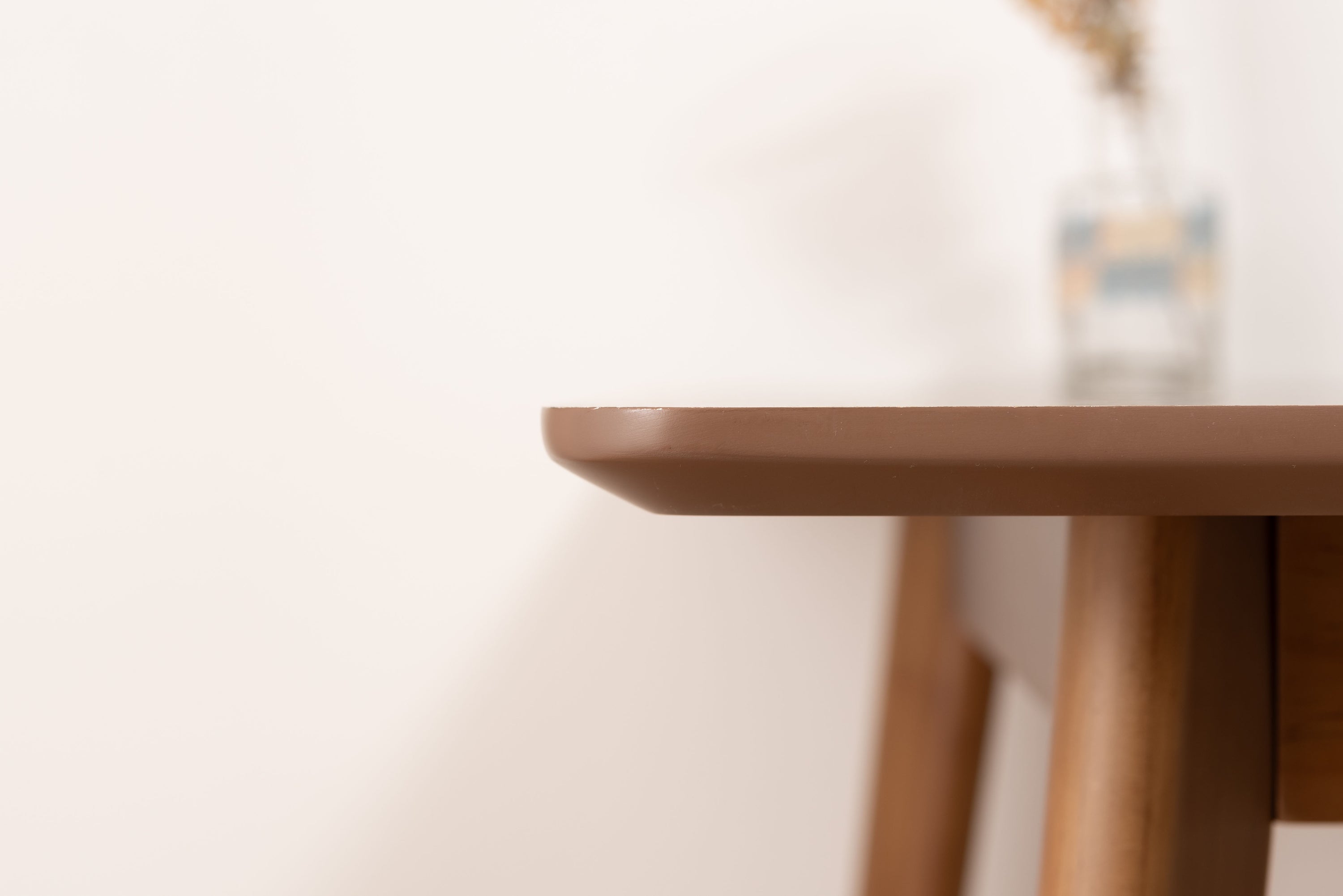 人気のコンパクトタイプのテーブルに新色が登場。 落ち着いたブラウンの色味はどんなチェアとも相性がよく、優しい木目がインテリアになじみやすくておすすめです。