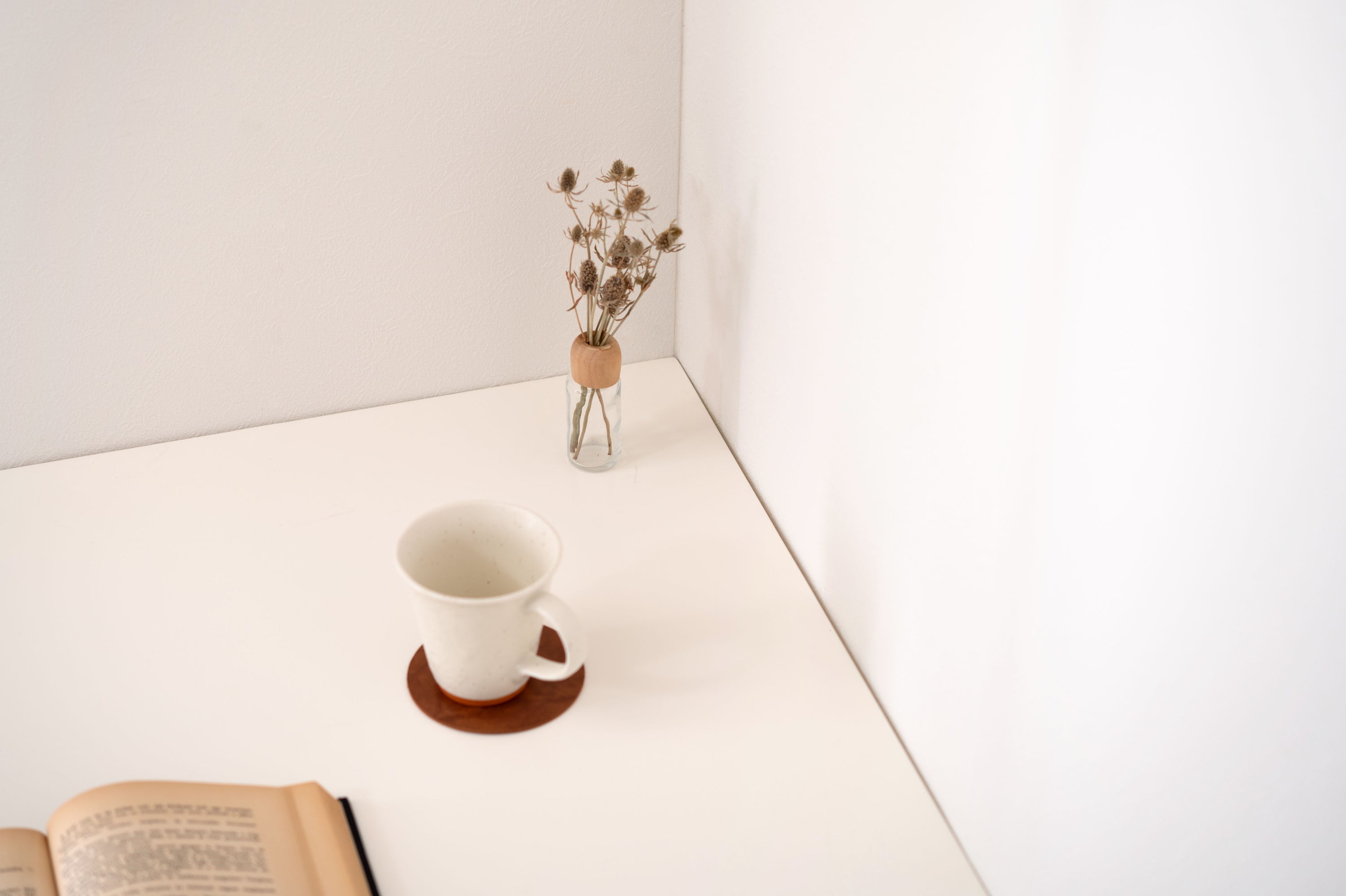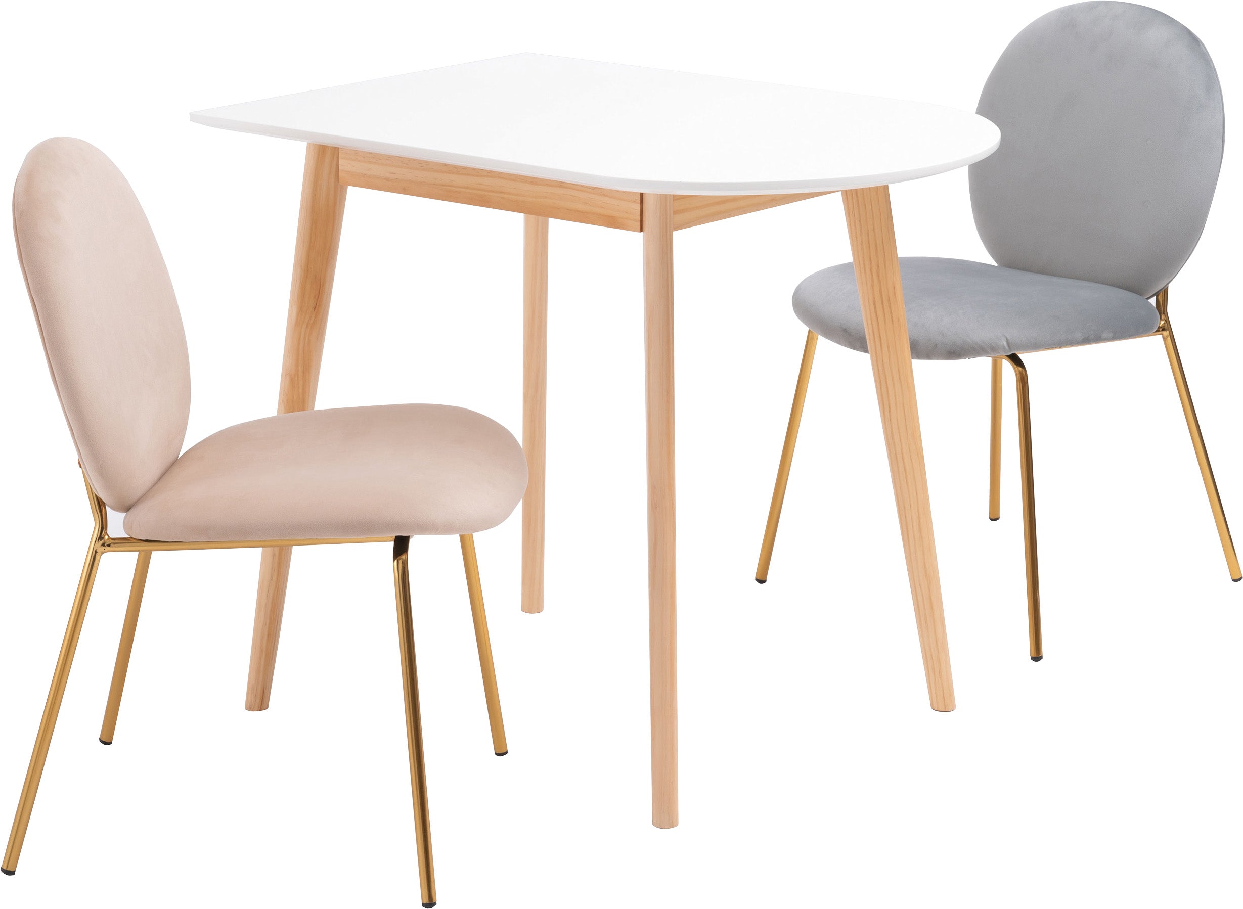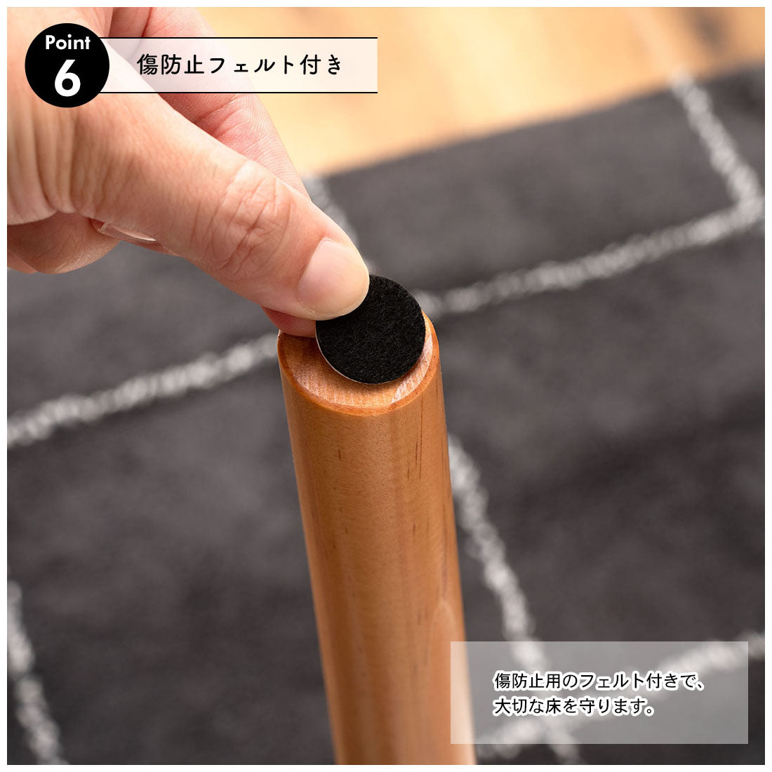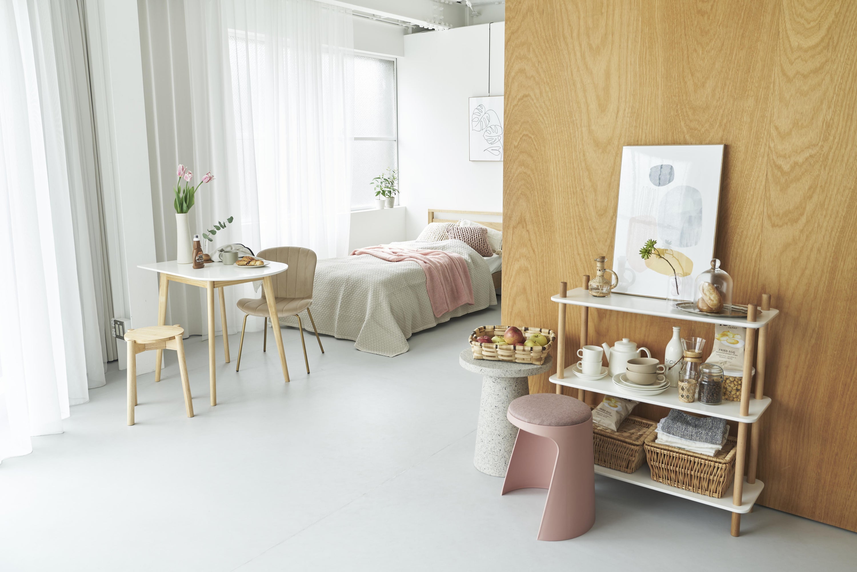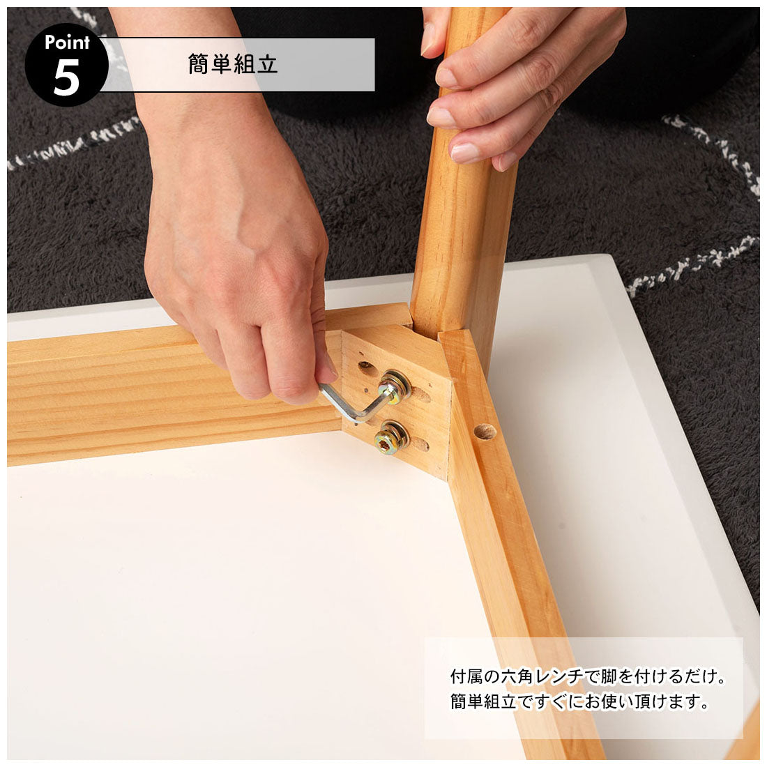 壁付けも出来る、ミニマルなデザインのダイニングテーブル。 壁面やお部屋の角にレイアウトする事が出来る為、限られたスペースを有効活用しながらお部屋を広く使えます。 一辺に曲線を取り入れたやさしいフォルムで、凹凸のない滑らかなホワイト天板と、天然木の脚の組み合わせが可愛らしさを演出してくれます。
