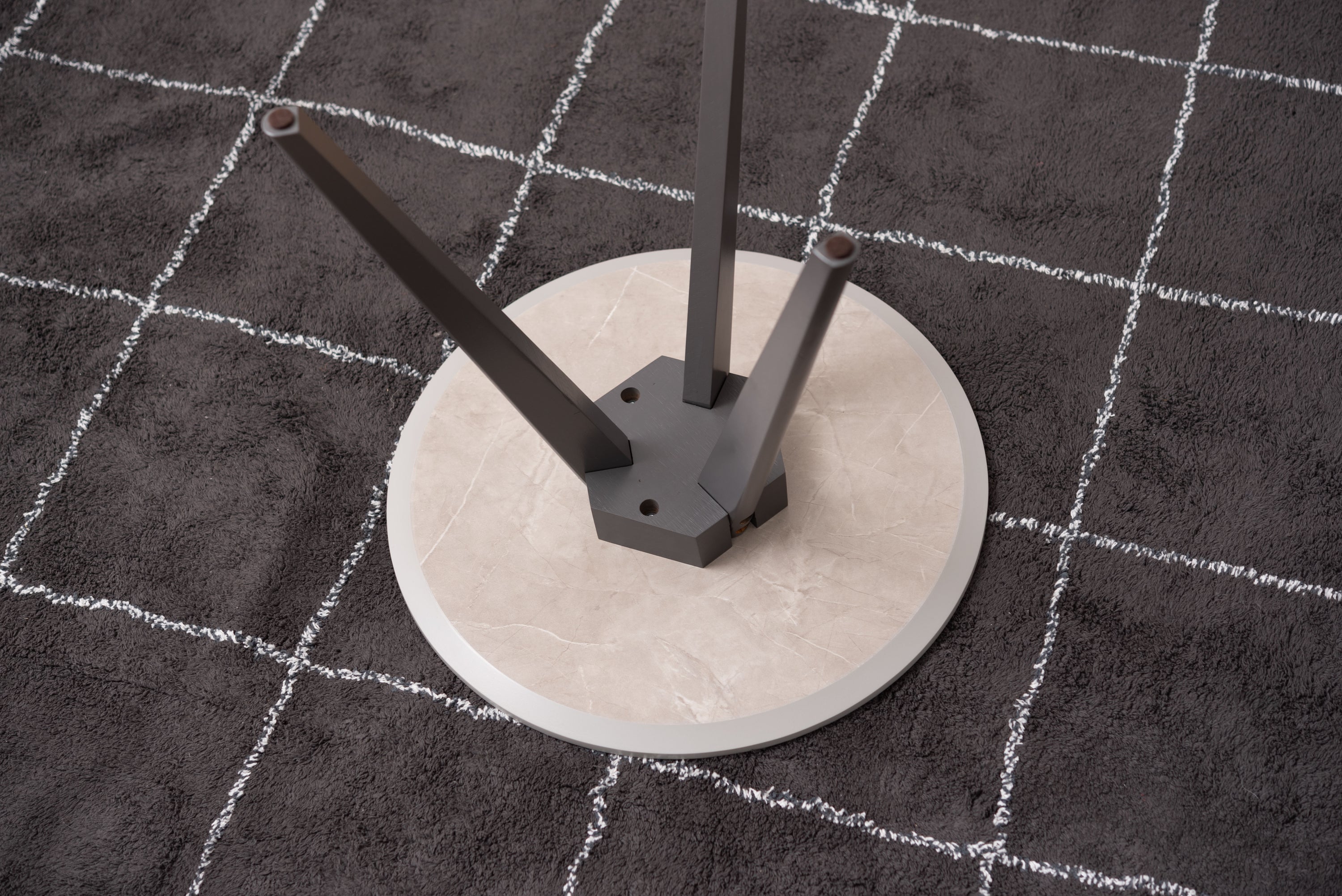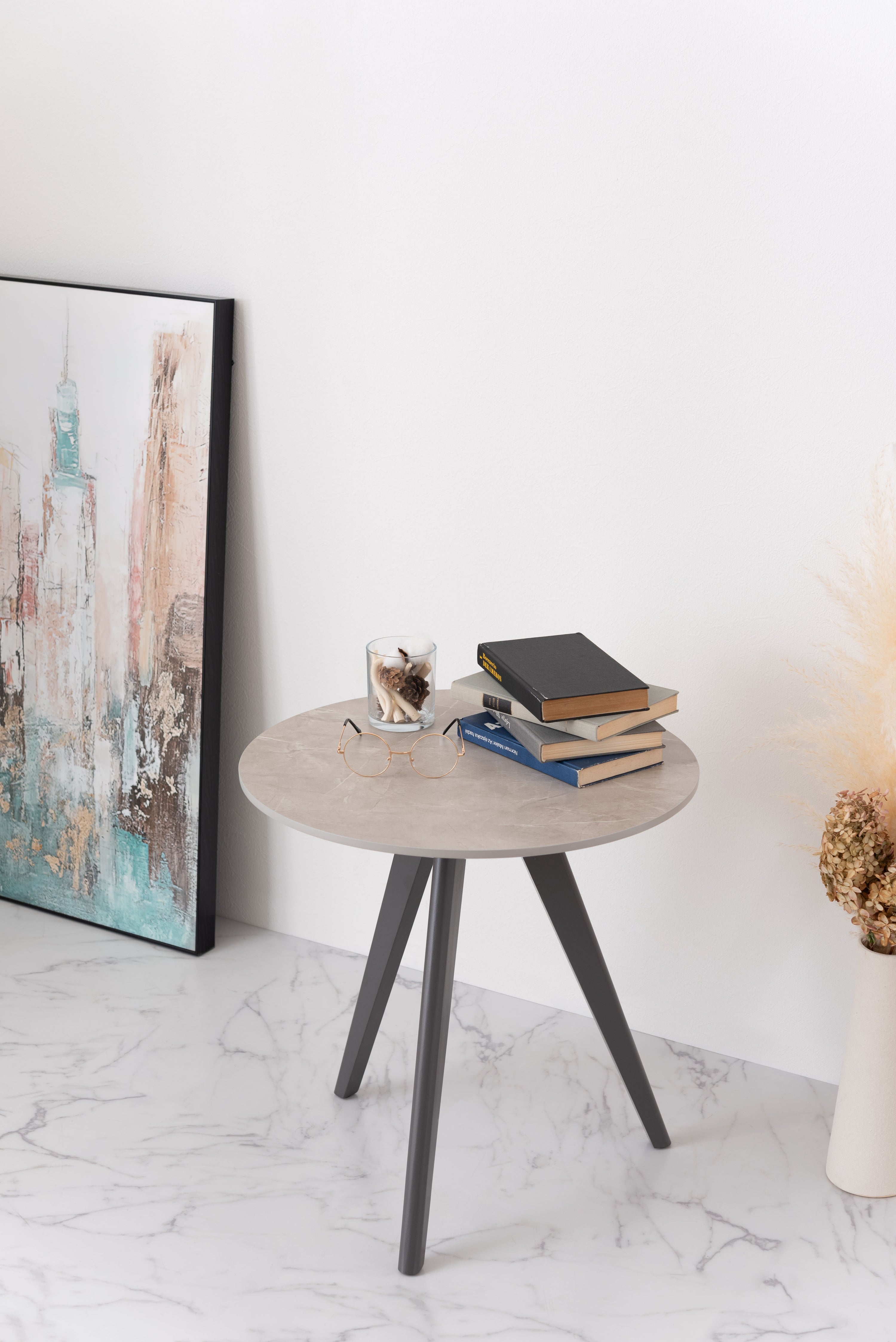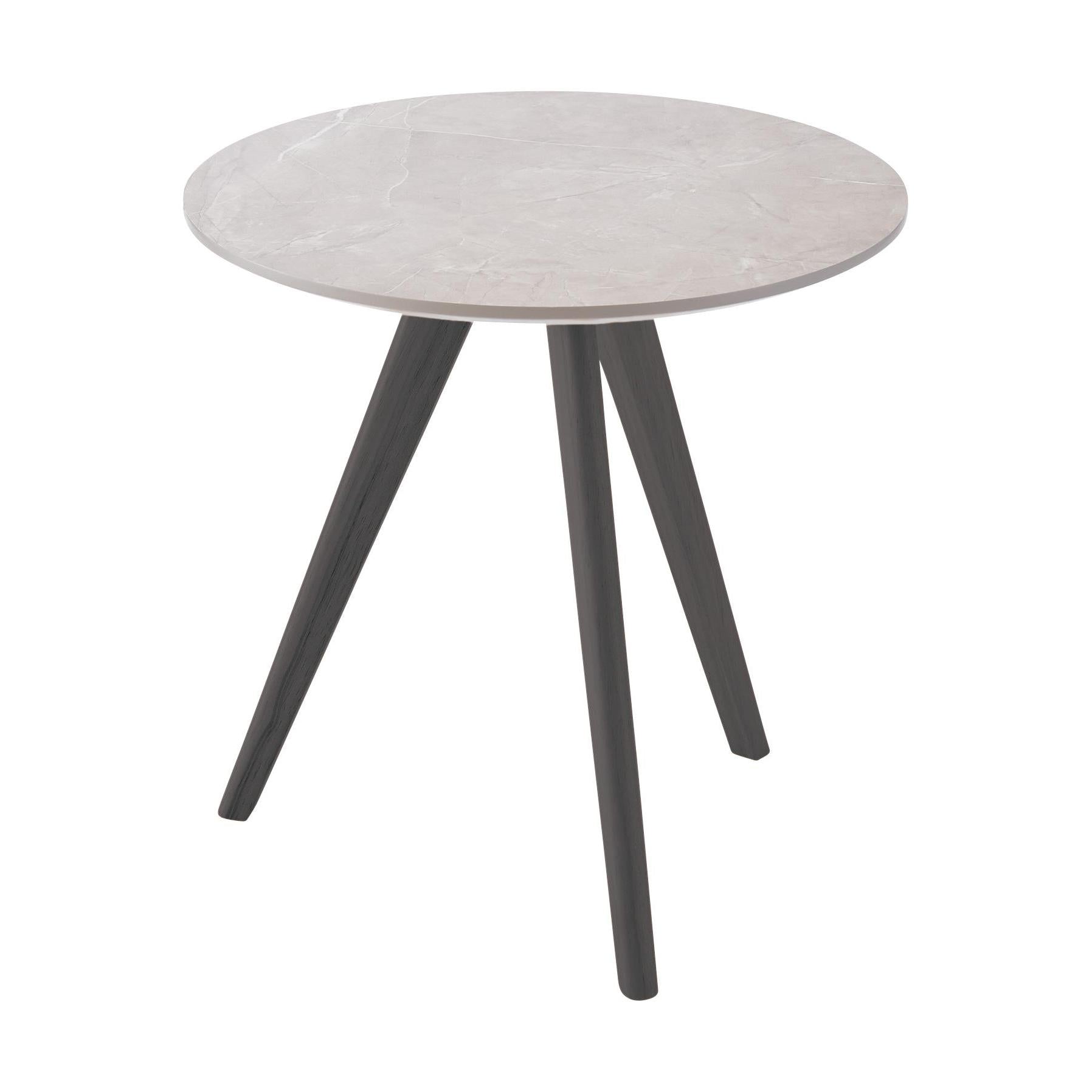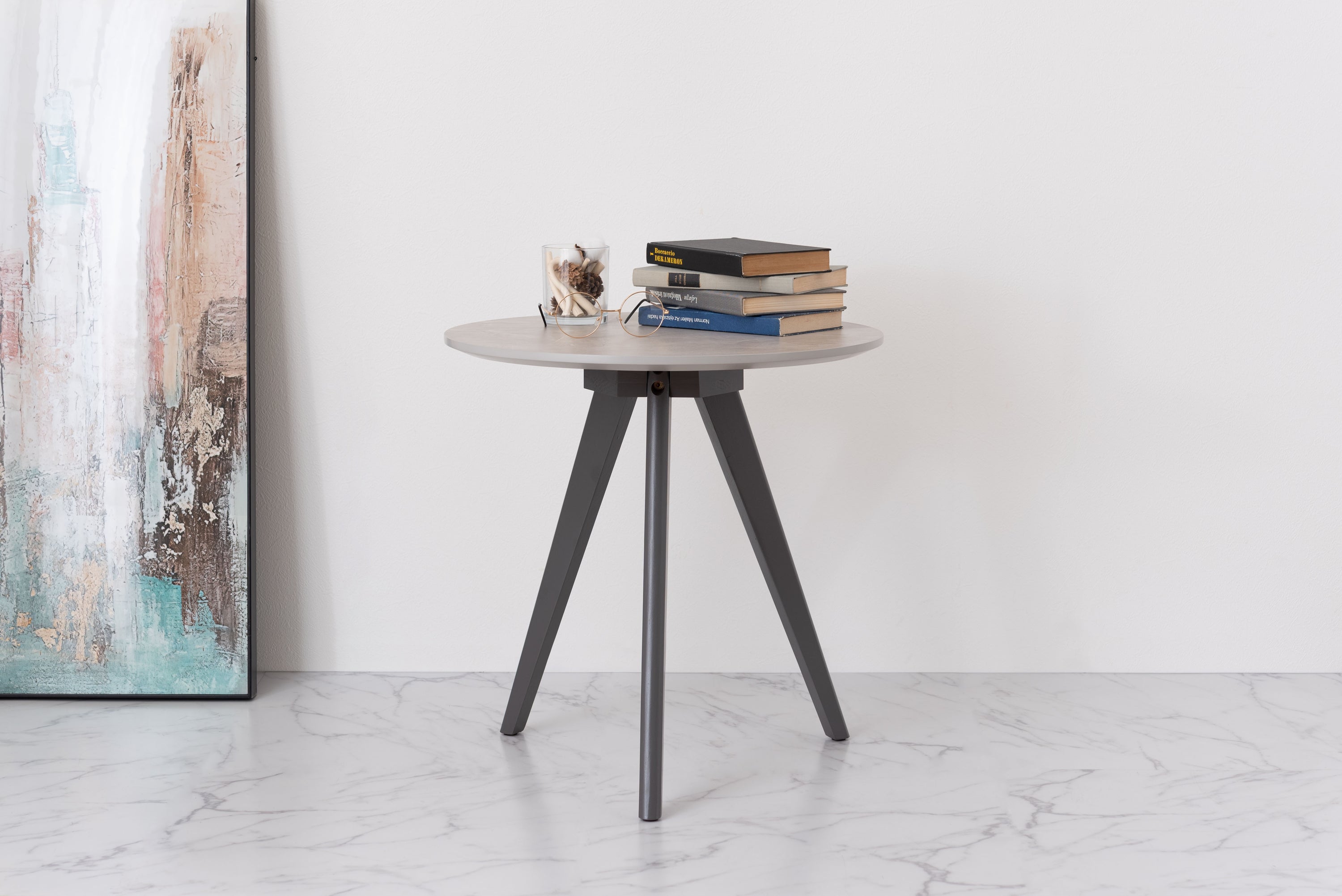 トレンドの大理石調デザインを施したサイドテーブル。ソファやベッド横のテーブルはもちろん、小物などのディスプレイ台としてもおすすめ。ソファ横に置けば、リラックスタイムのお供たちを手の届く範囲にセッティング出来ます。ベッド横に置けば、就寝前のちょっとしたのんびり時間が捗ります。天板は凹凸を抑えた大理石調のストーン柄。トレンド感満載で、人気の韓国インテリアにもぴったり。木目を活かした脚は、先が細いテーパードレッグ。グレー天板にはダークグレー色の脚、ホワイト天板にはナチュラル色の脚を採用。脚1本につきボルト2本を、付属六角レンチで留めるだけの簡単組立。脚先には保護フェルトが付いているので、床への傷の心配がありません。