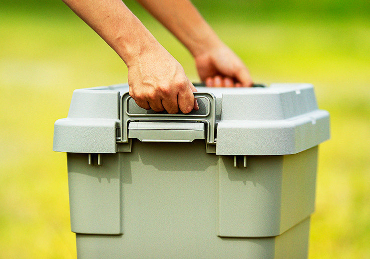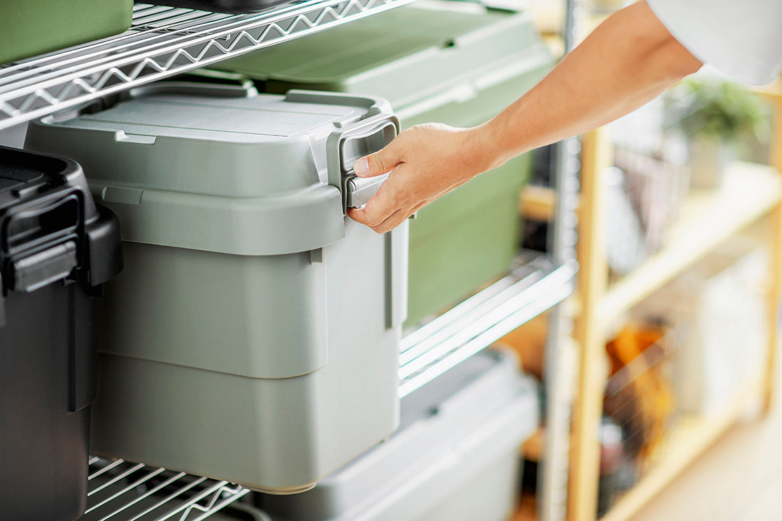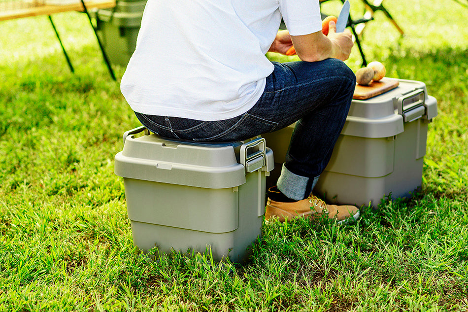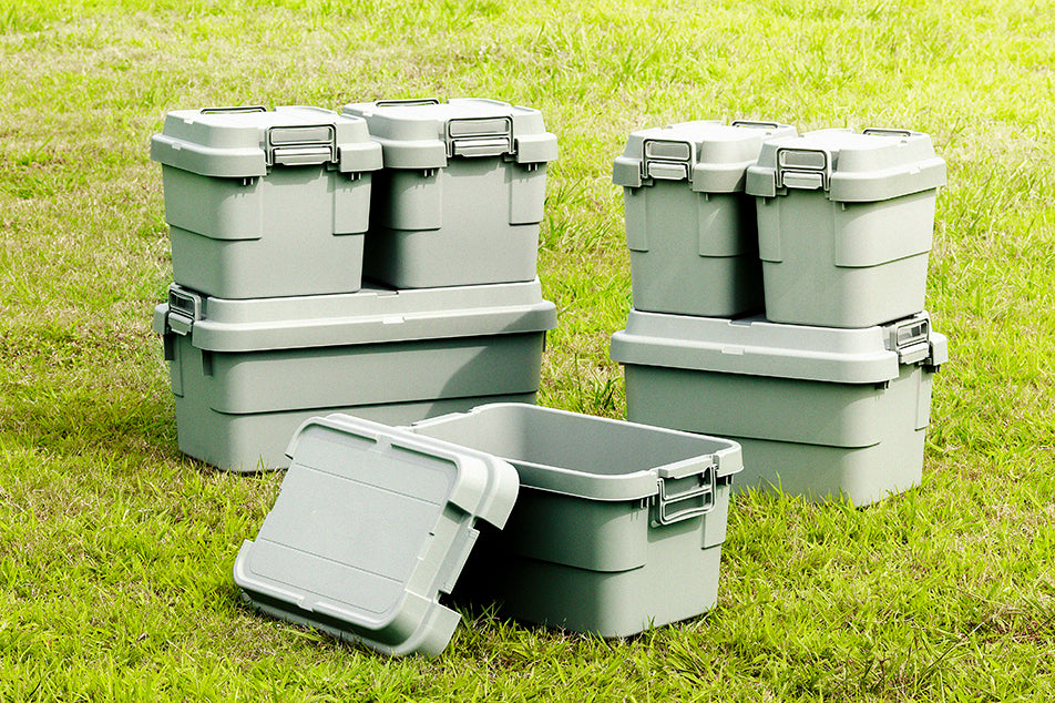 外使いでの使用感をアップデートトランクカーゴに新タイプが登場。 トレー型でフラット形状のフタがテーブルとしても使え、積み重ねたときのずれも防止できる仕様となっております。 また、フタにベルトガイドの溝を付けたことにより車のルーフキャリーなどに装着し固定できるようになります。