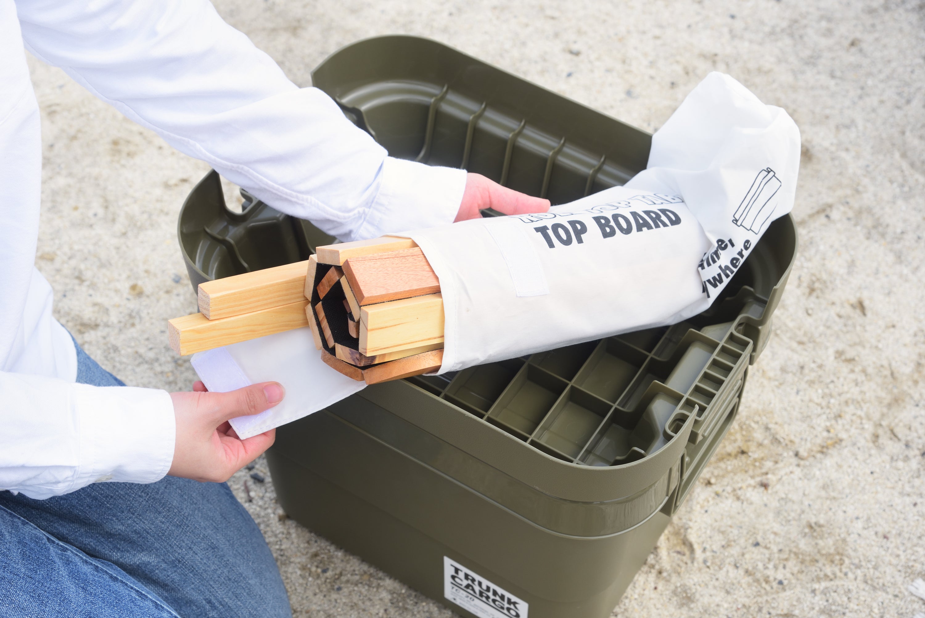 天板をトランクカーゴにセットして、テーブルに早変わり。ロール式で非常にコンパクトになるので、トランクカーゴに入れ持ち運びができアウトドアに最適です。