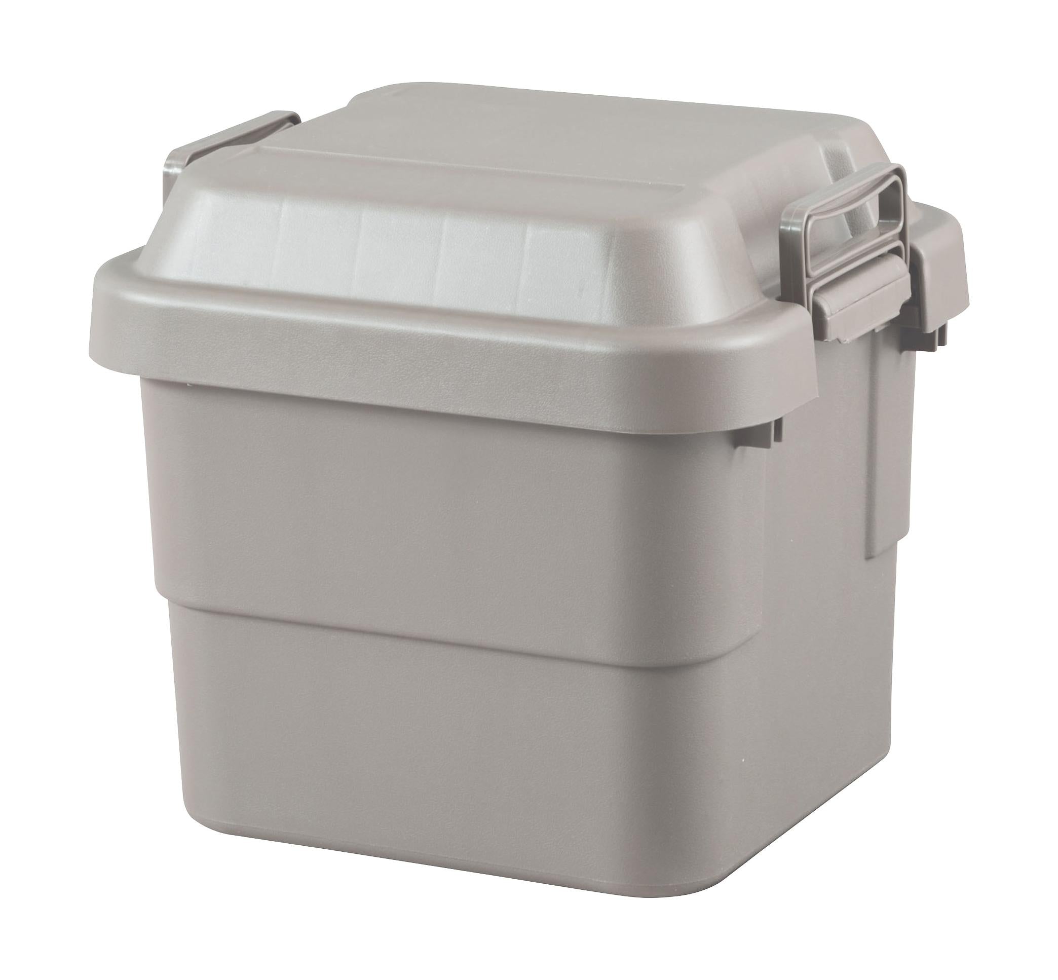 フタの裏は格子状のリブを立てた特殊構造。耐荷重は100kg。丈夫なので、工具入れとしても使用できます。・座ることができるので椅子としても使用できます。ロック機能付きの取手は握りやすく、持ち運びもラクラク。シンプルなデザインなので、玄関先やベランダにも置きやすい。キズや汚れが目立たない、マットな仕上り。