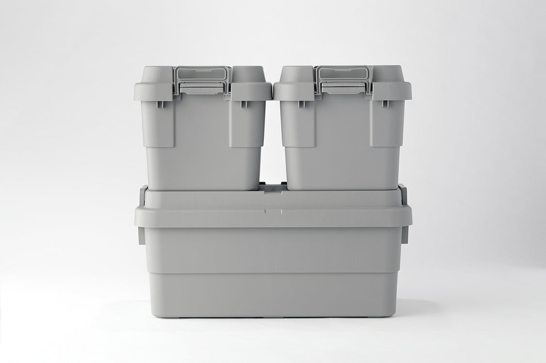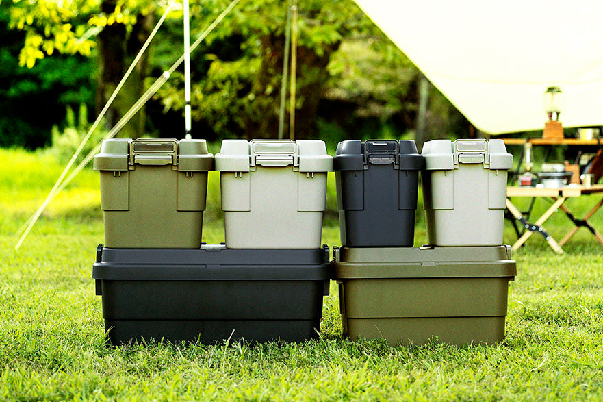 外使いでの使用感をアップデートトランクカーゴに新タイプが登場。 トレー型でフラット形状のフタがテーブルとしても使え、積み重ねたときのずれも防止できる仕様となっております。 また、フタにベルトガイドの溝を付けたことにより車のルーフキャリーなどに装着し固定できるようになります。