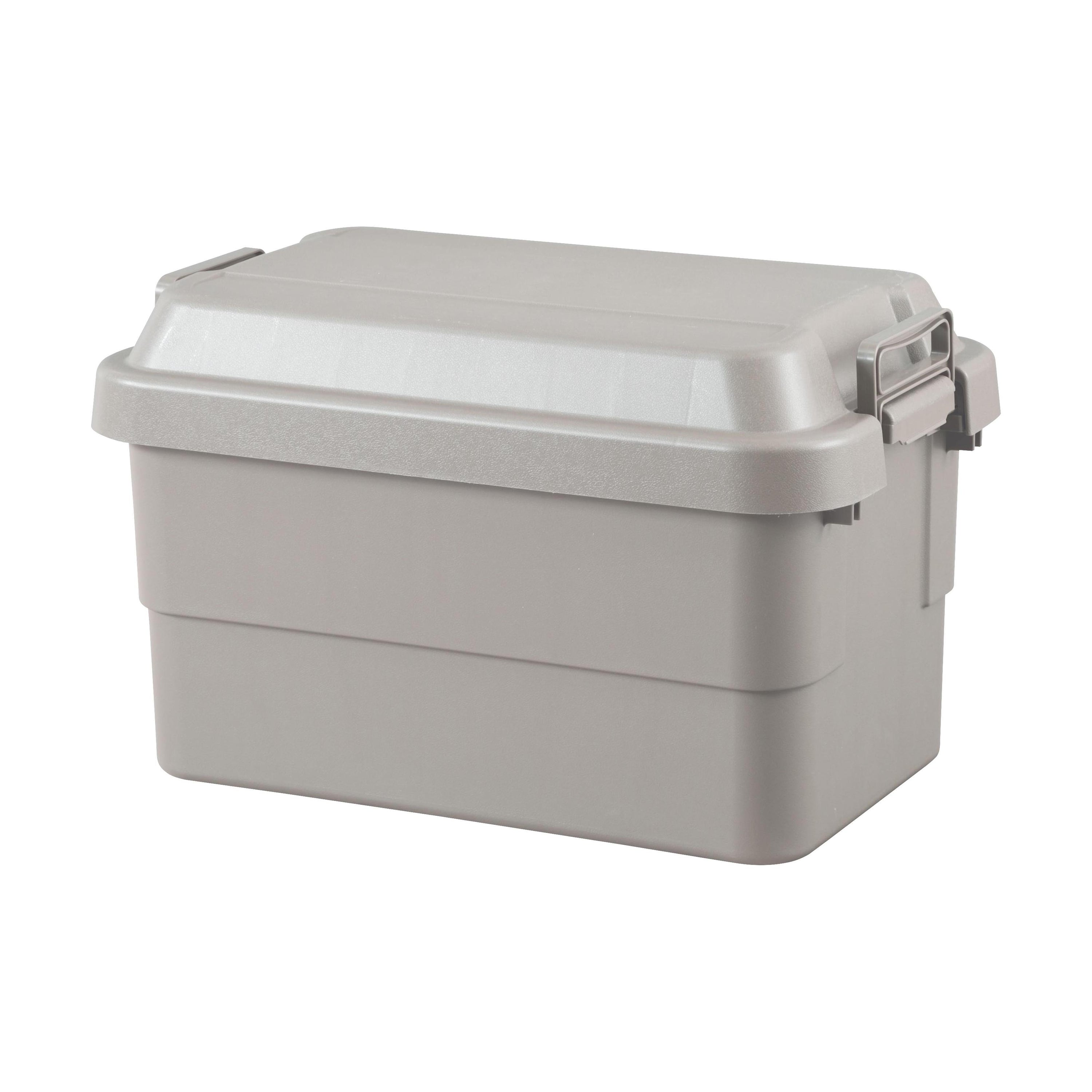 フタの裏は格子状のリブを立てた特殊構造。耐荷重は100kg。丈夫なので、工具入れとしても使用できます。座ることができるので椅子としても使用できます。ロック機能付きの取手は握りやすく、持ち運びもラクラク。シンプルなデザインなので、玄関先やベランダにも置きやすい。キズや汚れが目立たない、マットな仕上り。