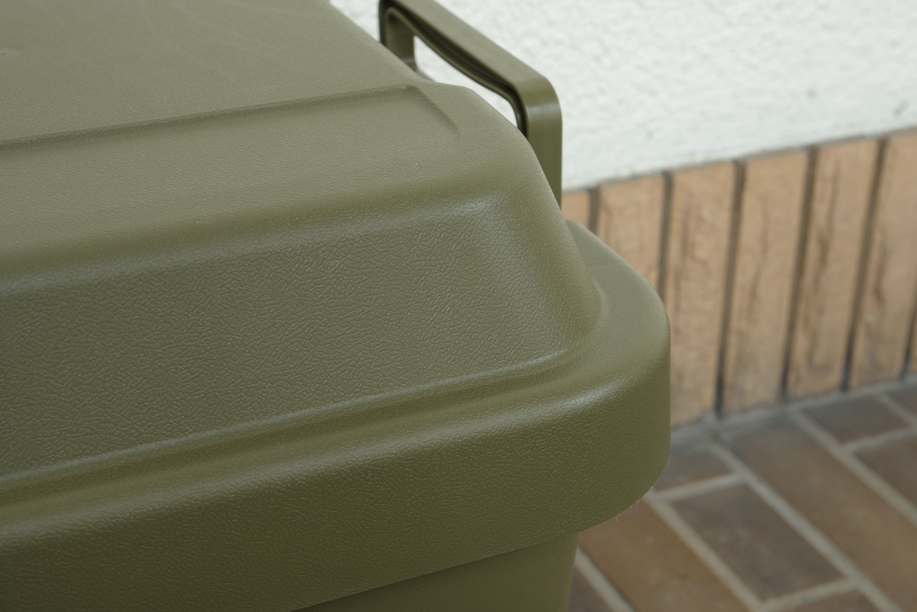 フタの裏は格子状のリブを立てた特殊構造。耐荷重は100kg。丈夫なので、工具入れとしても使用できます。・座ることができるので椅子としても使用できます。ロック機能付きの取手は握りやすく、持ち運びもラクラク。シンプルなデザインなので、玄関先やベランダにも置きやすい。キズや汚れが目立たない、マットな仕上り。