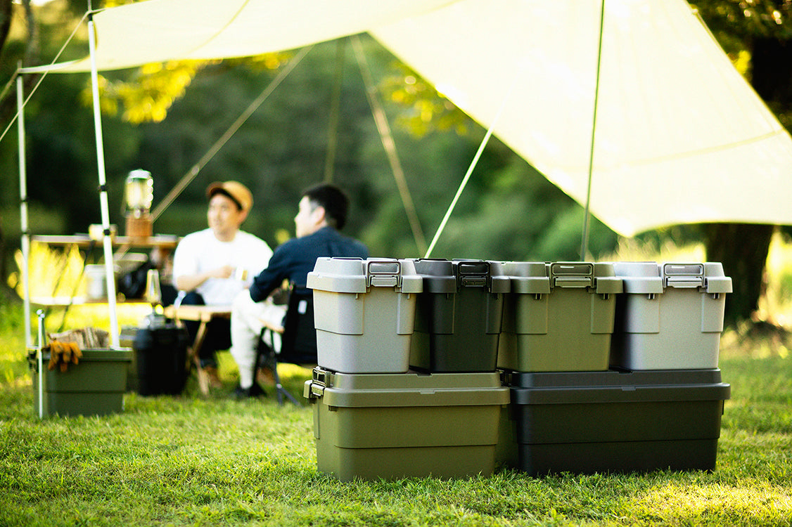 外使いでの使用感をアップデートトランクカーゴに新タイプが登場。 トレー型でフラット形状のフタがテーブルとしても使え、積み重ねたときのずれも防止できる仕様となっております。 また、フタにベルトガイドの溝を付けたことにより車のルーフキャリーなどに装着し固定できるようになります。
