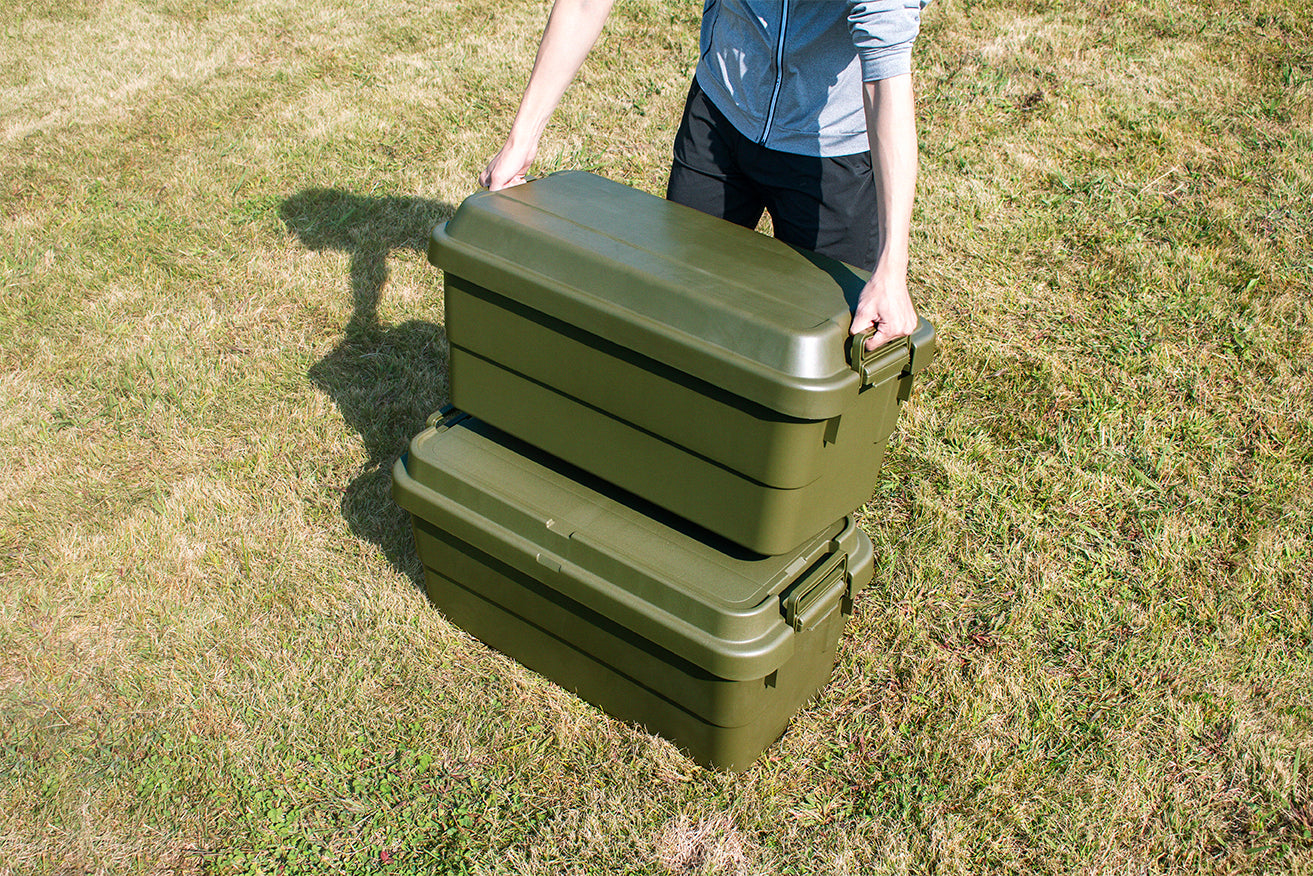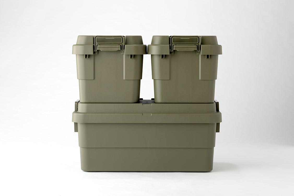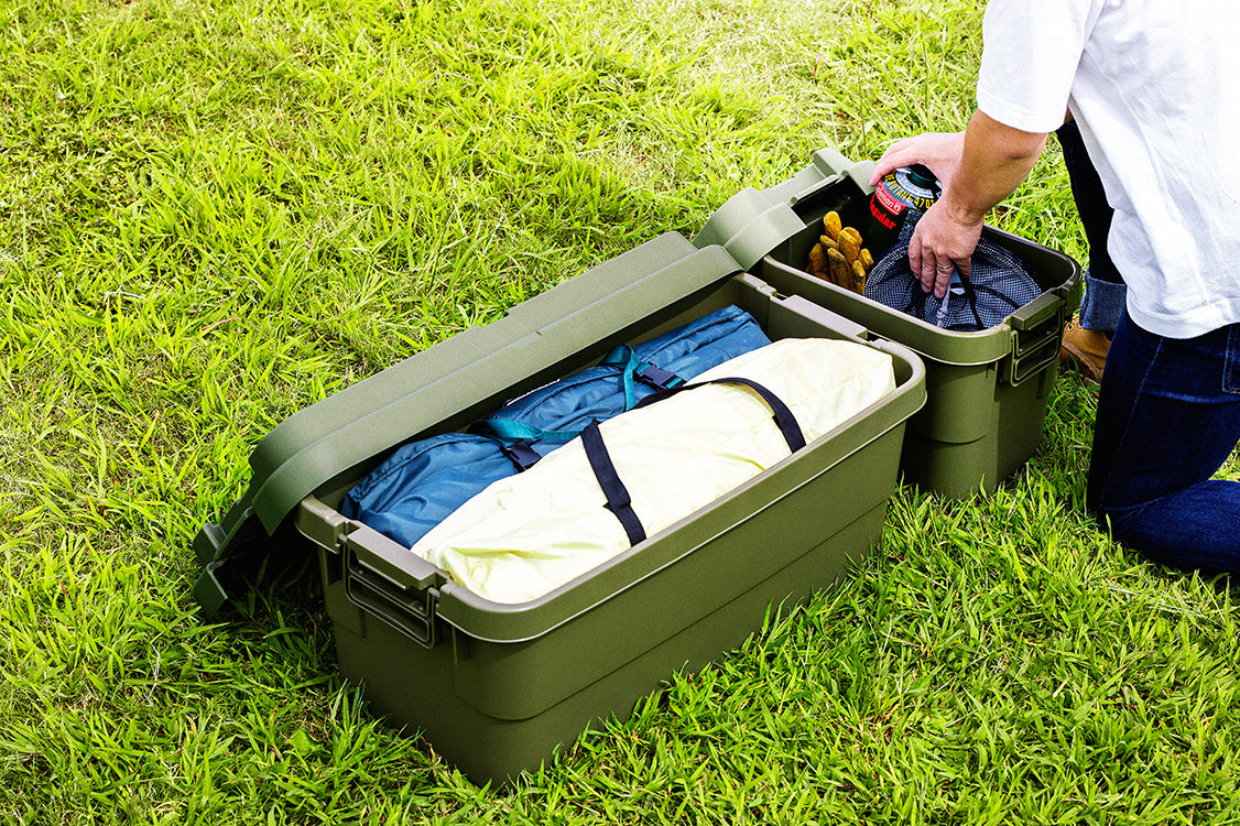 外使いでの使用感をアップデートトランクカーゴに新タイプが登場。 トレー型でフラット形状のフタがテーブルとしても使え、積み重ねたときのずれも防止できる仕様となっております。 また、フタにベルトガイドの溝を付けたことにより車のルーフキャリーなどに装着し固定できるようになります。