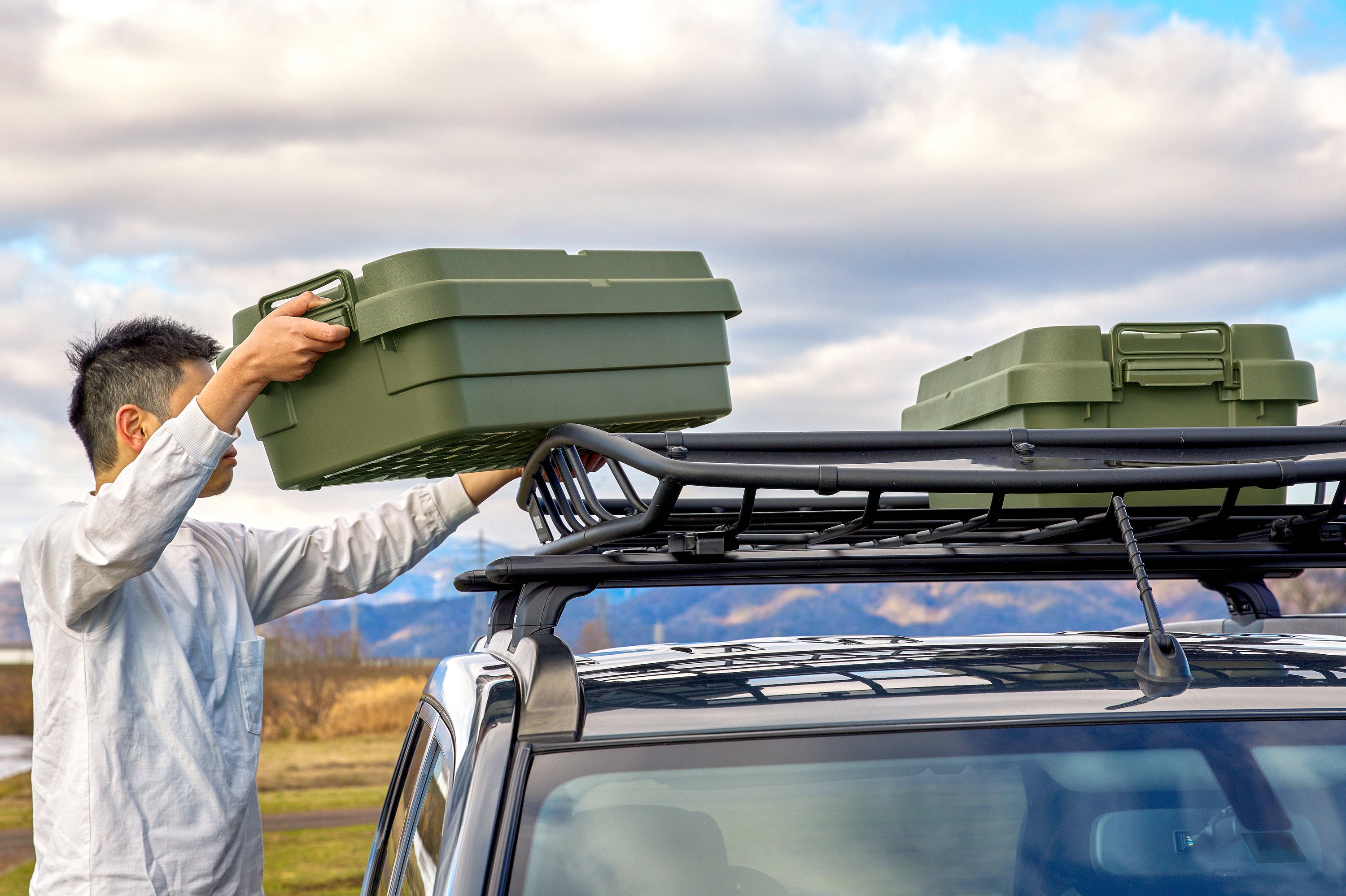 トランクカーゴに新サイズが登場。 収納しやすく取り出しやすい浅型タイプでさらに容器内で荷物を整理できる仕切板(別販売)を使ってより便利になっております。 トレー型でフラット形状のフタがテーブルとしても使え、積み重ねたときのズレも防止できる仕様となっております。 また、フタにベルトガイドの溝を付けたことにより車のルーフキャリーなどに装着し固定できるようになっております。
