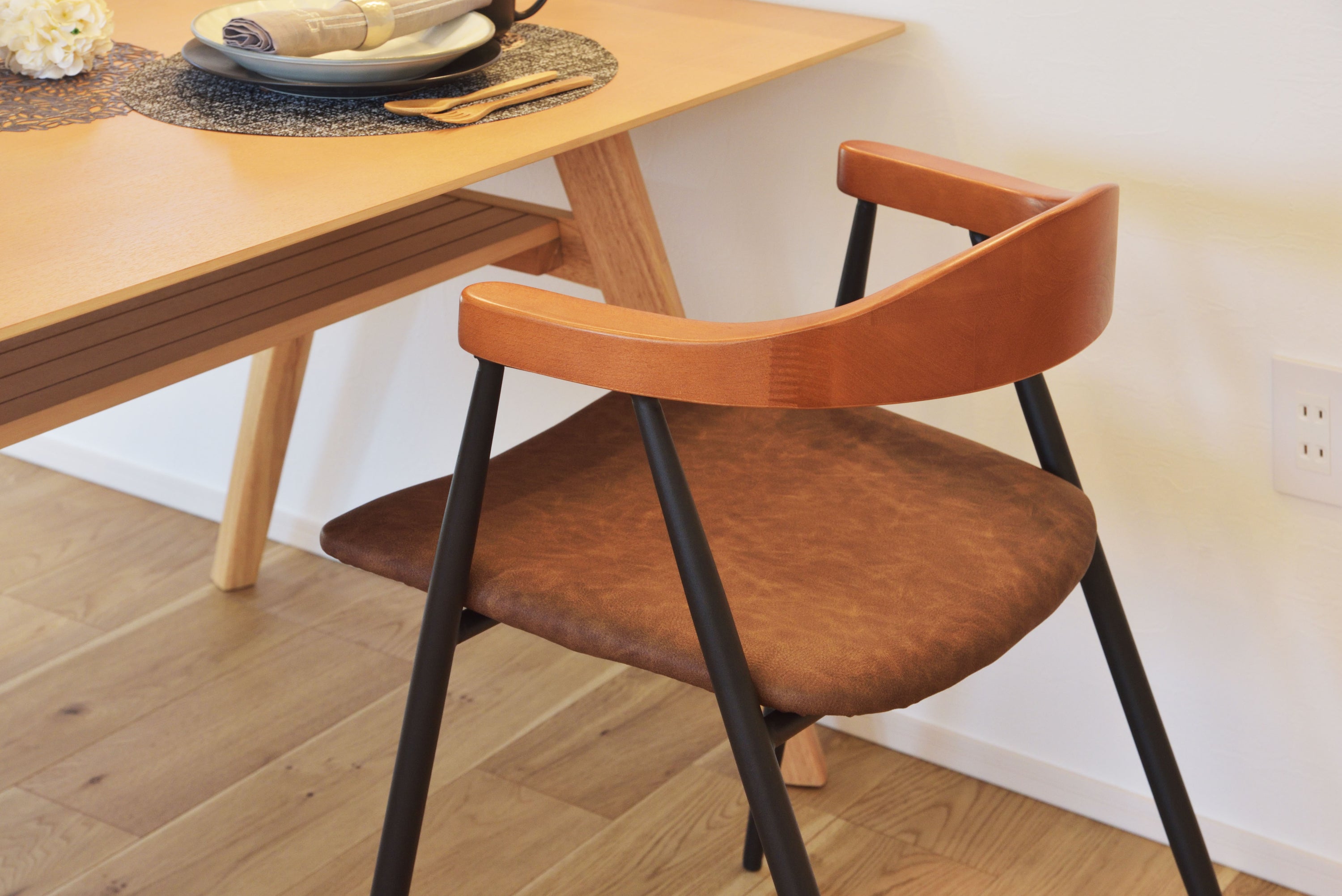 ROOMESSENCEのアームチェアブラウンです。長時間でも快適な座り心地を備え、ダイニングやワークスペースに活躍します。ブランドの美意識を感じる佇まいで、日常づかいから来客時まで幅広く対応。品番:TEC-63。暮らしに上質なアクセントを添える一品です。