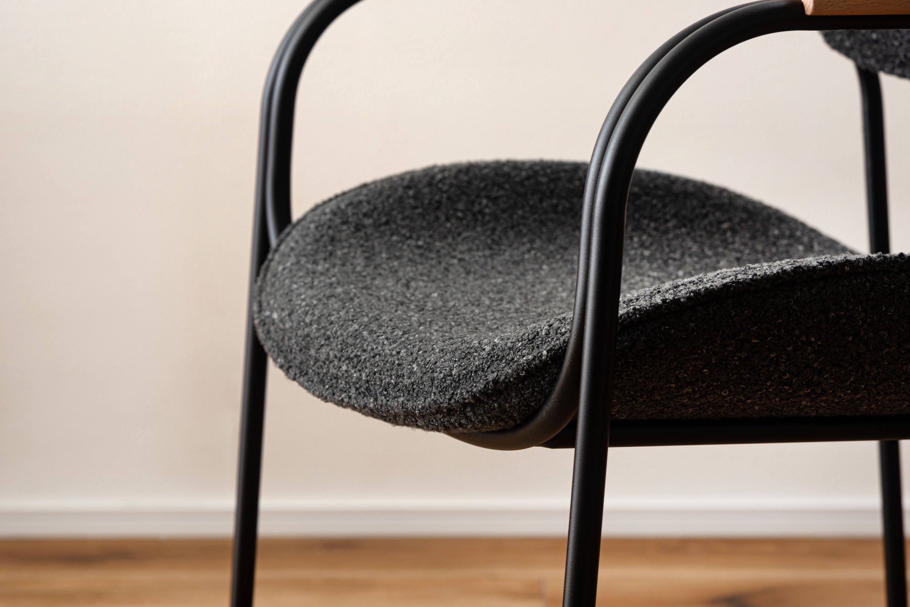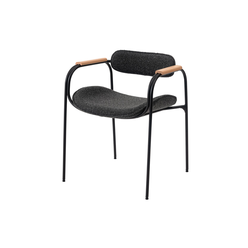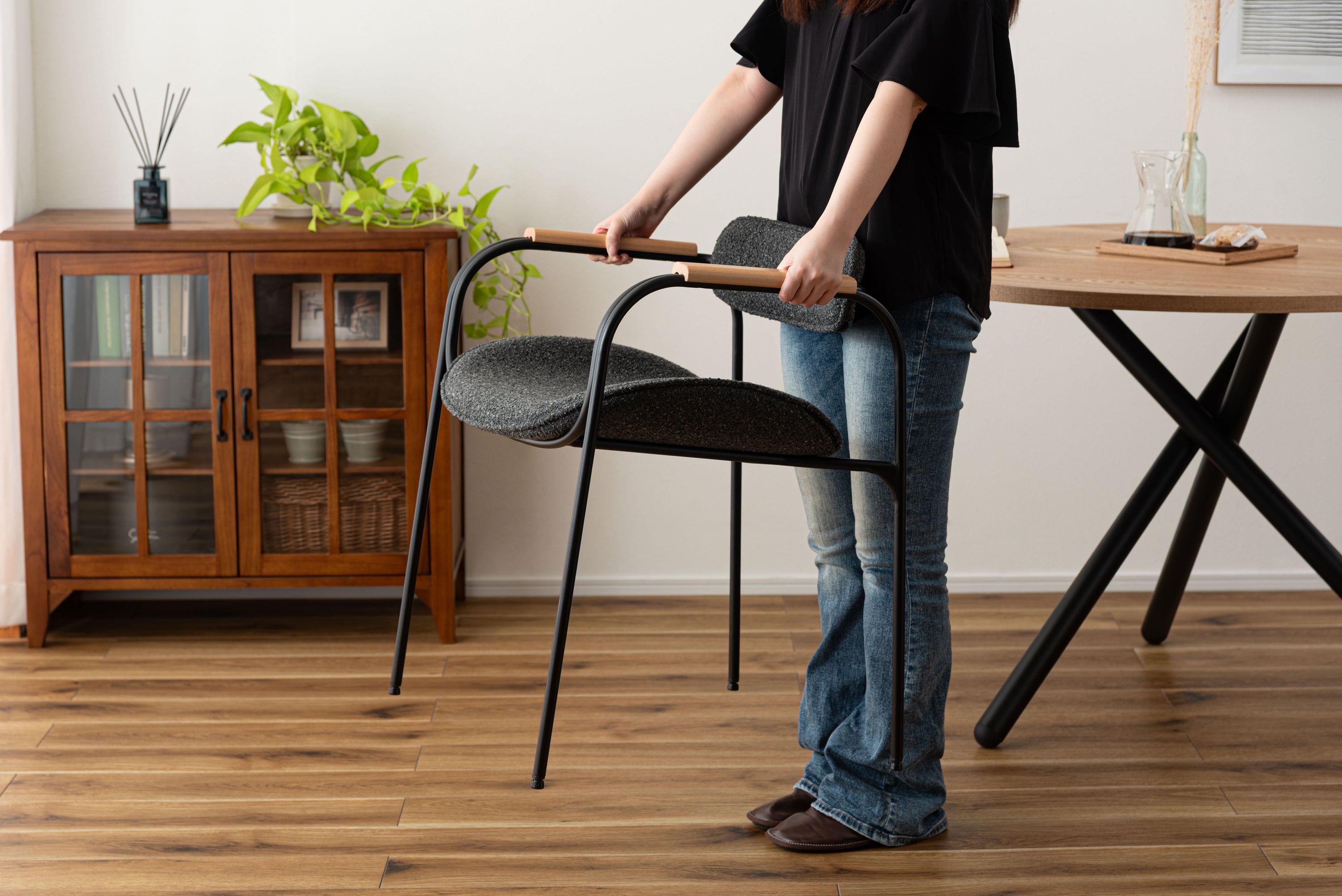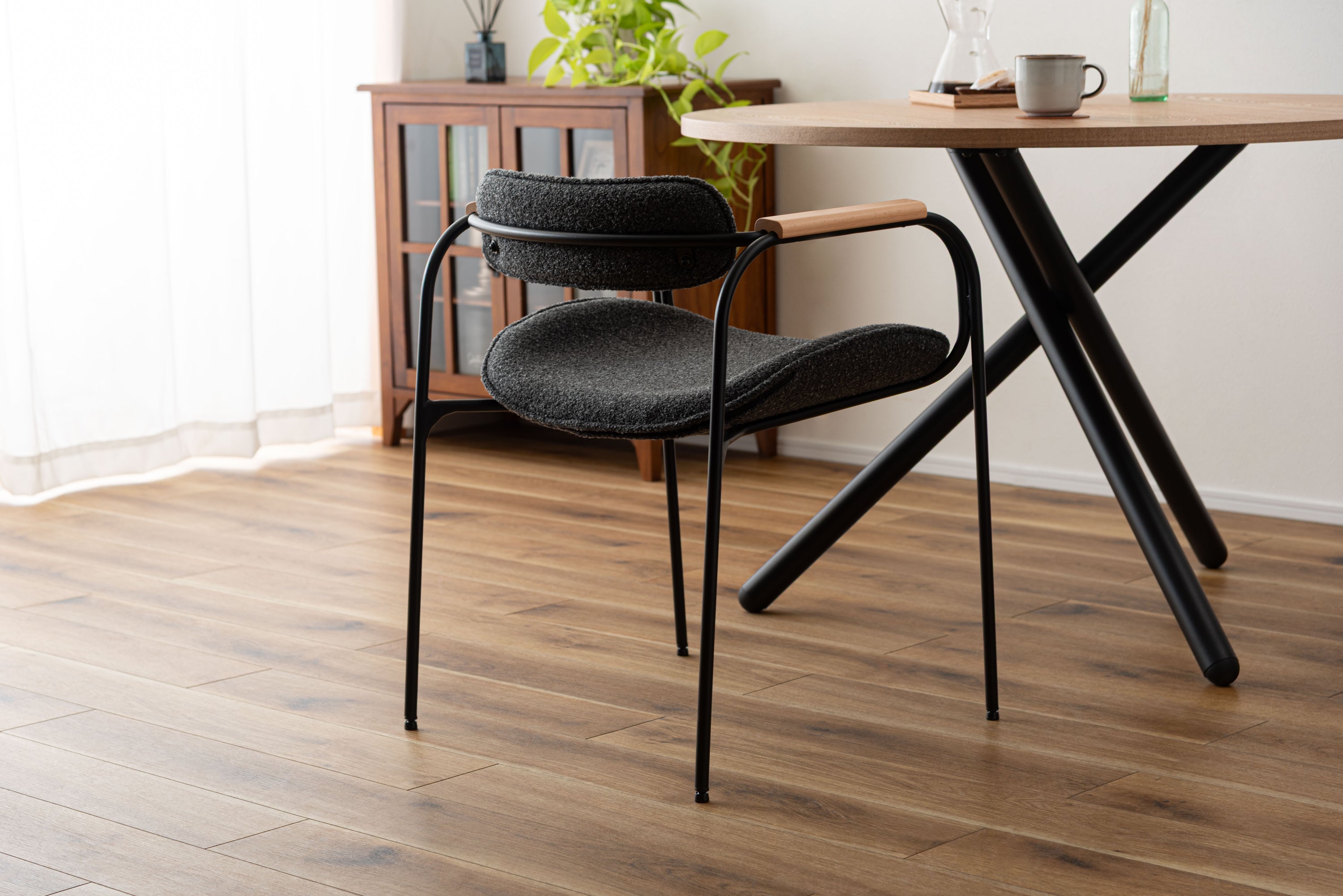 空間のアクセントになる洗練されたデザイン。すっきりとしたブラックスチールと、丸みを帯びたフォルムが個性的なアームチェア。緩やかに湾曲した座面が身体にフィットし、自然な姿勢をサポートしてくれます。表情豊かで落ち着いた色味のファブリックが、上質な印象を演出します。様々なインテリアとなじみながら、程よい存在感を放ちます。天然木を使用したアーム。身体にフィットする湾曲した座面。表情のあるファブリックを使用。首振り仕様