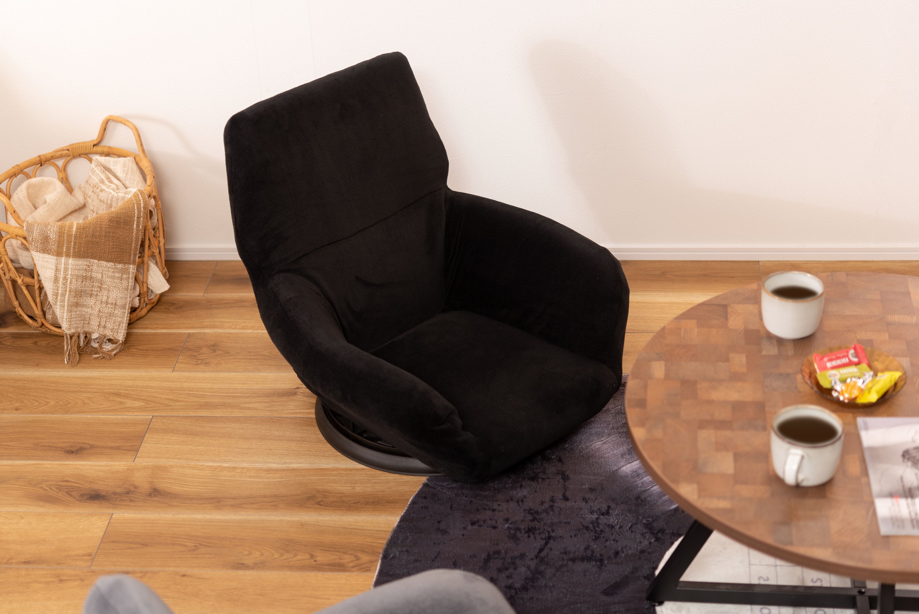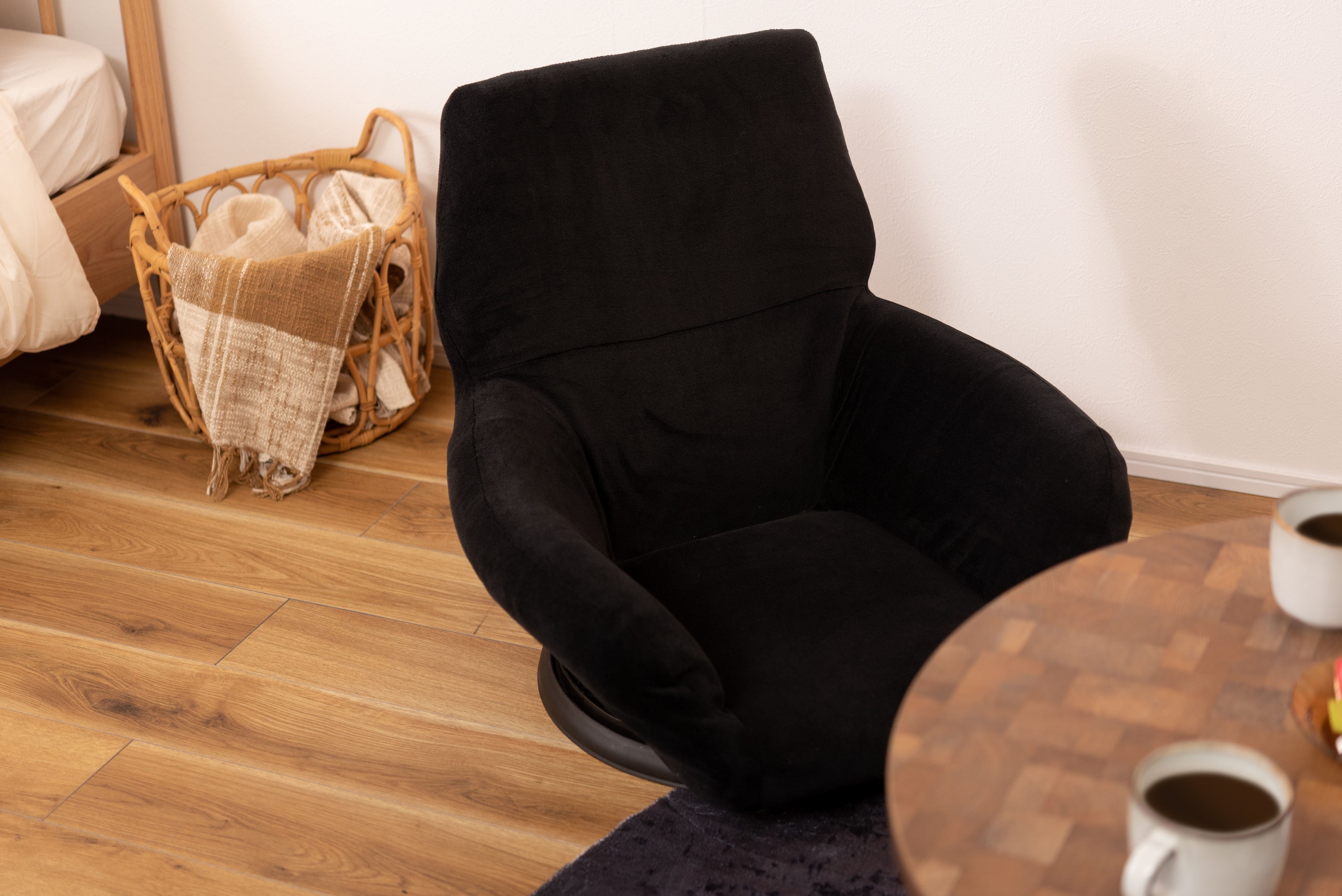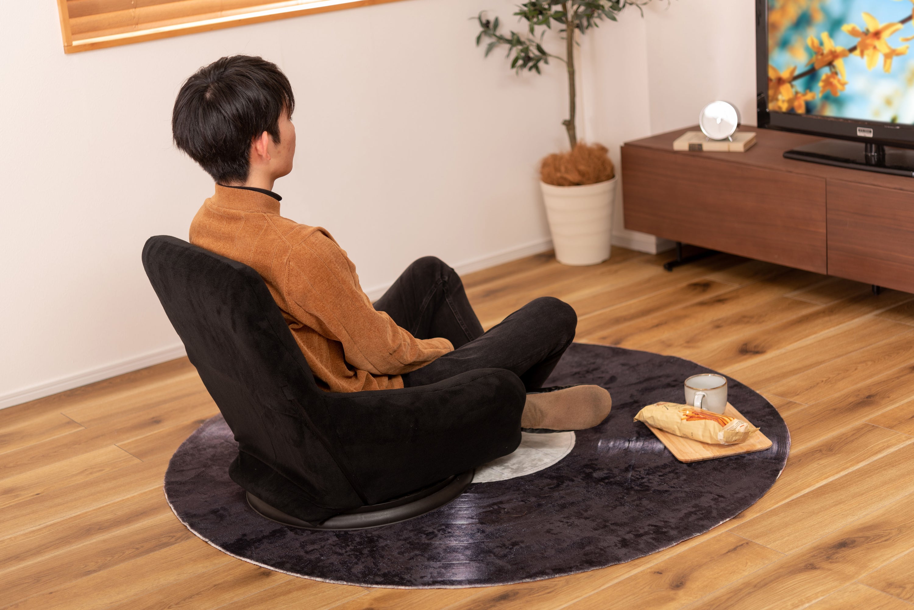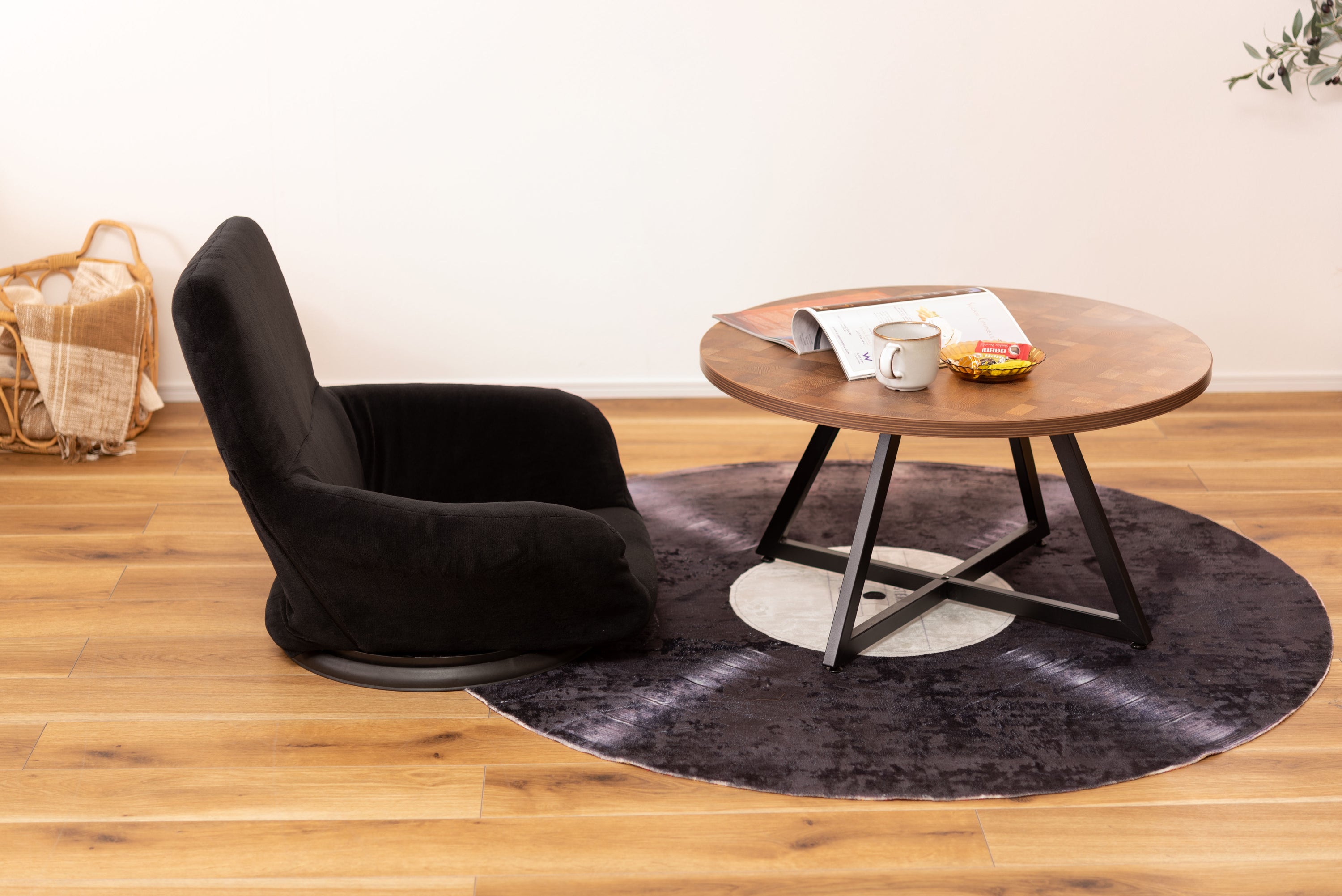 360度回転するので座ったまま向きを変えられ、狭いスペースでも動きやすさをサポートするフロアチェアです。柔らかい触感の生地が体を優しく包み込んでくれます。バケットタイプで包み込まれるような座り心地を体感でき、長時間座っても疲れにくい設計になっています。肘掛けが付いているので立ち座りがしやすく、安定感のある座り心地を実感できます。