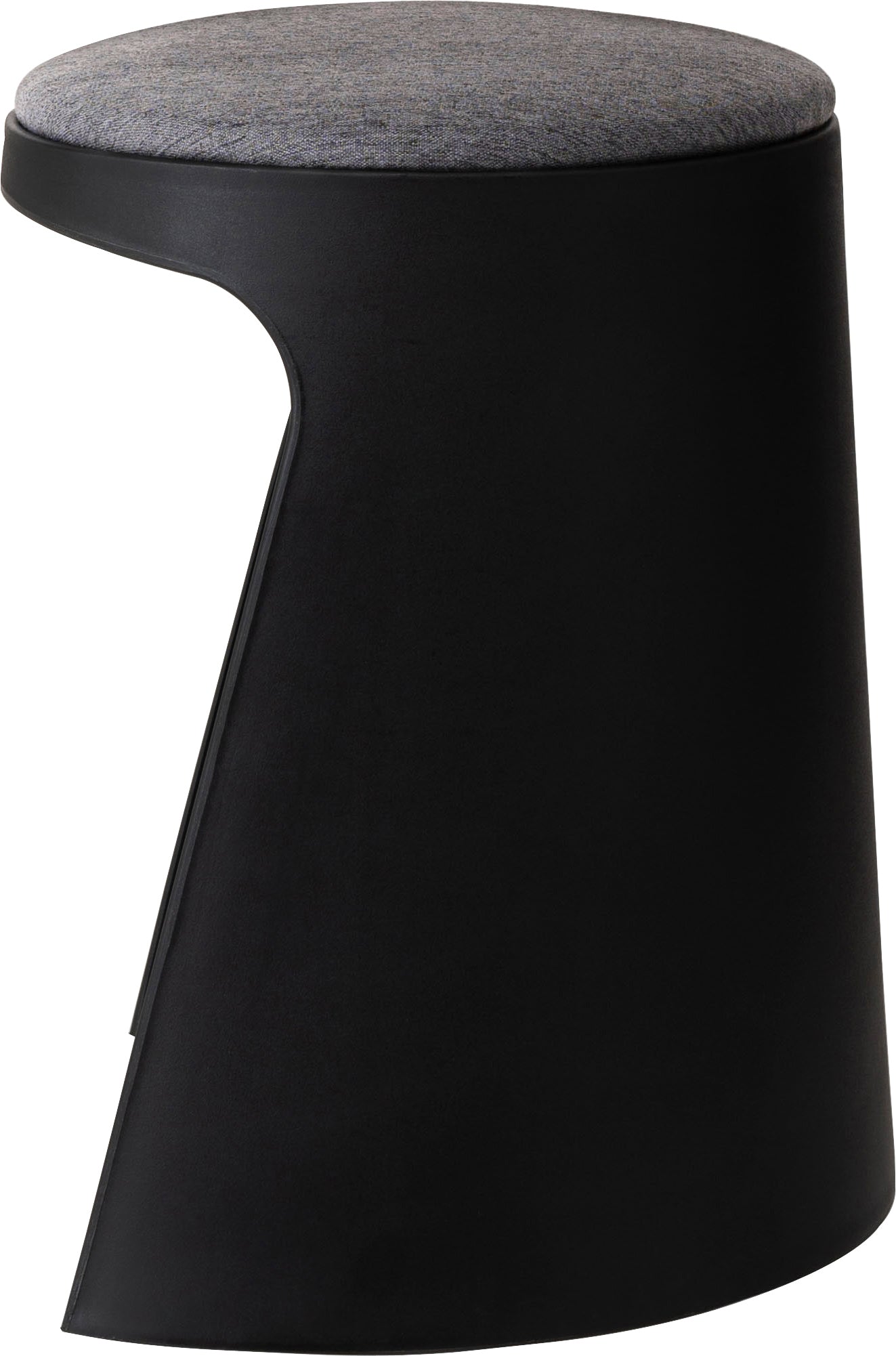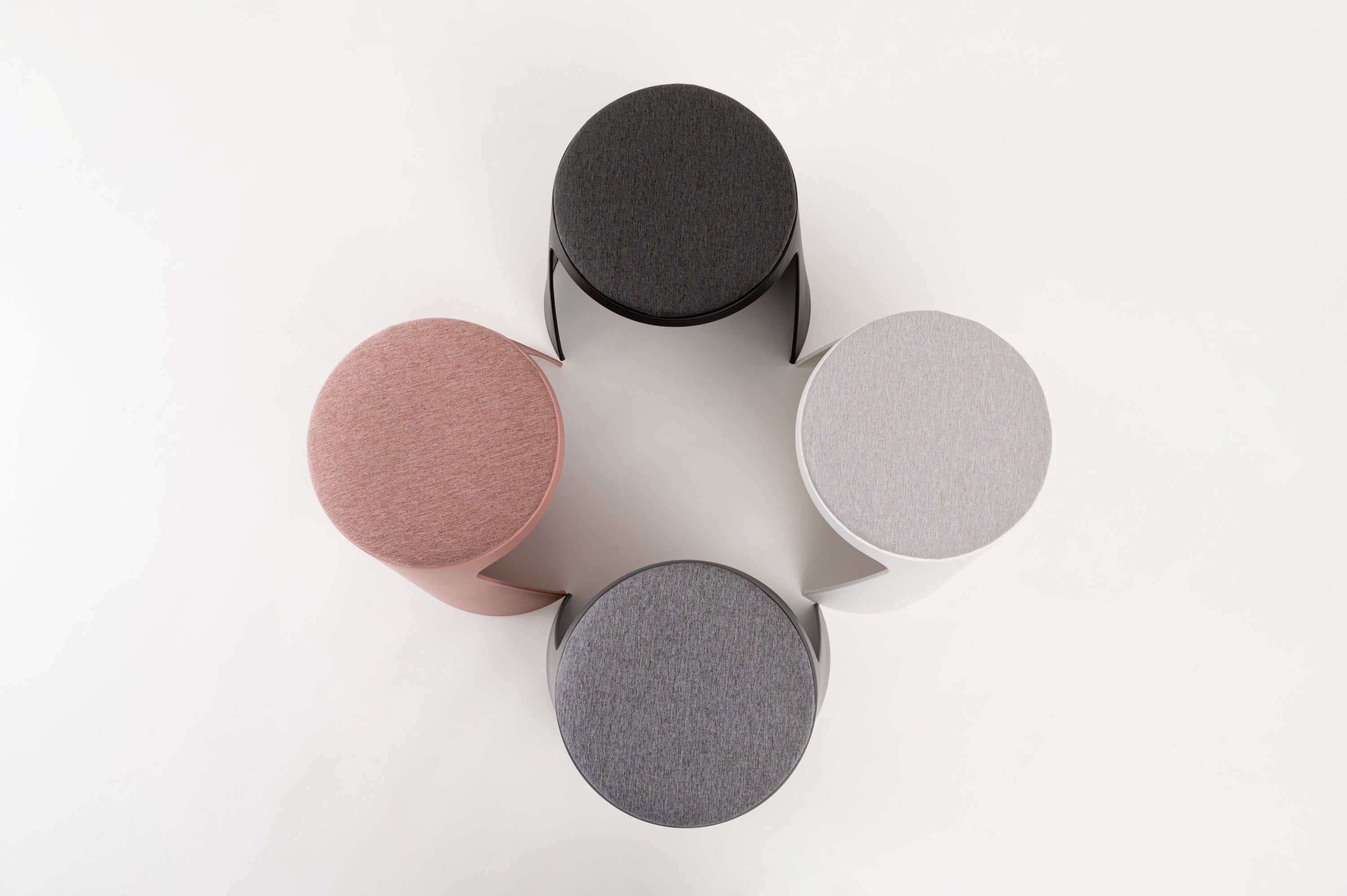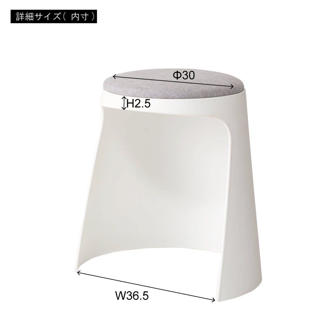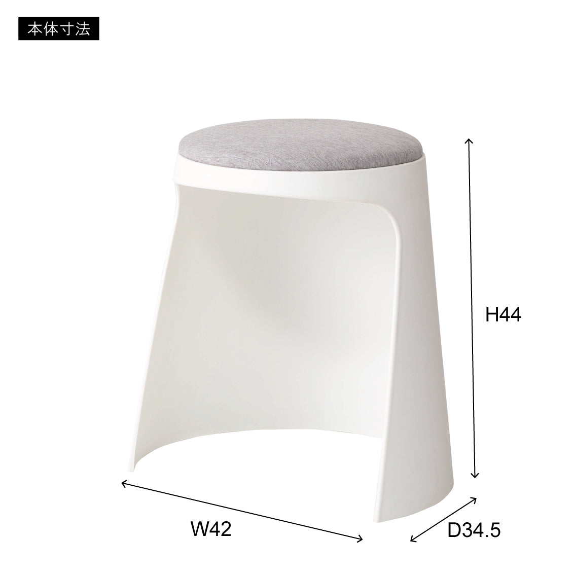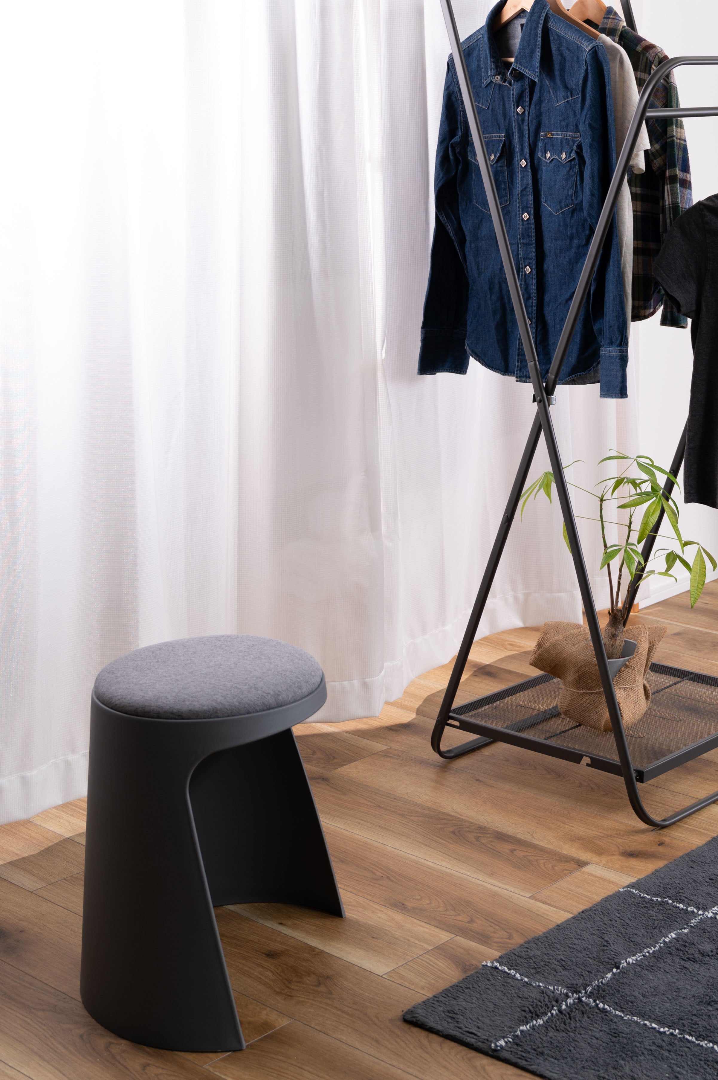 デザイン性と機能性、両方叶えるスタッキングスツール「カヌレ」 座面下に大きく空いた空間は、個性的なフォルムのデザイン性を高めるだけでなく、足を入れられる事で座りやすくなる機能性も兼ね備えています。 座面にはファブリックを使用し、その座りやすさをより追求しました。