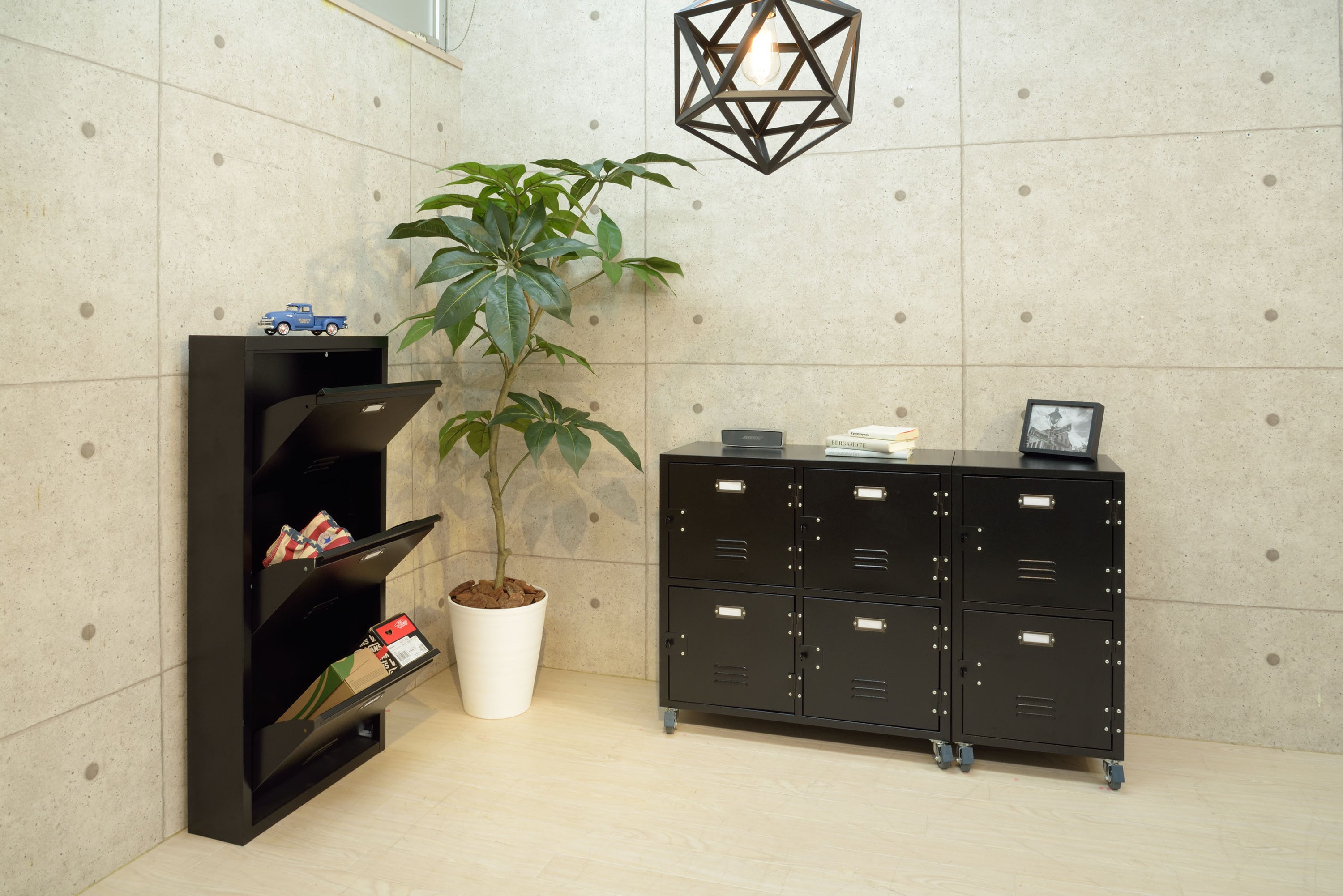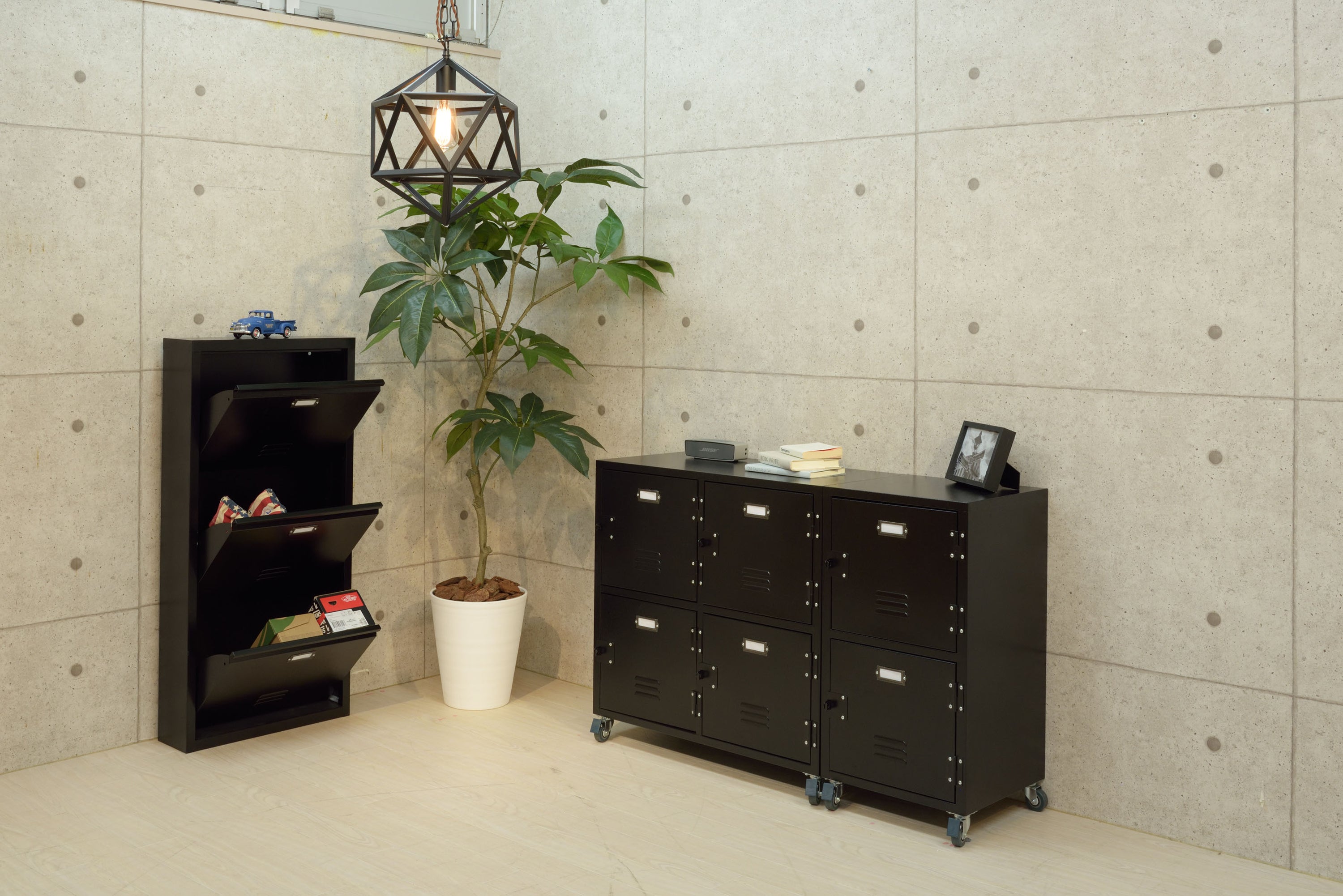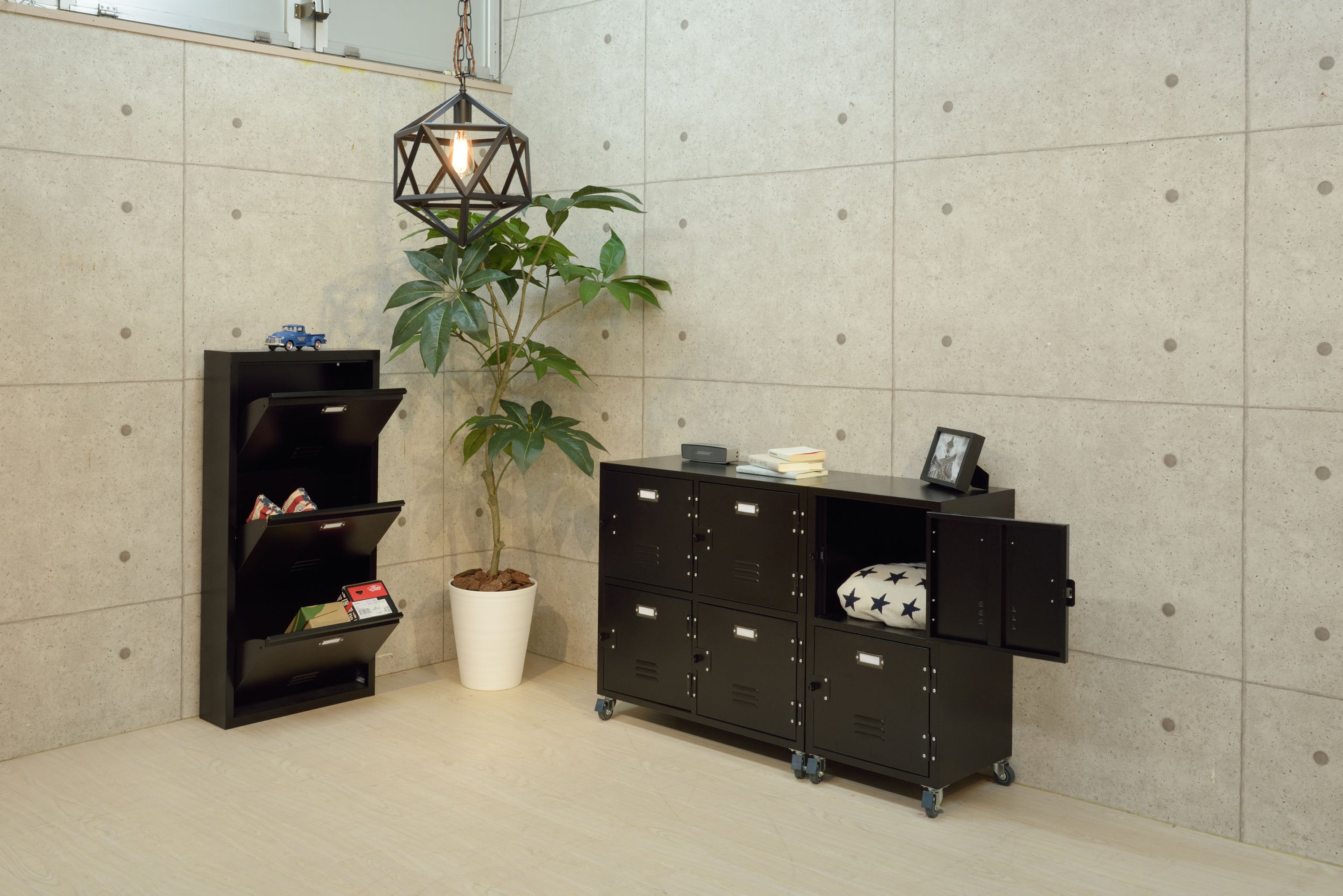 ロッカーをイメージしたラルドシリーズネームプレートや、ルーバーカットなど細部にまでこだわりました。コンパクトなサイズ感で、手軽にお部屋に取り入れられます。