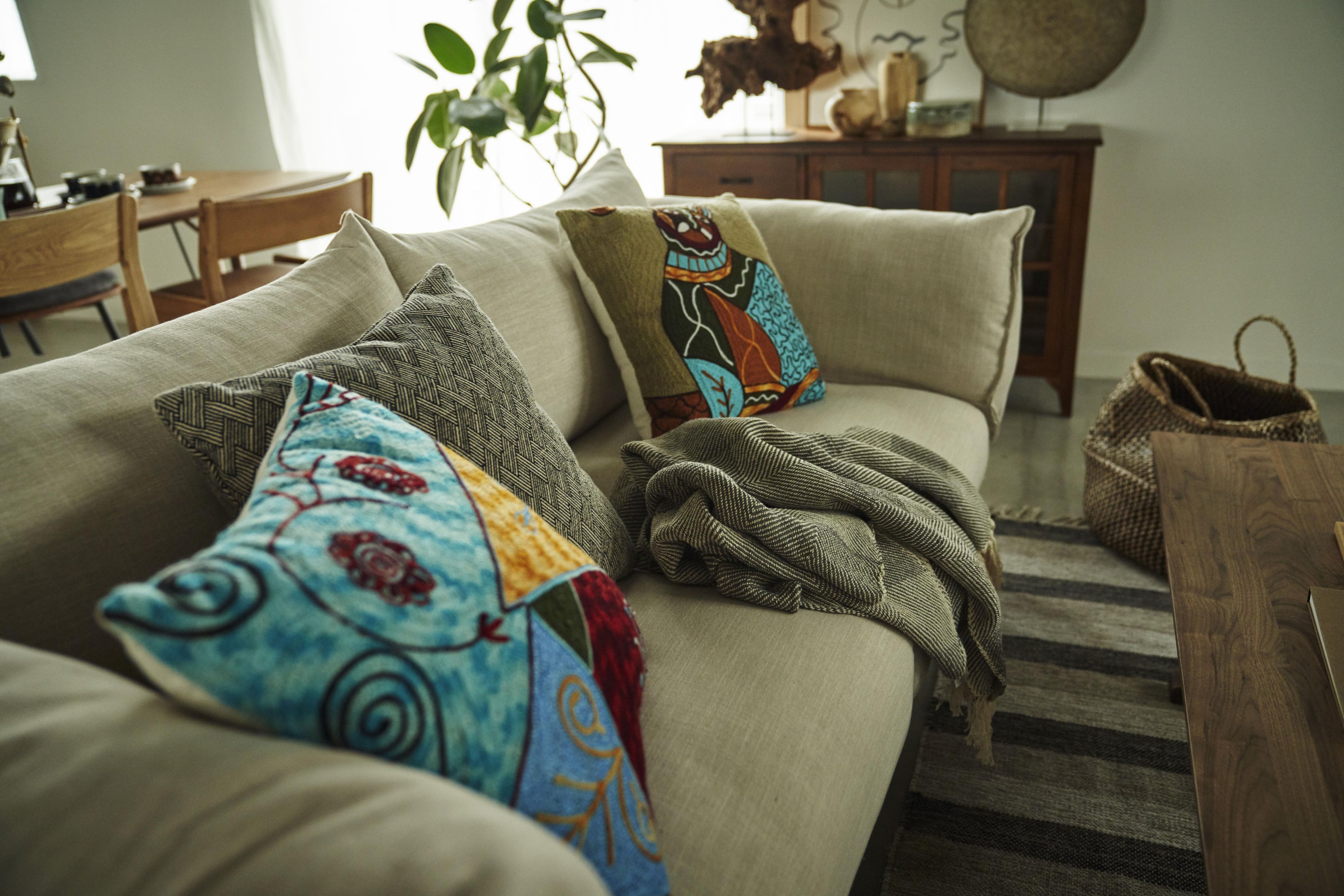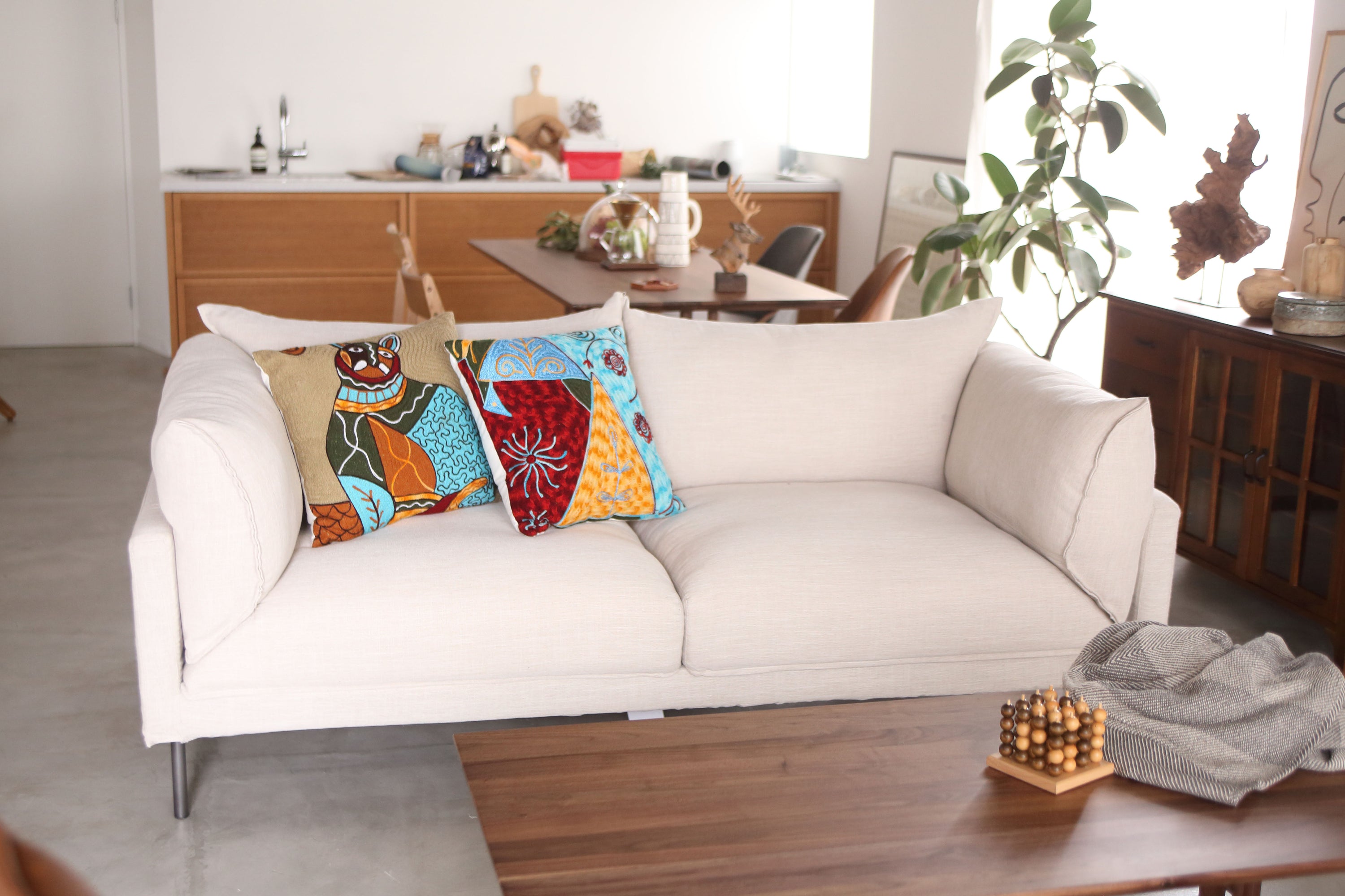 個性的なクッションが、お部屋の雰囲気を演出します。
