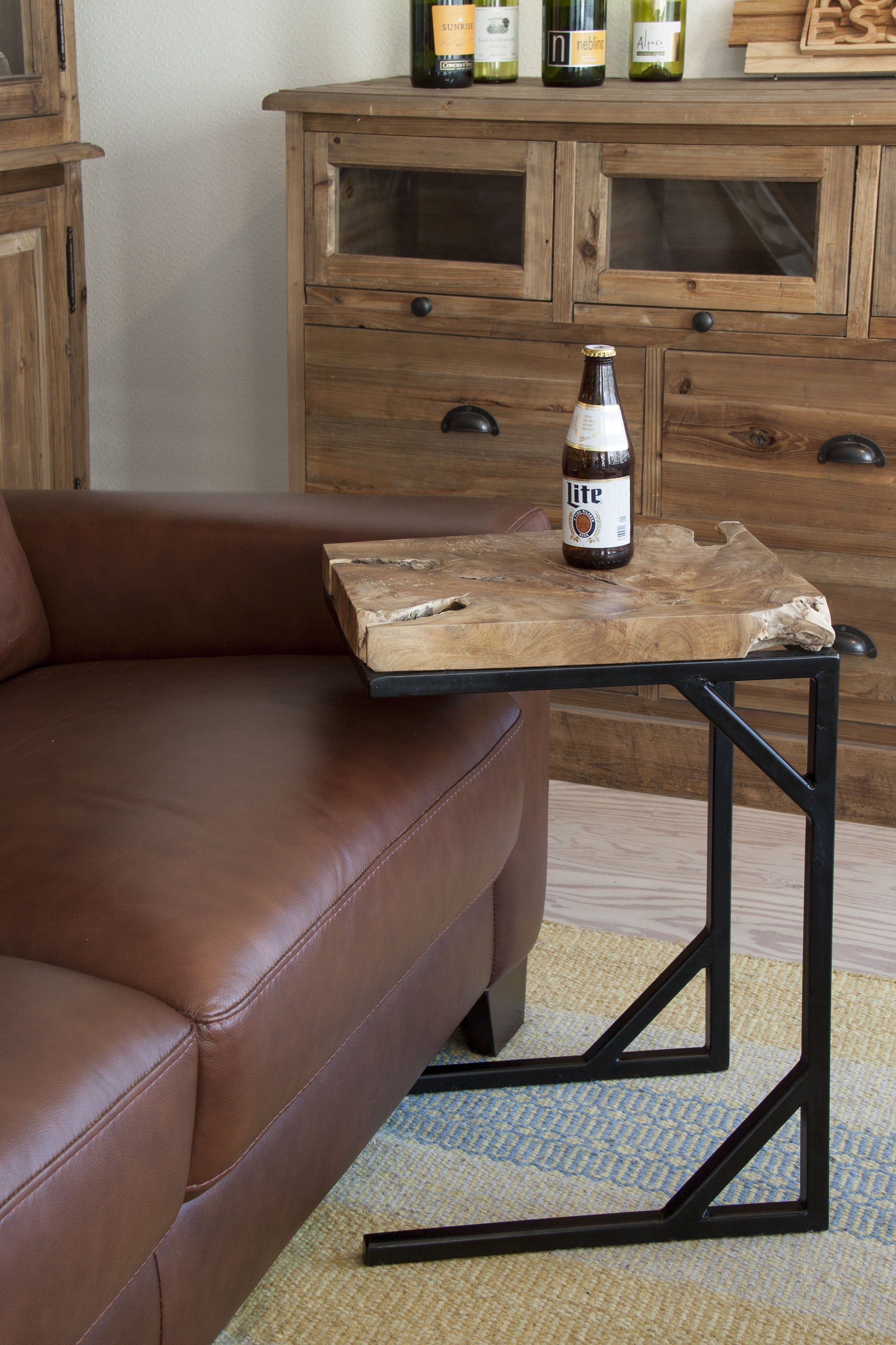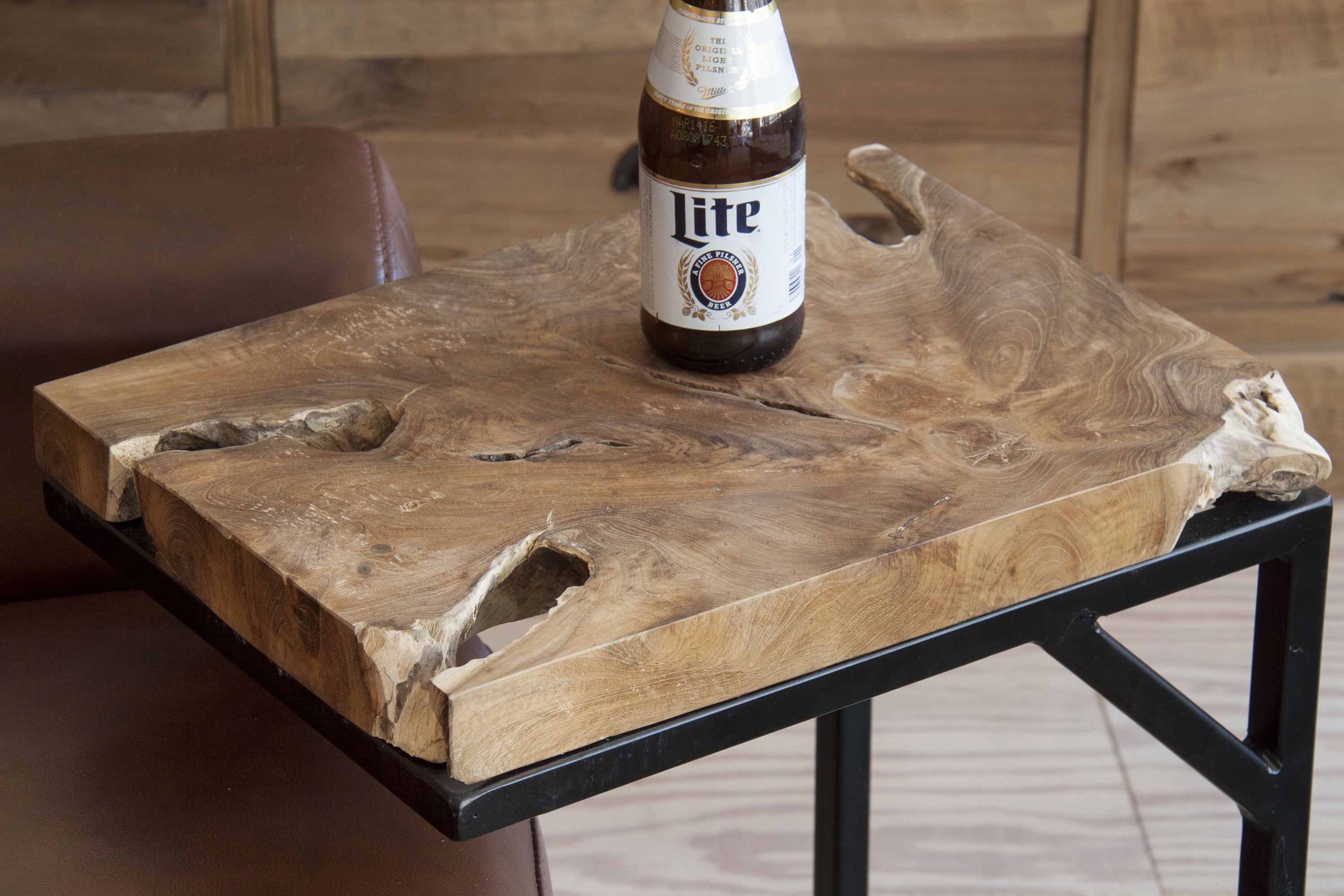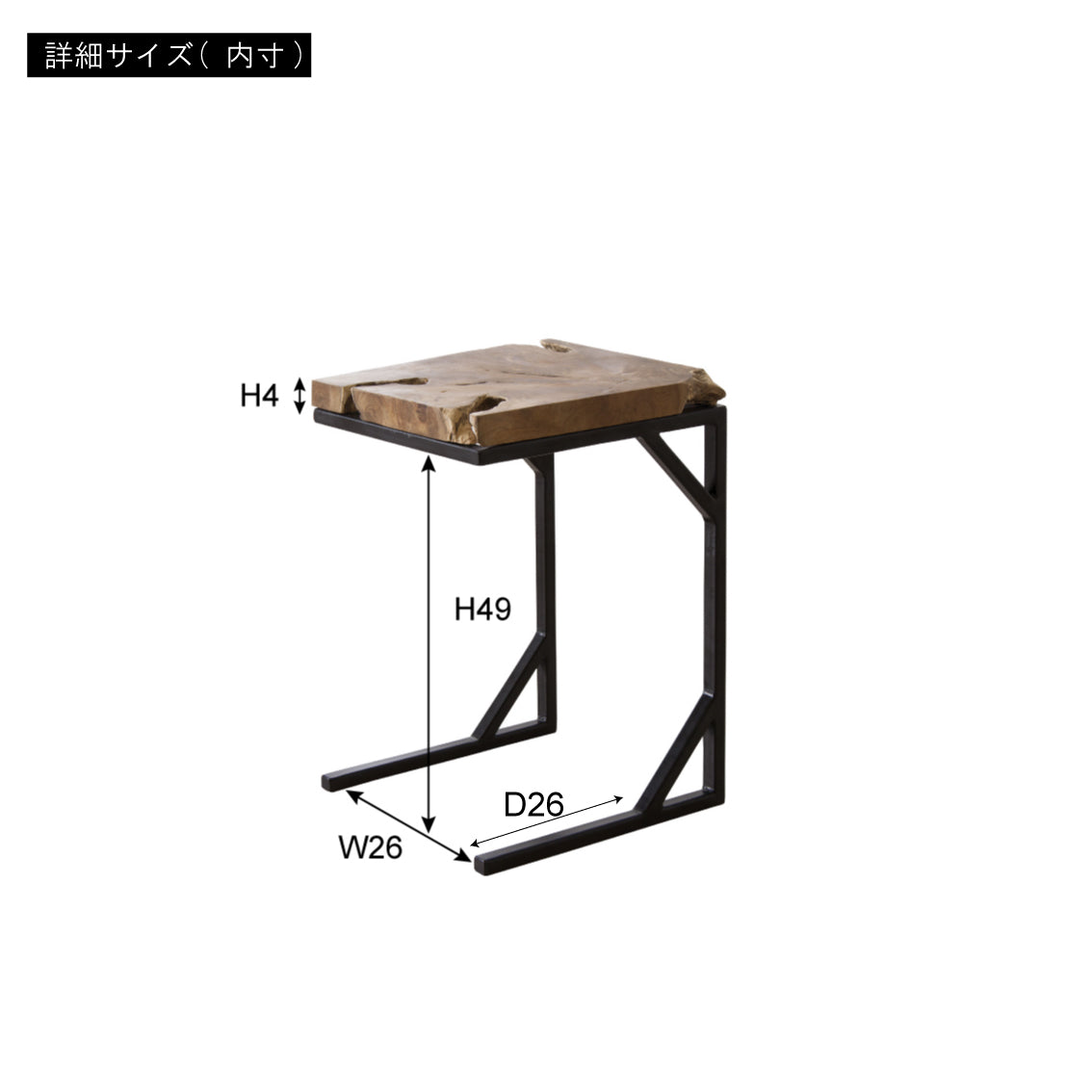 黒いフレームにデザイン性を持たせ、味わい深いチークの無垢材と組み合わせたスツール&サイドテーブル。 チーク材そのものの形や質感を最大限に活かし、ひとつとして同じものがない特別感が魅力です。