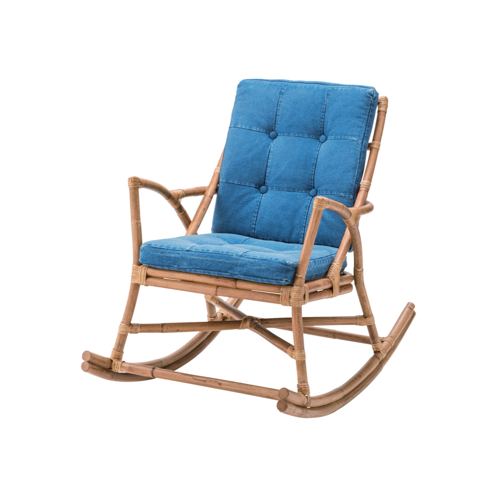 ROOMESSENCEのロッキングチェアインディゴです。長時間でも快適な座り心地を備え、ダイニングやワークスペースに活躍します。ブランドの美意識を感じる佇まいで、日常づかいから来客時まで幅広く対応。品番:TTF-906。暮らしに上質なアクセントを添える一品です。