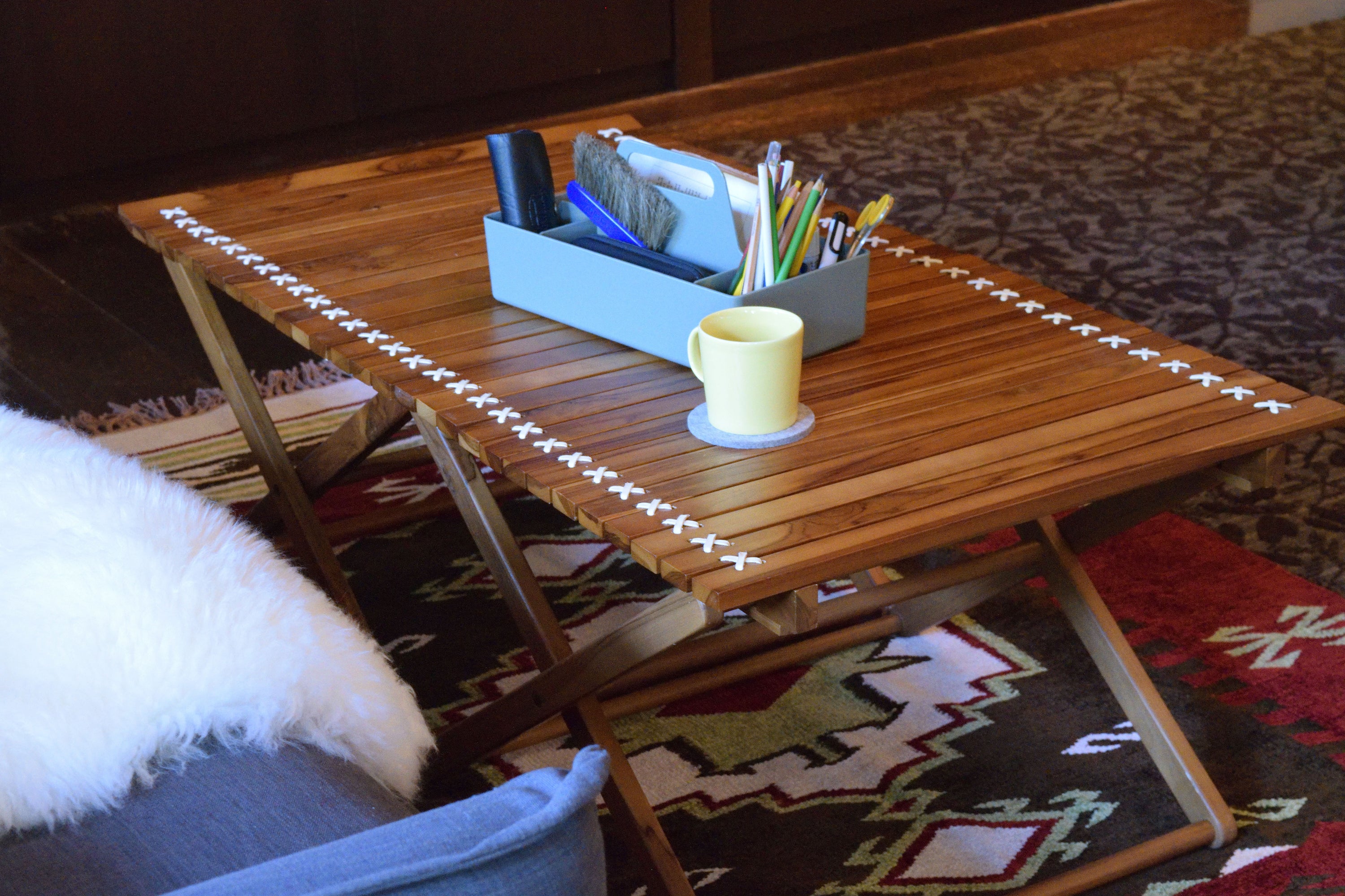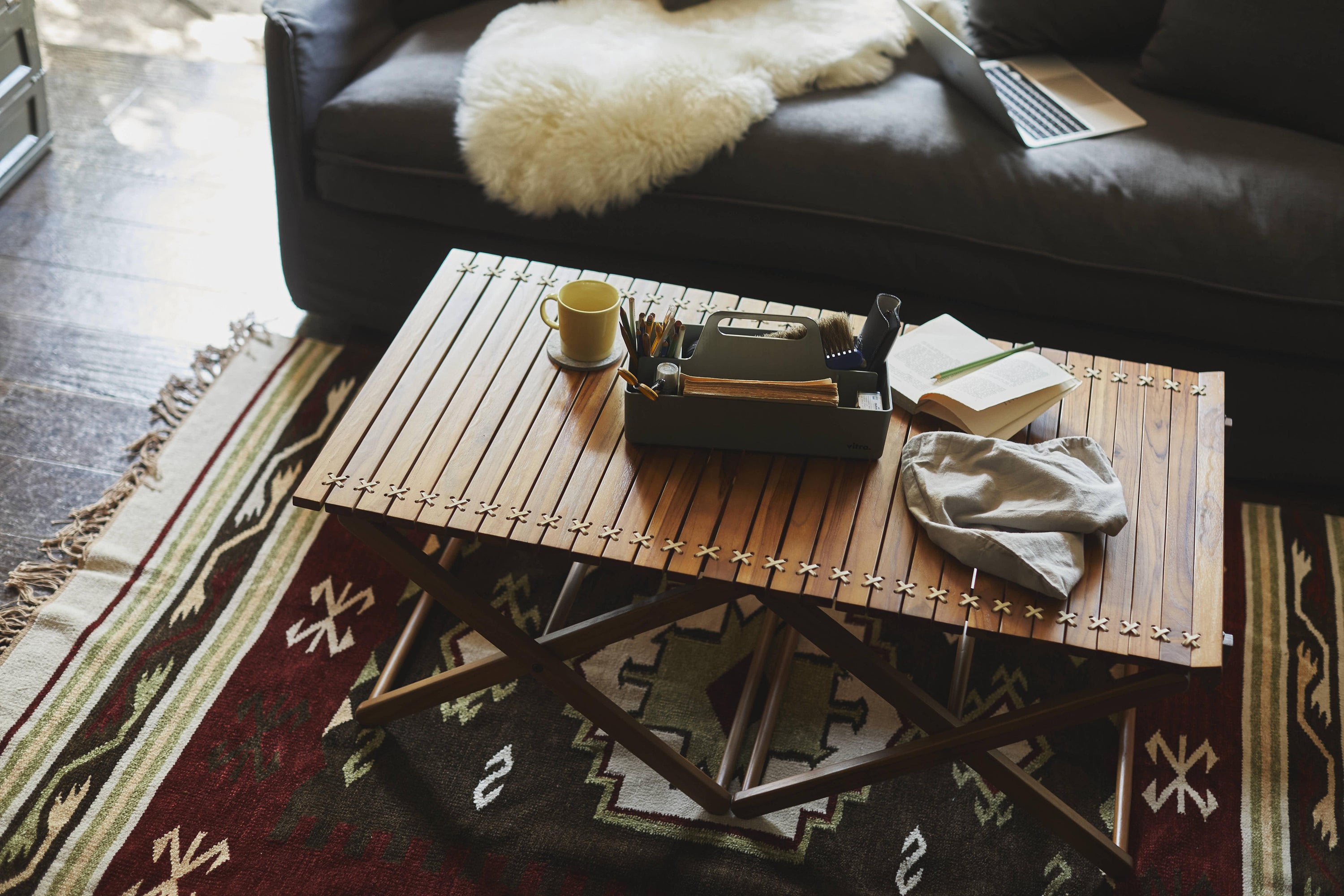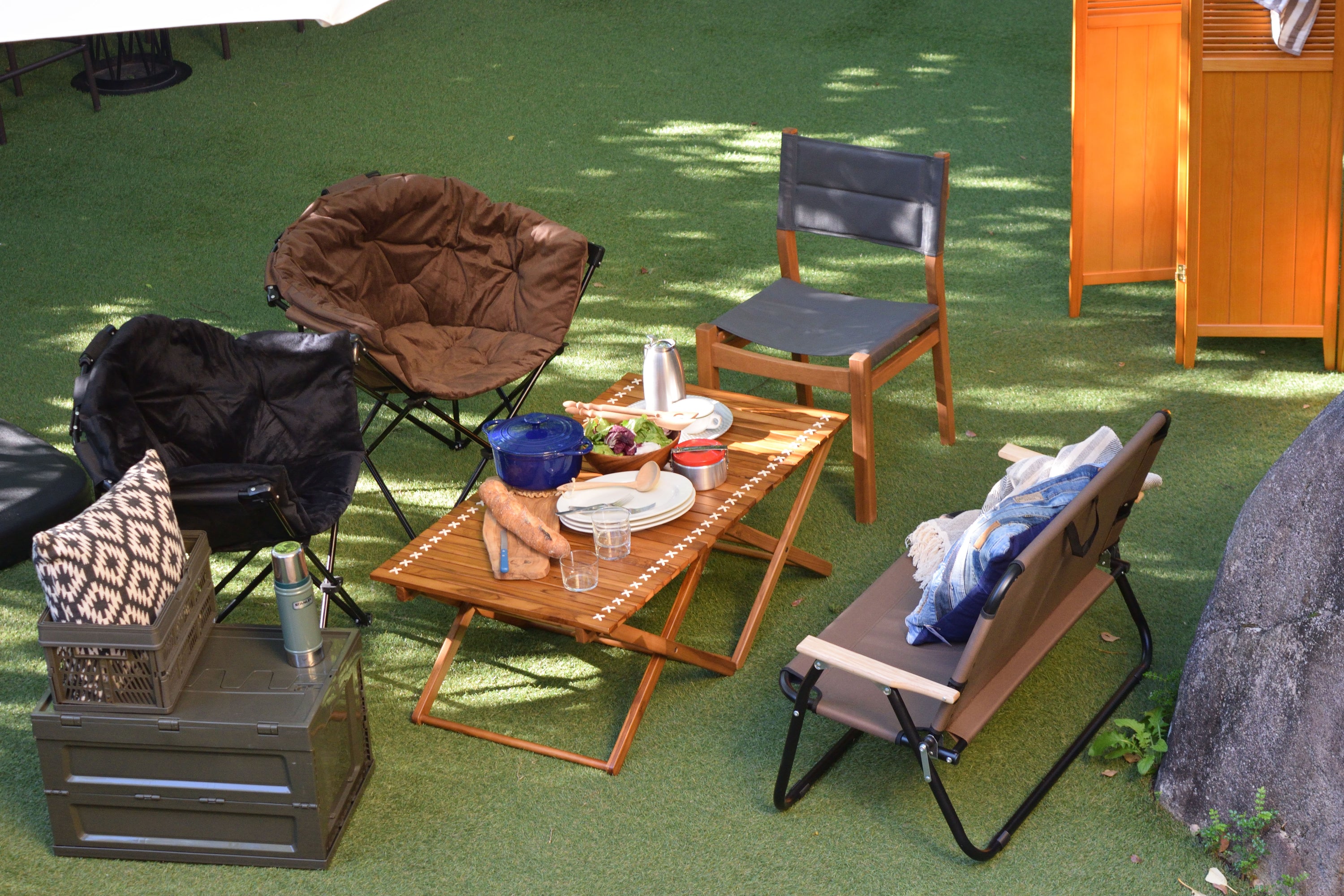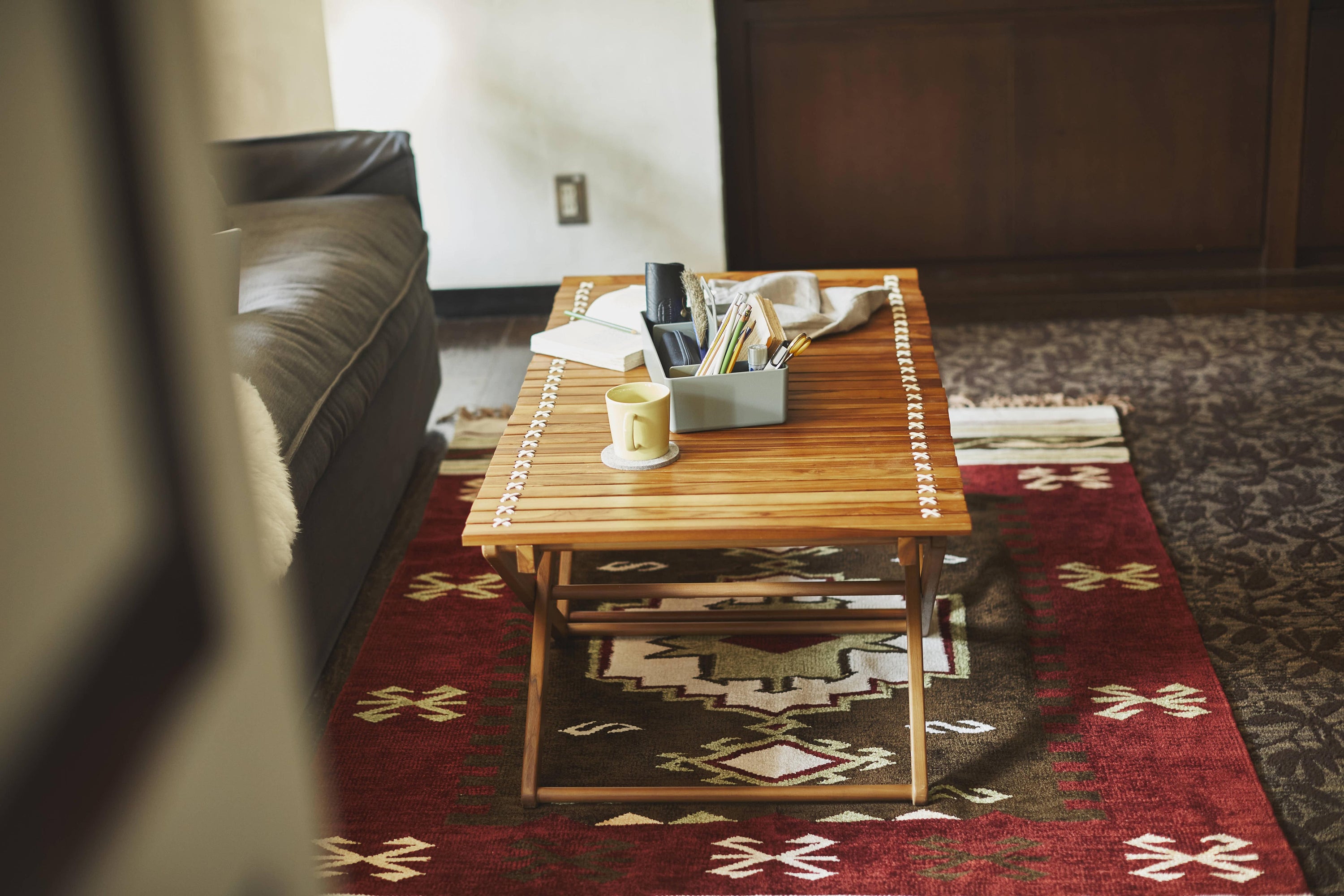 小さく収納・持ち運びが簡単なロールトップテーブル。チーク材と本革の風合いはインテリアとしても最適。 ロール天板のつなぎ目には贅沢に本革を使用。デザインとしてもオシャレなアクセントに。 工具不要でフレームを広げ補強バーを取り付け天板を設置するだけの簡単組立式。 天板をくるくると丸める事ができるロールトップ式なので、折りたたんでコンパクトに収納。 アウトドア・レジャー・キャンプや運動会等のイベント、お庭でのバーベキューなど幅広く活躍。