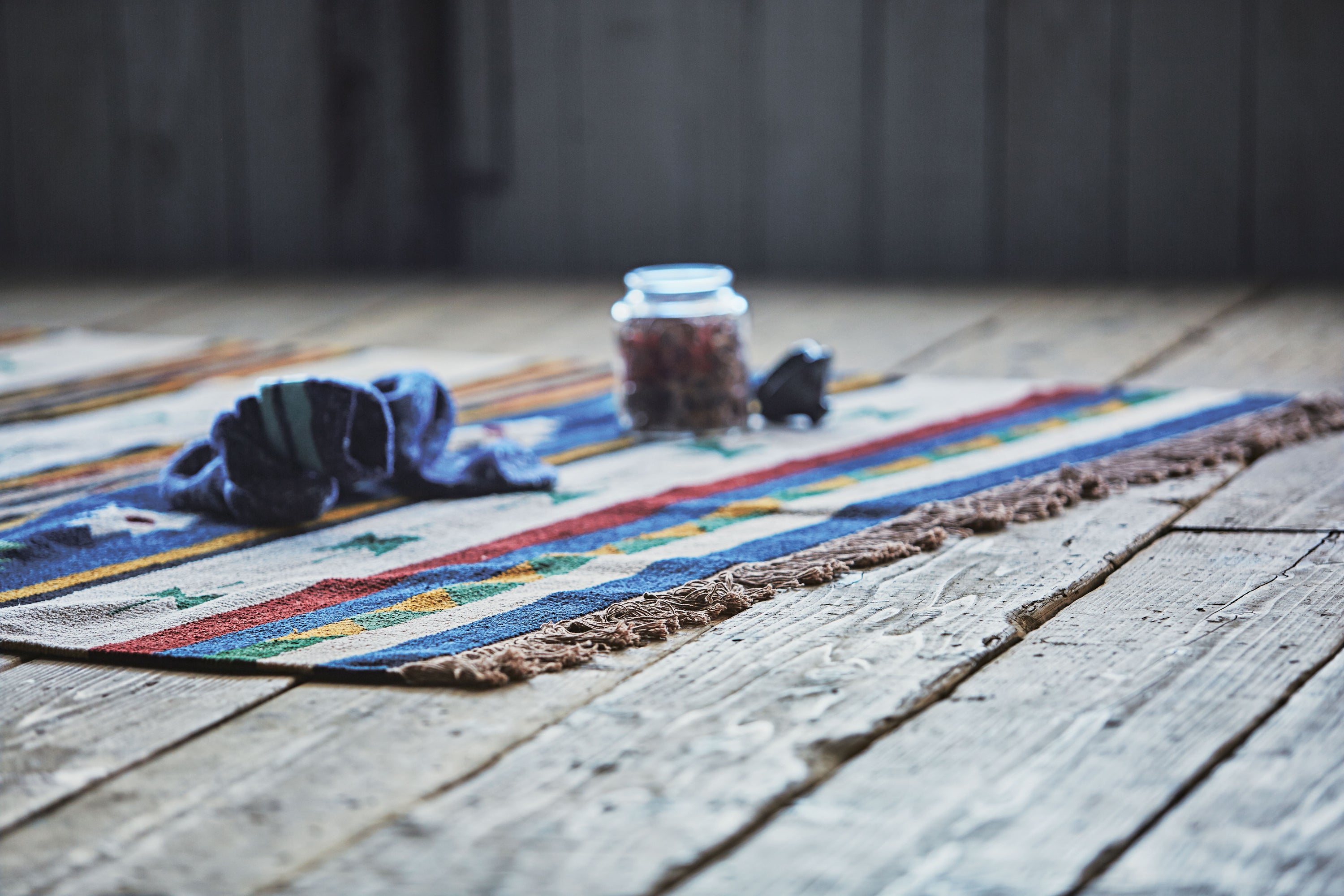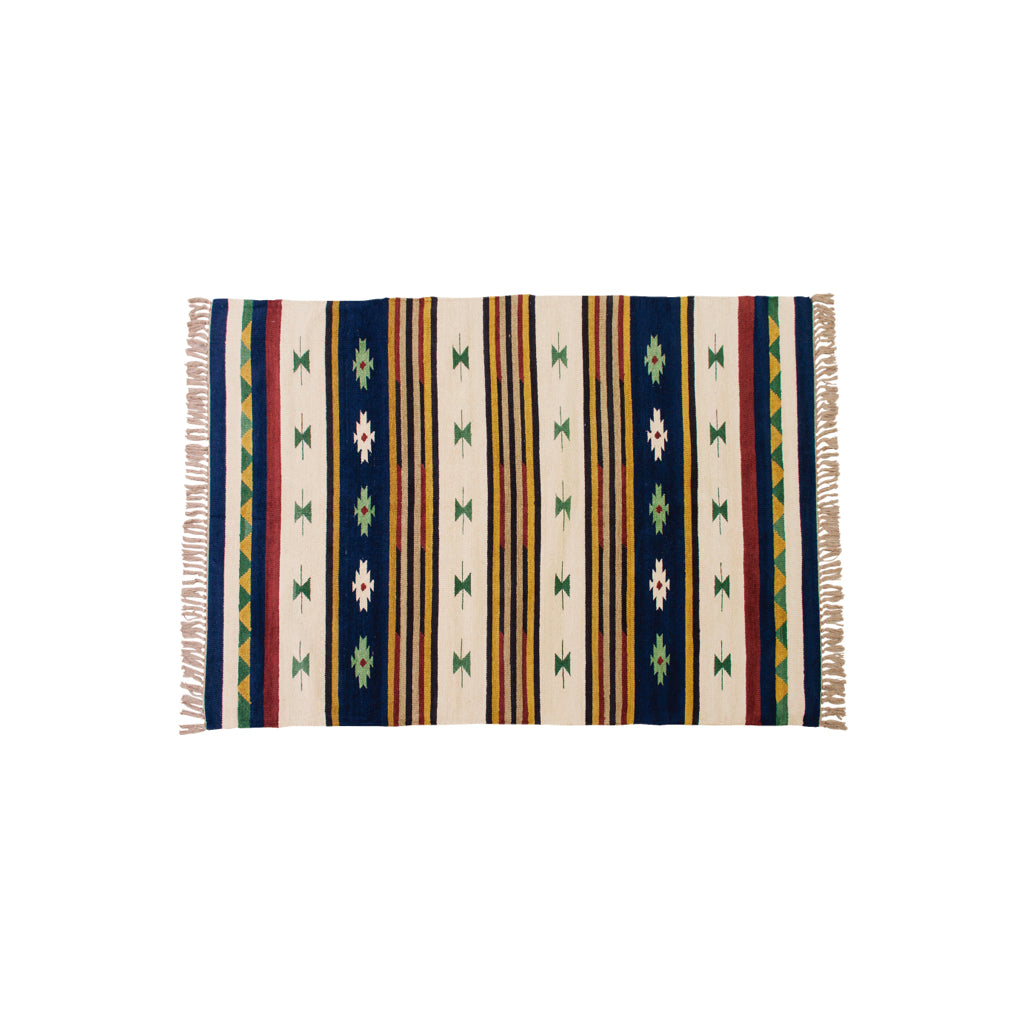ROOMESSENCEのキリムラグです。踏み心地の良い質感を備え、季節の模様替えにも活躍します。ブランドの美意識を感じる佇まいで、日常づかいから来客時まで幅広く対応。品番:TTR-106B。暮らしに上質なアクセントを添える一品です。