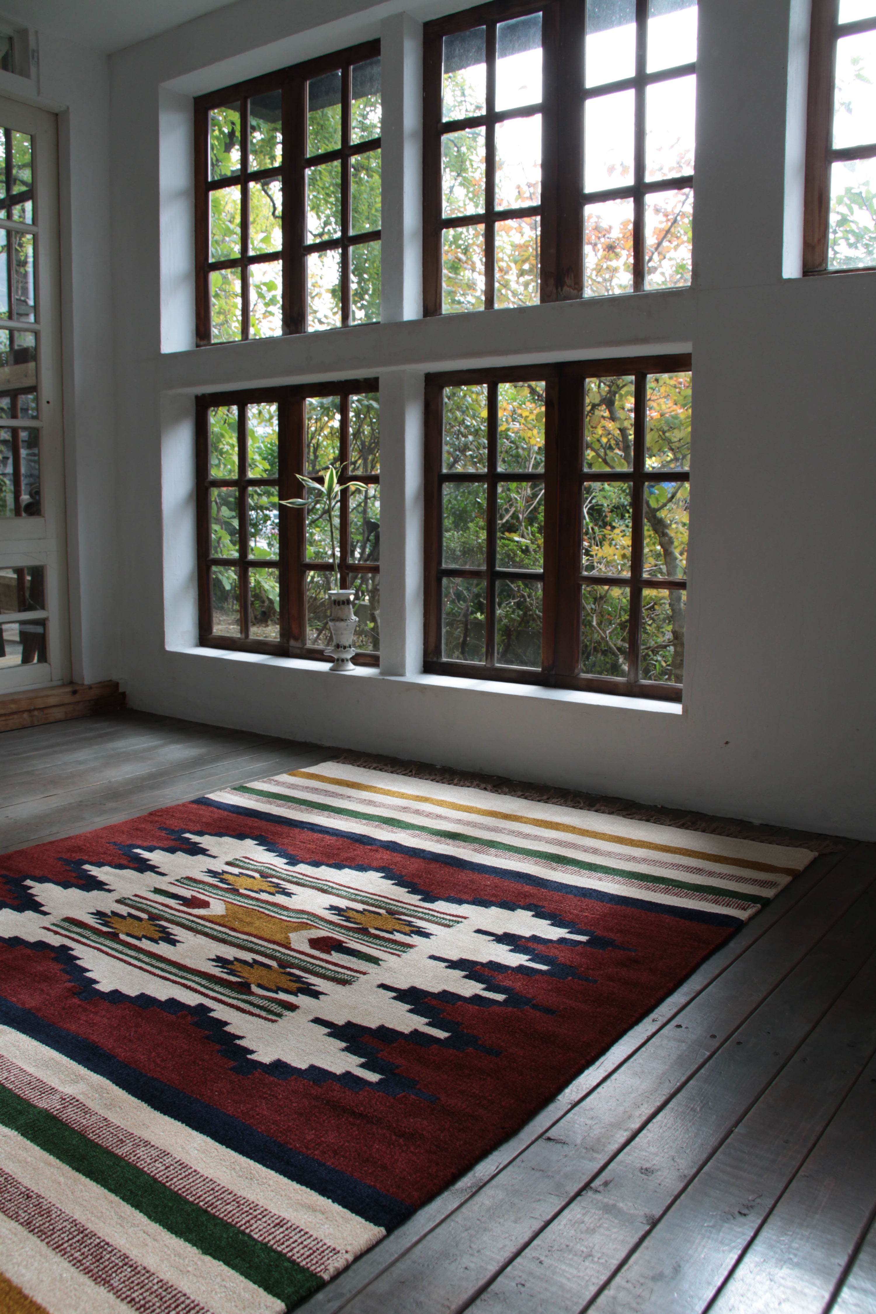 ROOMESSENCEのキリムラグです。踏み心地の良い質感を備え、季節の模様替えにも活躍します。ブランドの美意識を感じる佇まいで、日常づかいから来客時まで幅広く対応。品番:TTR-107C。暮らしに上質なアクセントを添える一品です。